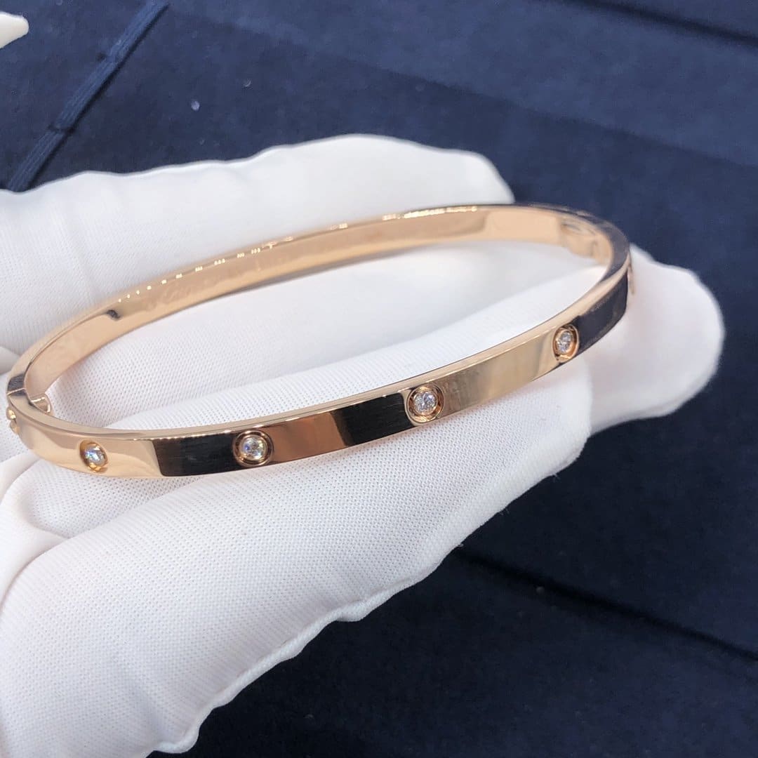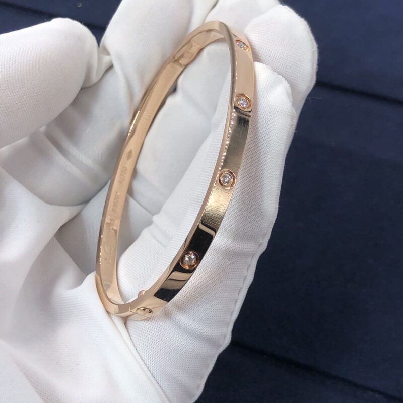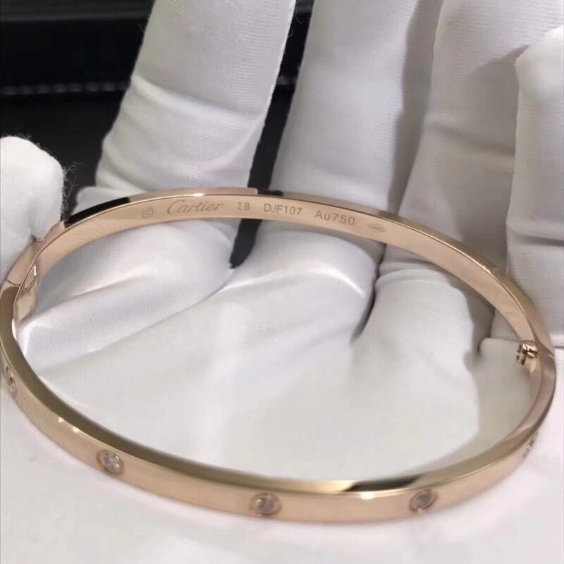 Details of the Custom Made Cartier Love Bracelet 18K Rose Gold 10 Diamonds Small Model: