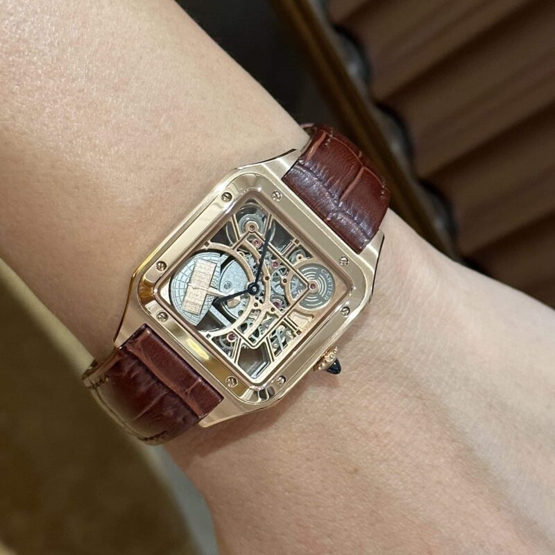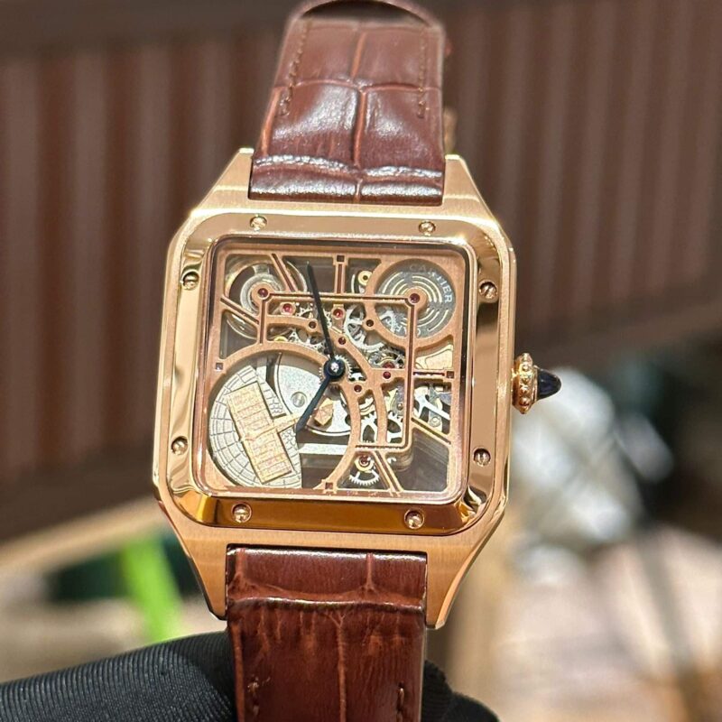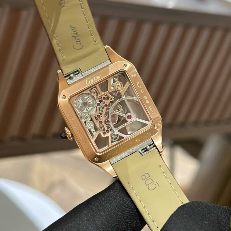 ĐỒNG HỒ CARTIER SANTOS-DUMONT SKELETON VÀNG HỒNG REPLICA 38MM