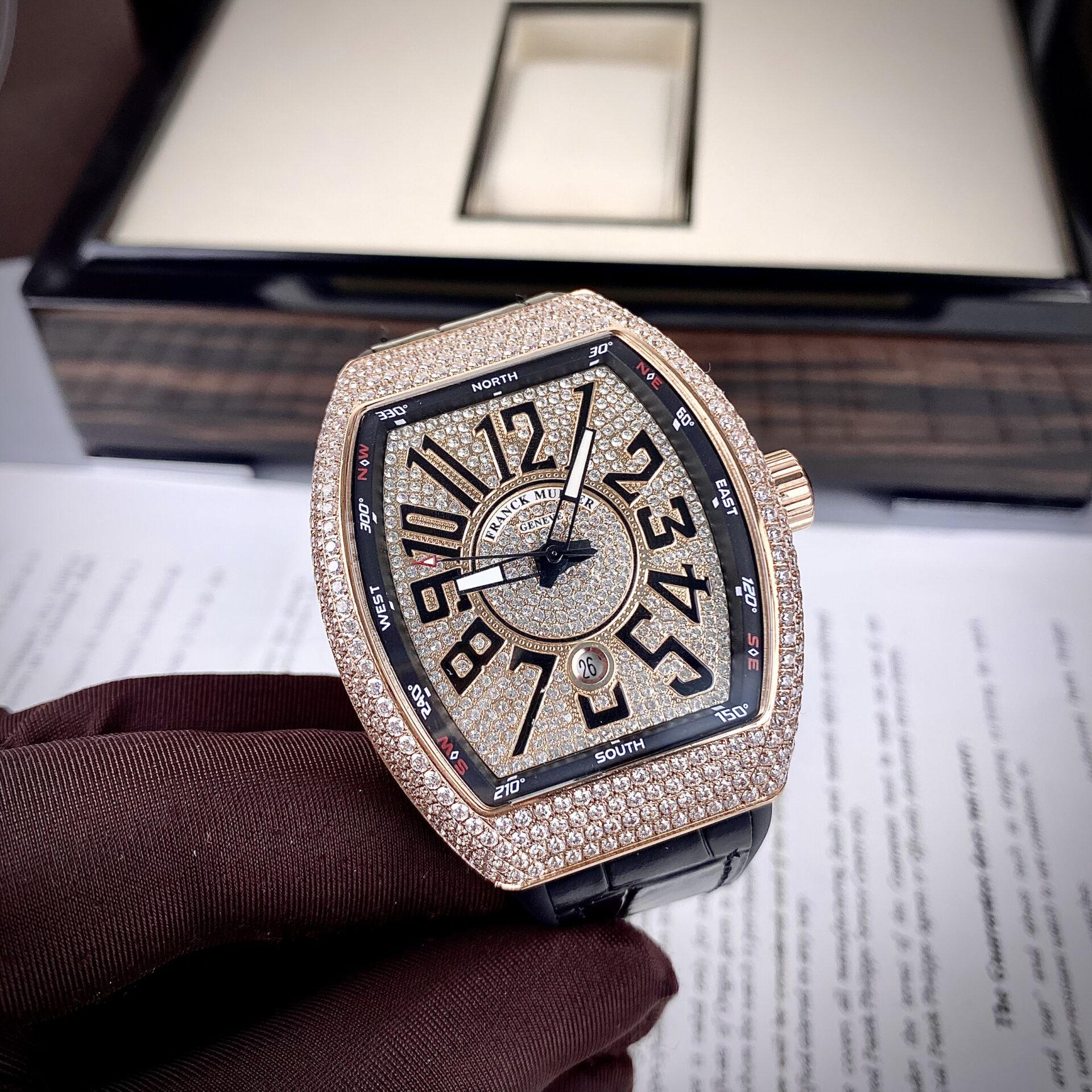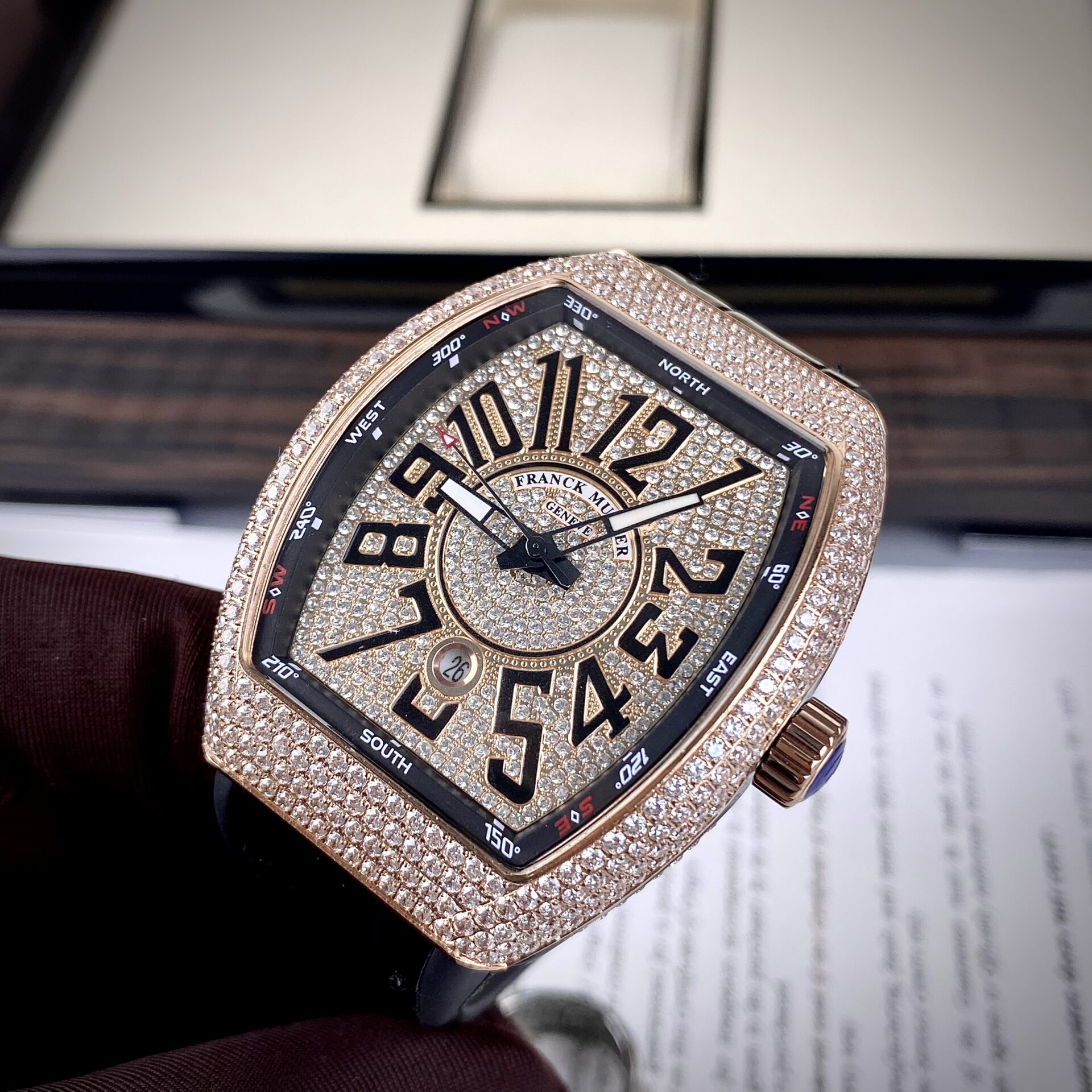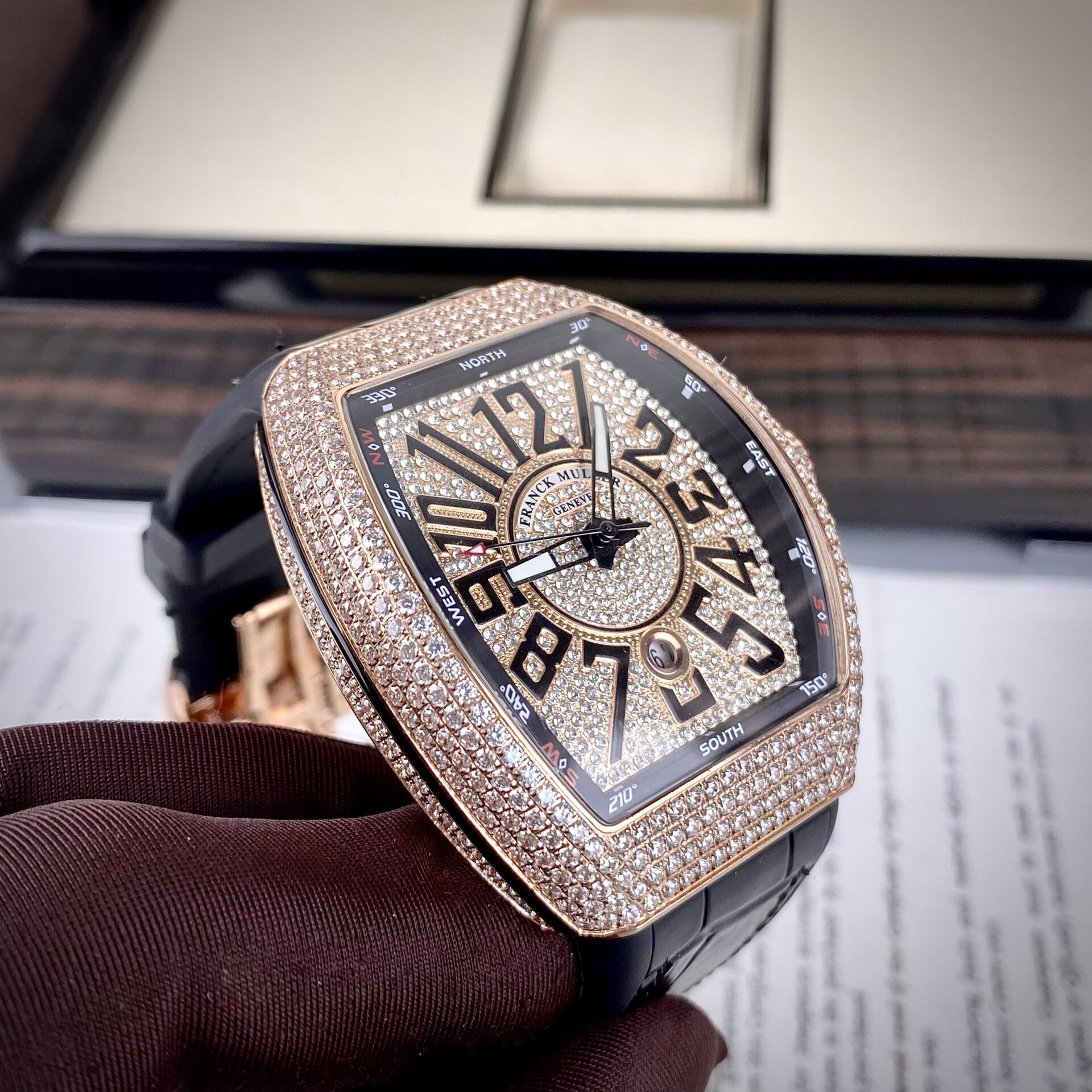ĐỒNG HỒ FRANCK MULLER V45 NAM SIÊU CẤP ĐÍNH ĐÁ VÀNG HỒNG 44MM