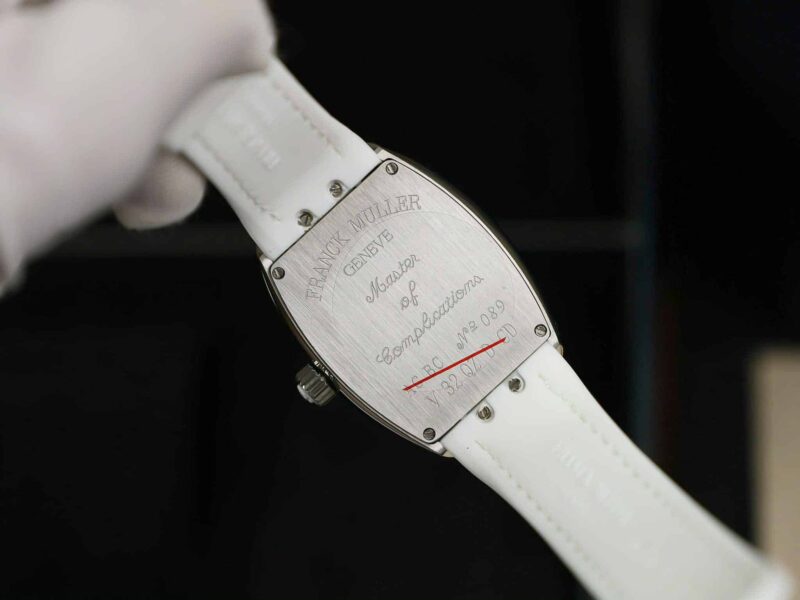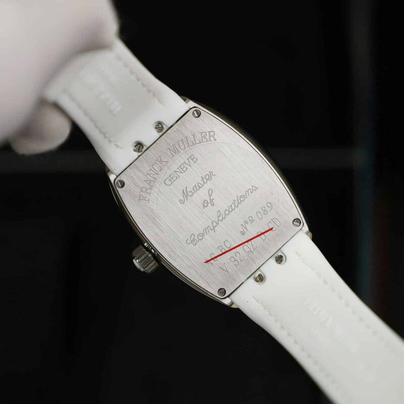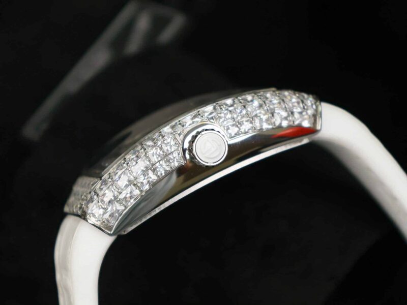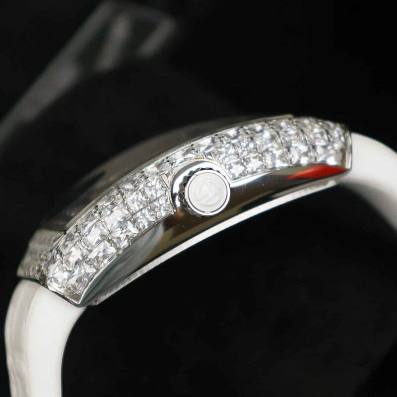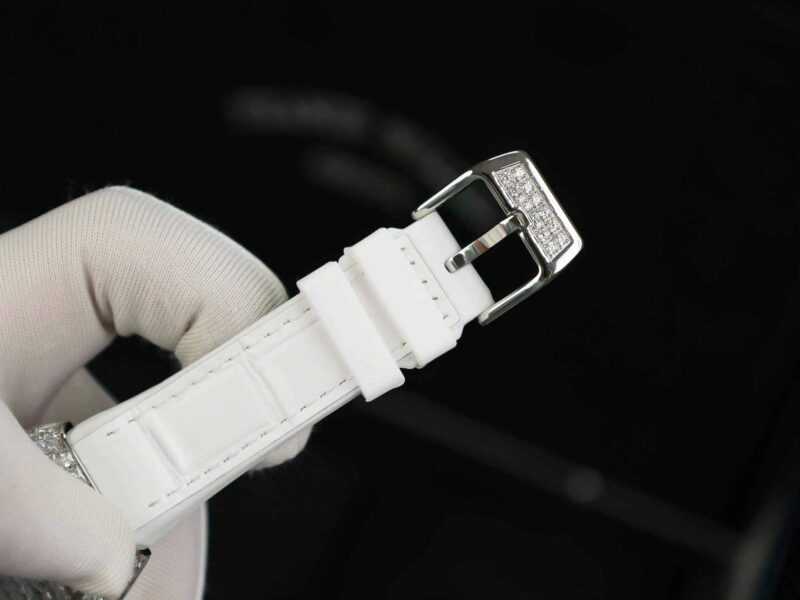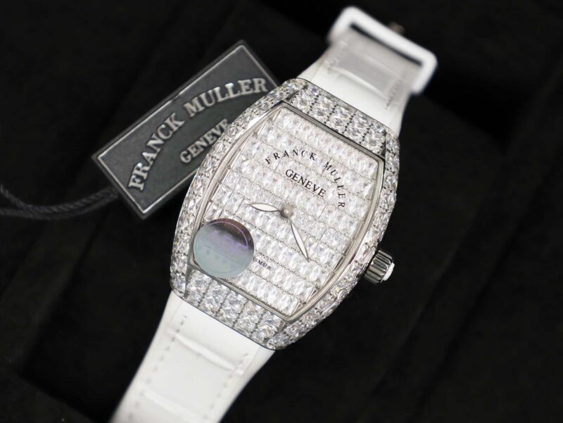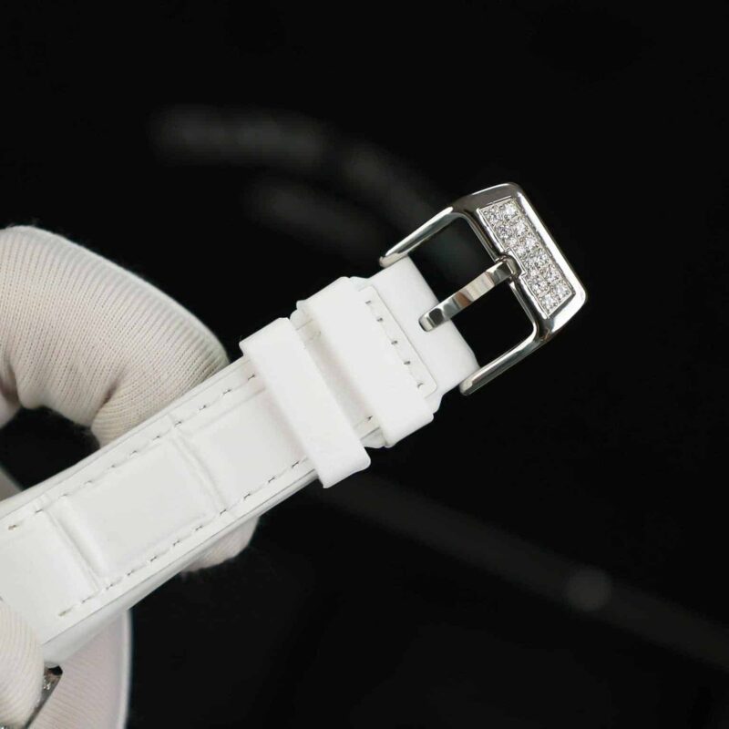 ĐỒNG HỒ NỮ FRANCK MULLER V32 FULL ĐÁ CZ BAGUETTE MÁY THỤY SĨ MÀU TRẮNG ABF 36MM