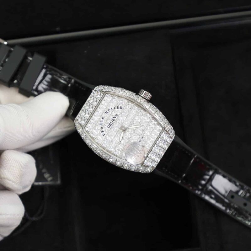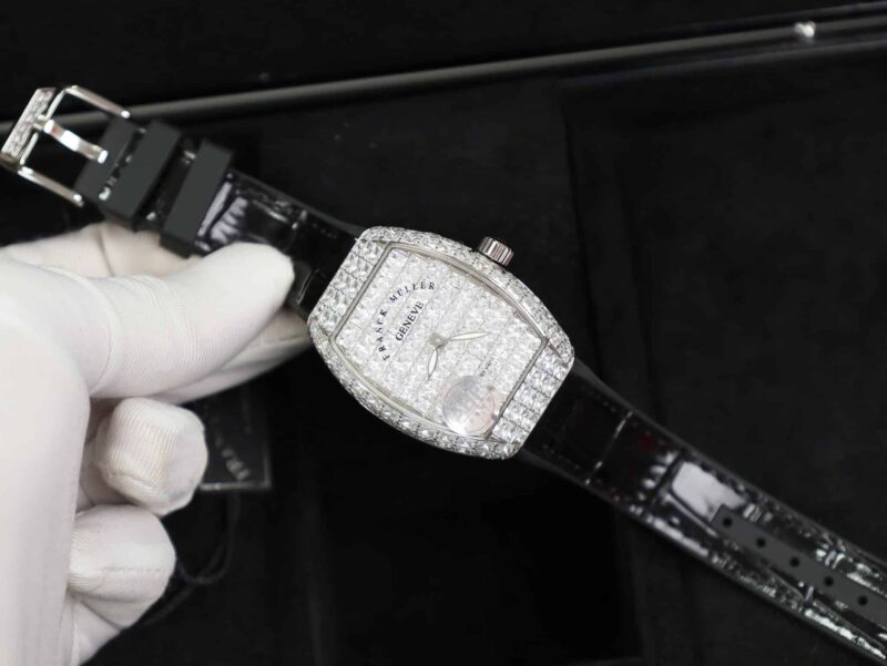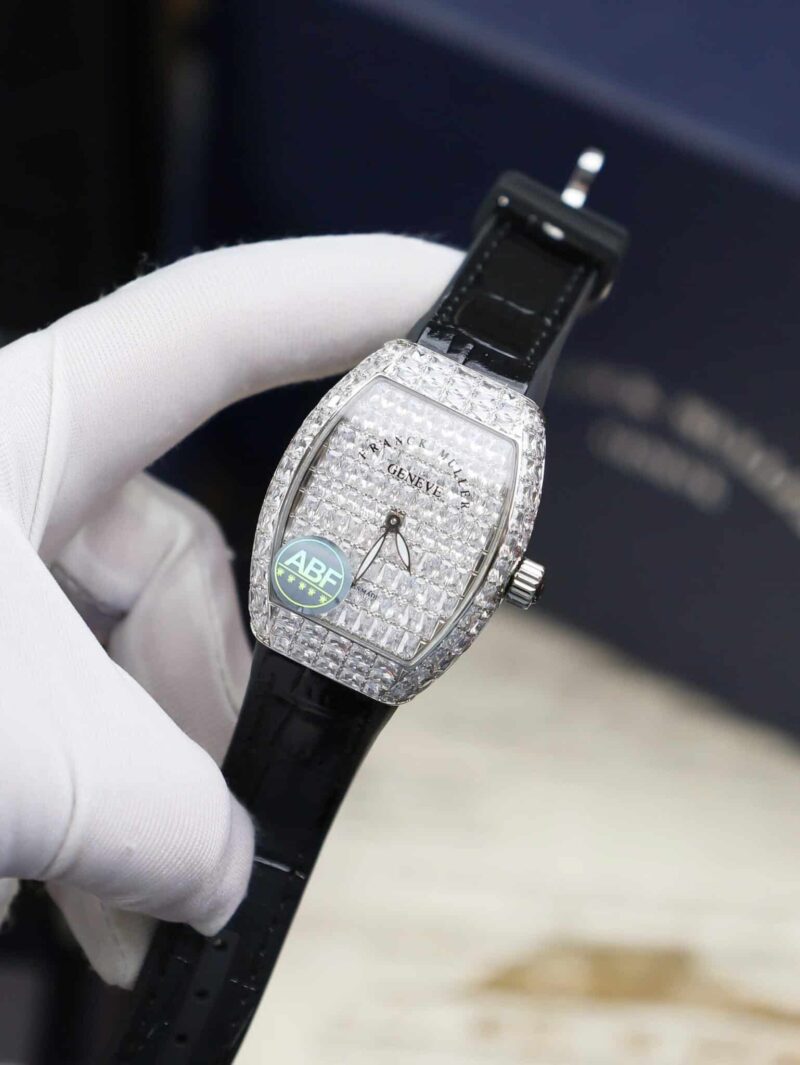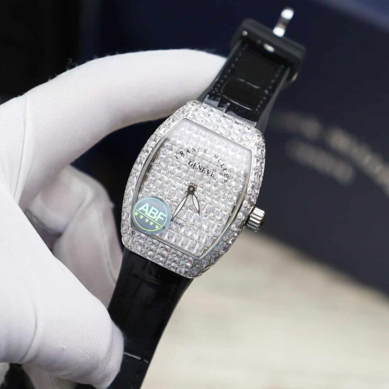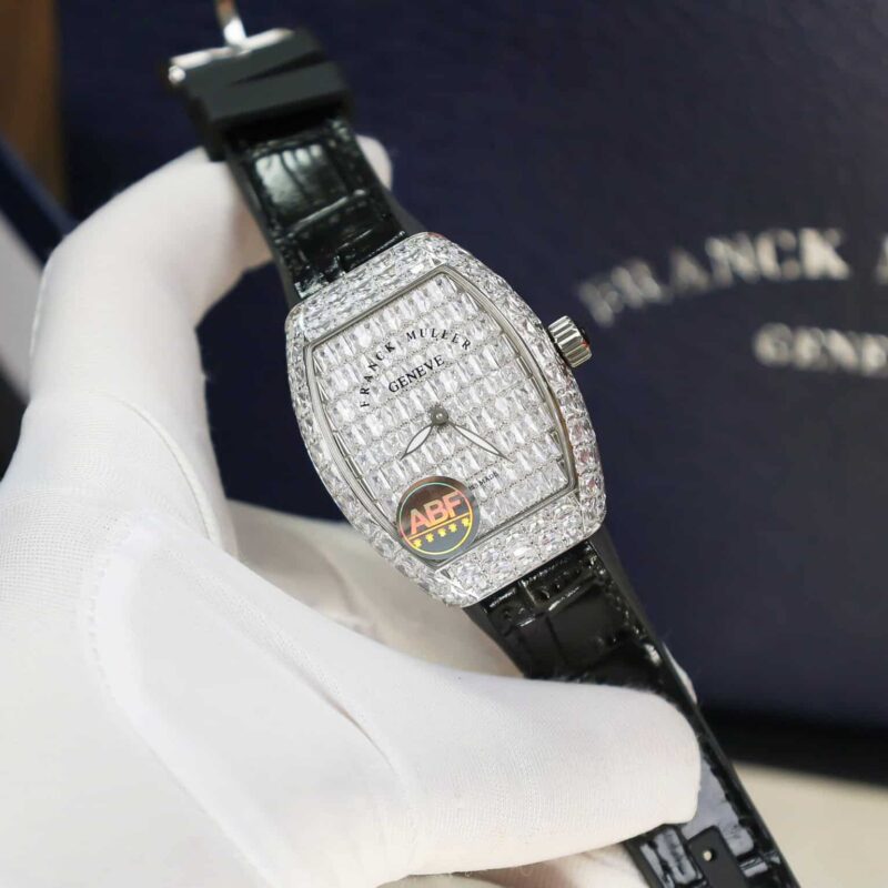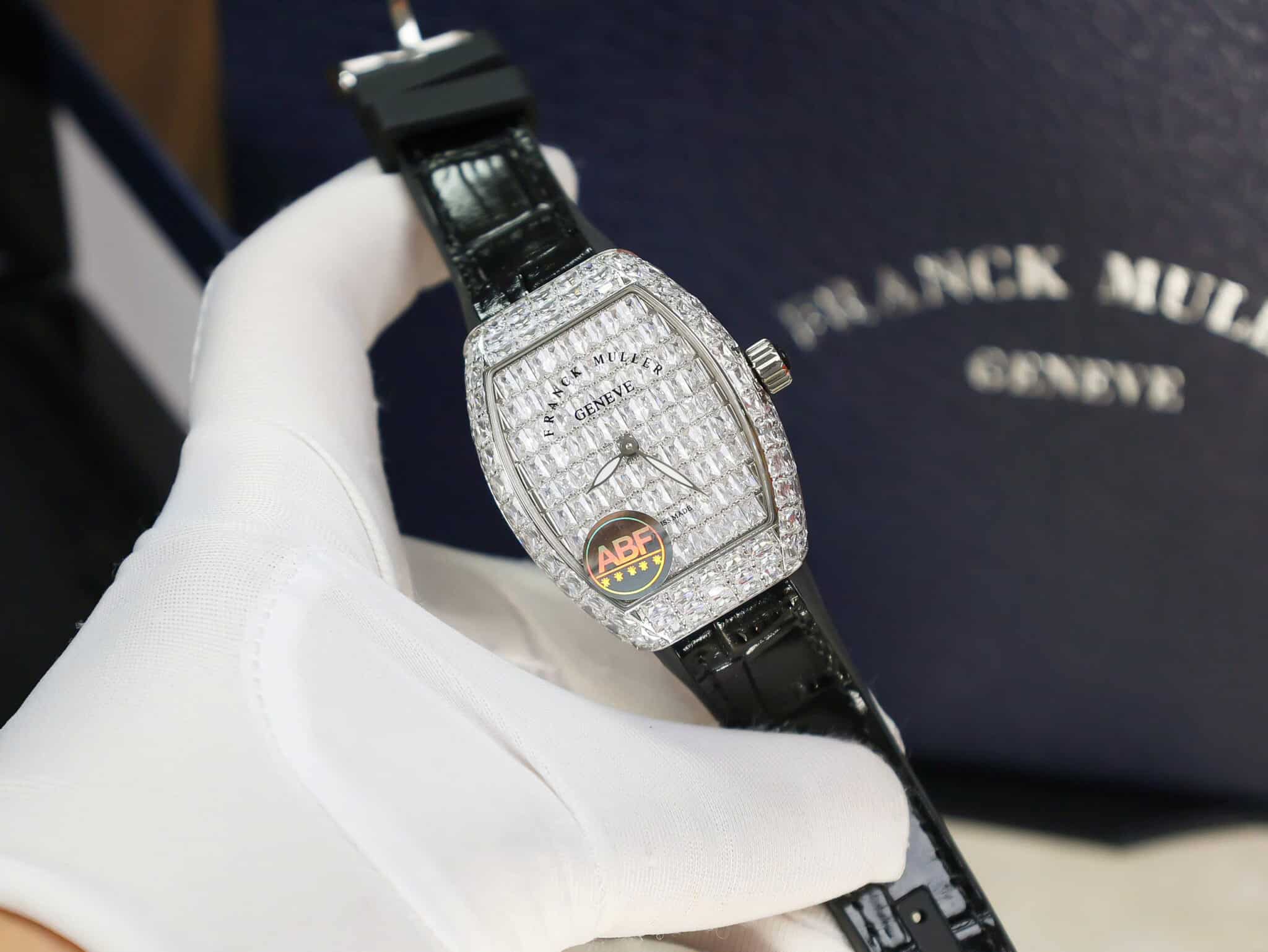 ĐỒNG HỒ NỮ FRANCK MULLER V32 MÀU ĐEN ĐÍNH FULL ĐÁ CZ BAGUETTE MÁY THỤY SĨ ABF 36MM