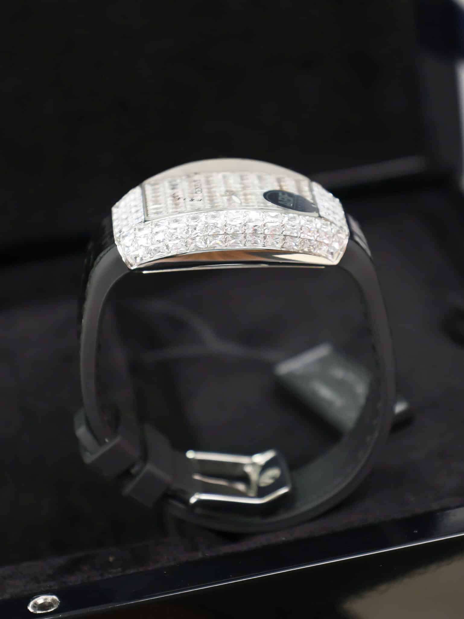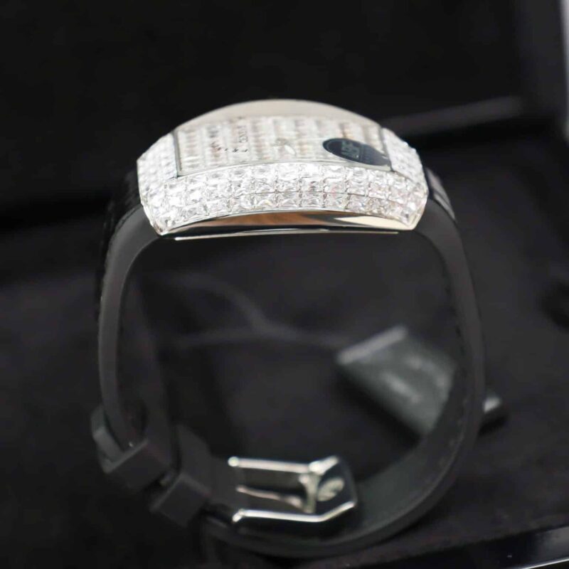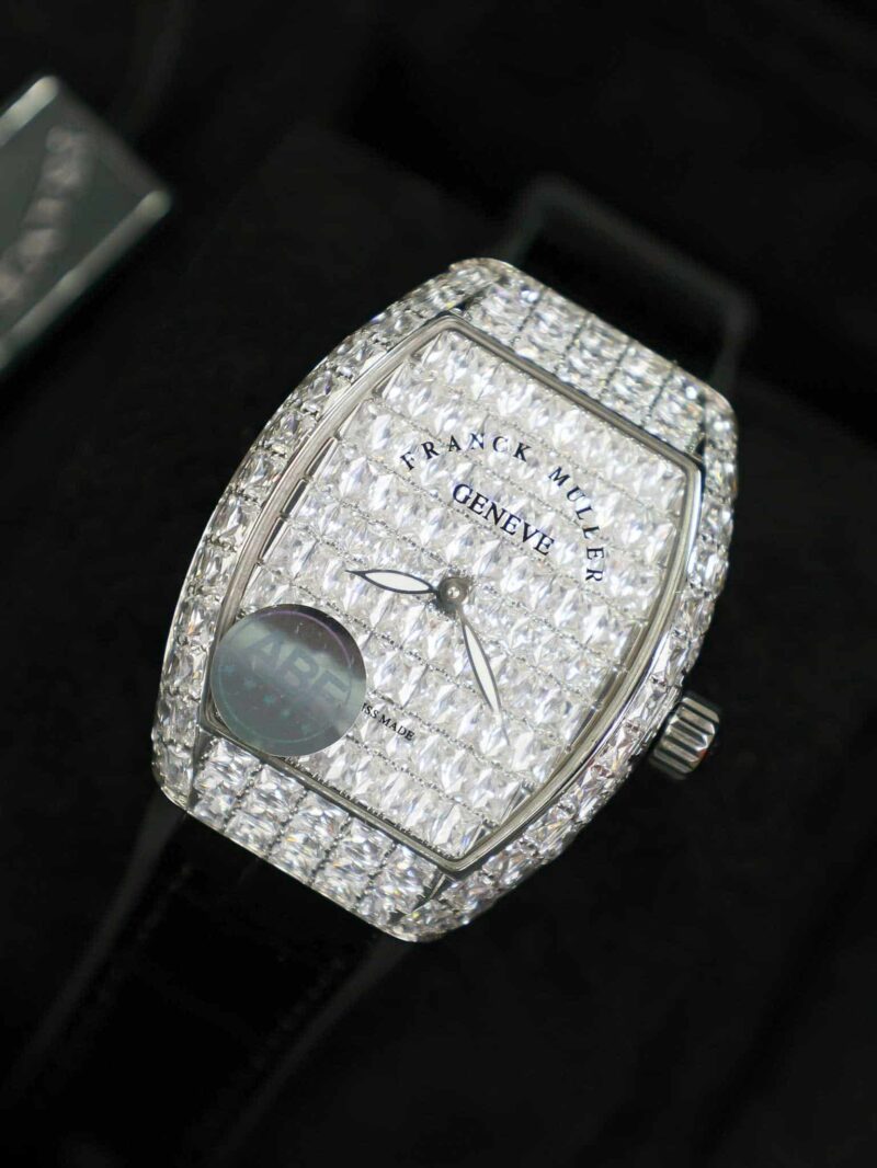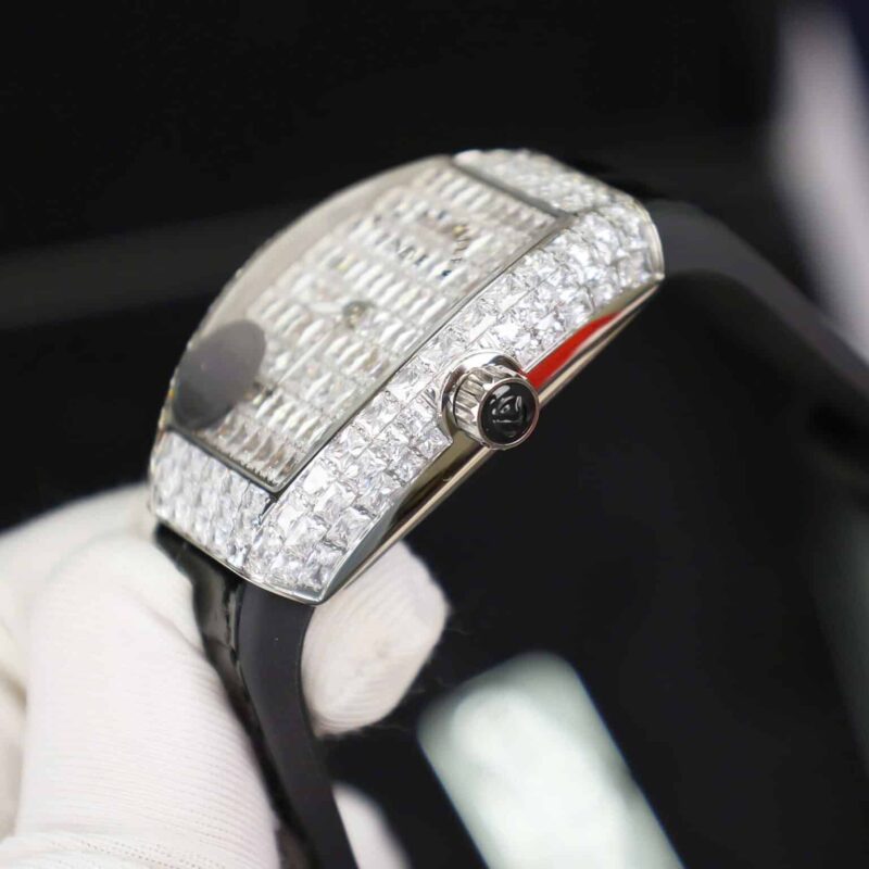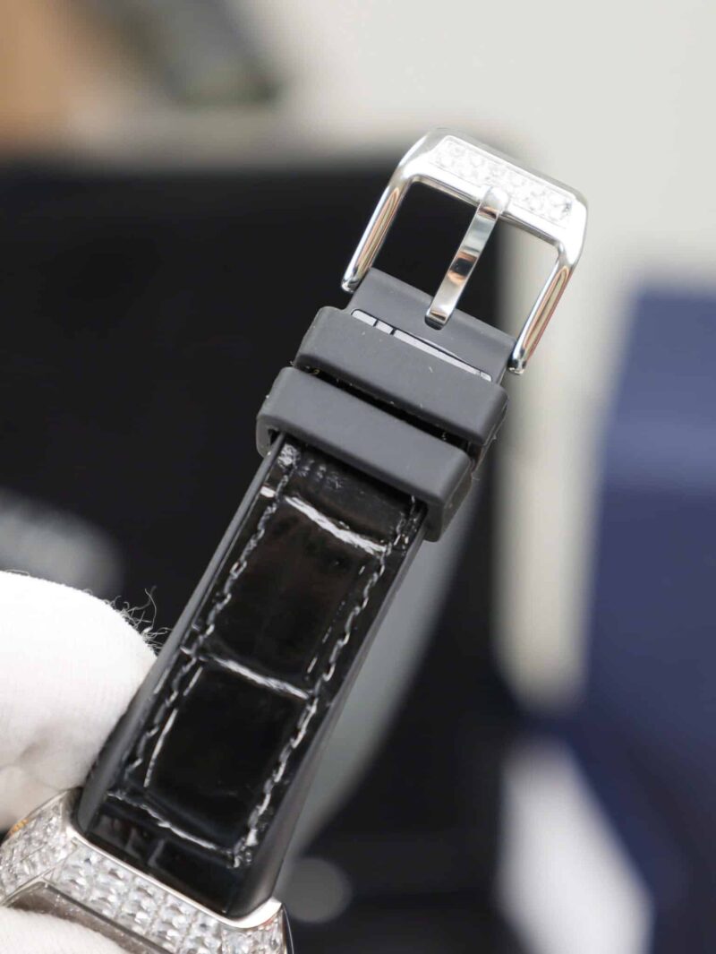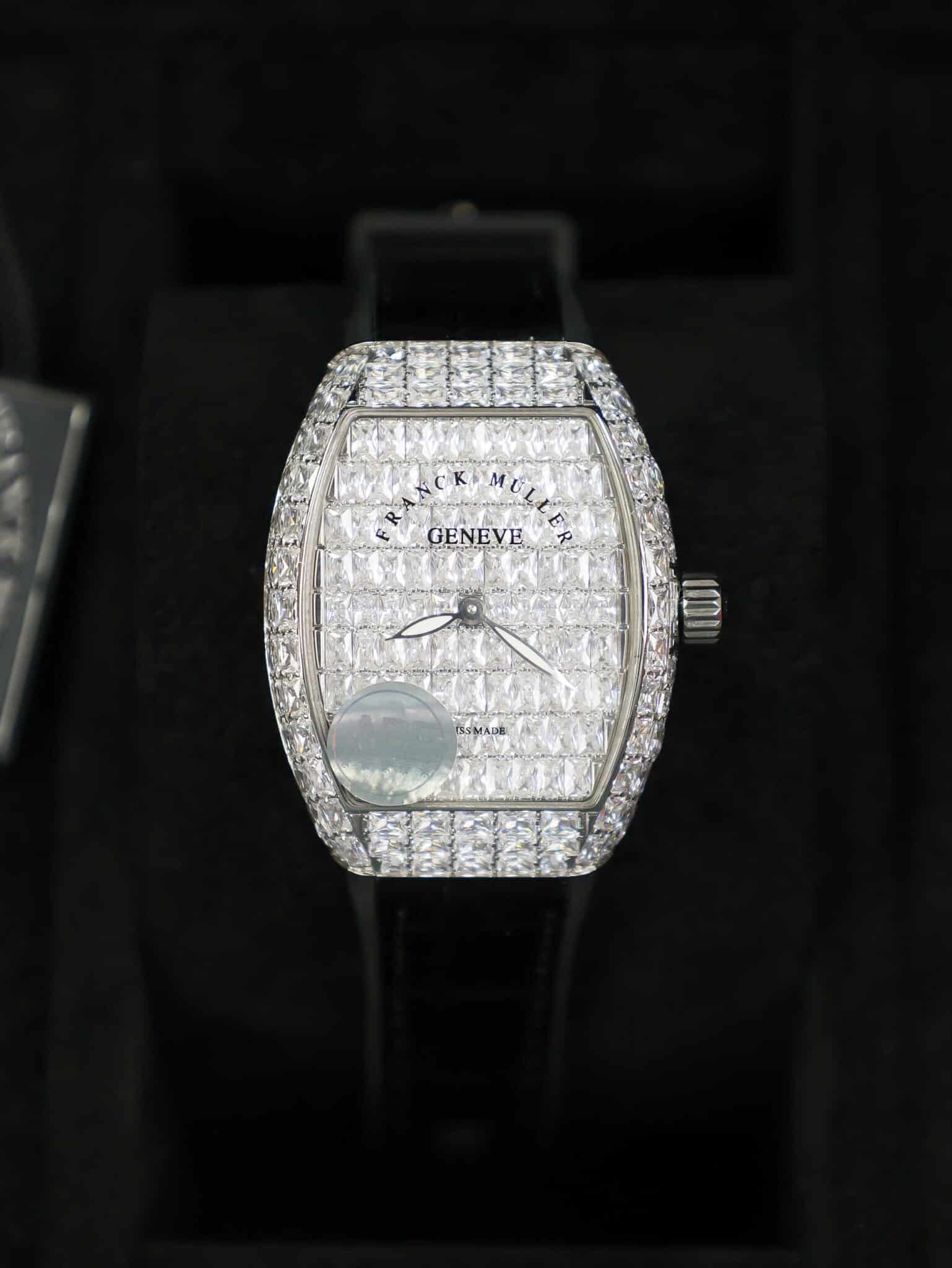 ĐỒNG HỒ NỮ FRANCK MULLER V32 MÀU ĐEN ĐÍNH FULL ĐÁ CZ BAGUETTE MÁY THỤY SĨ ABF 36MM