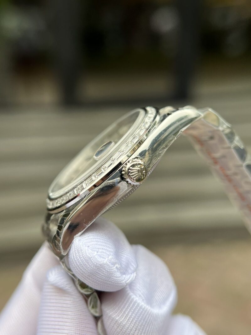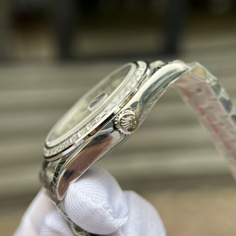 ĐỒNG HỒ ROLEX DAY-DATE NIỀNG ĐÁ BAGUETTE REPLICA 1:1 EW FACTORY 40MM