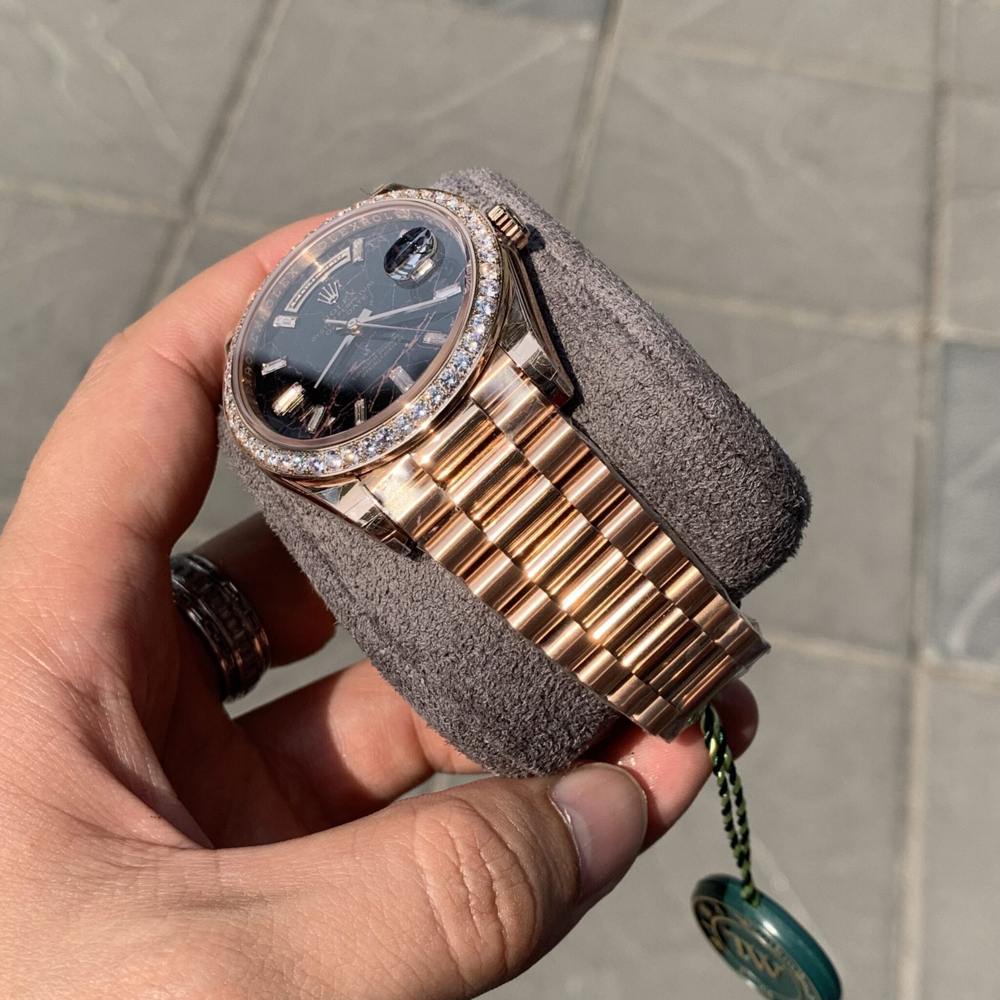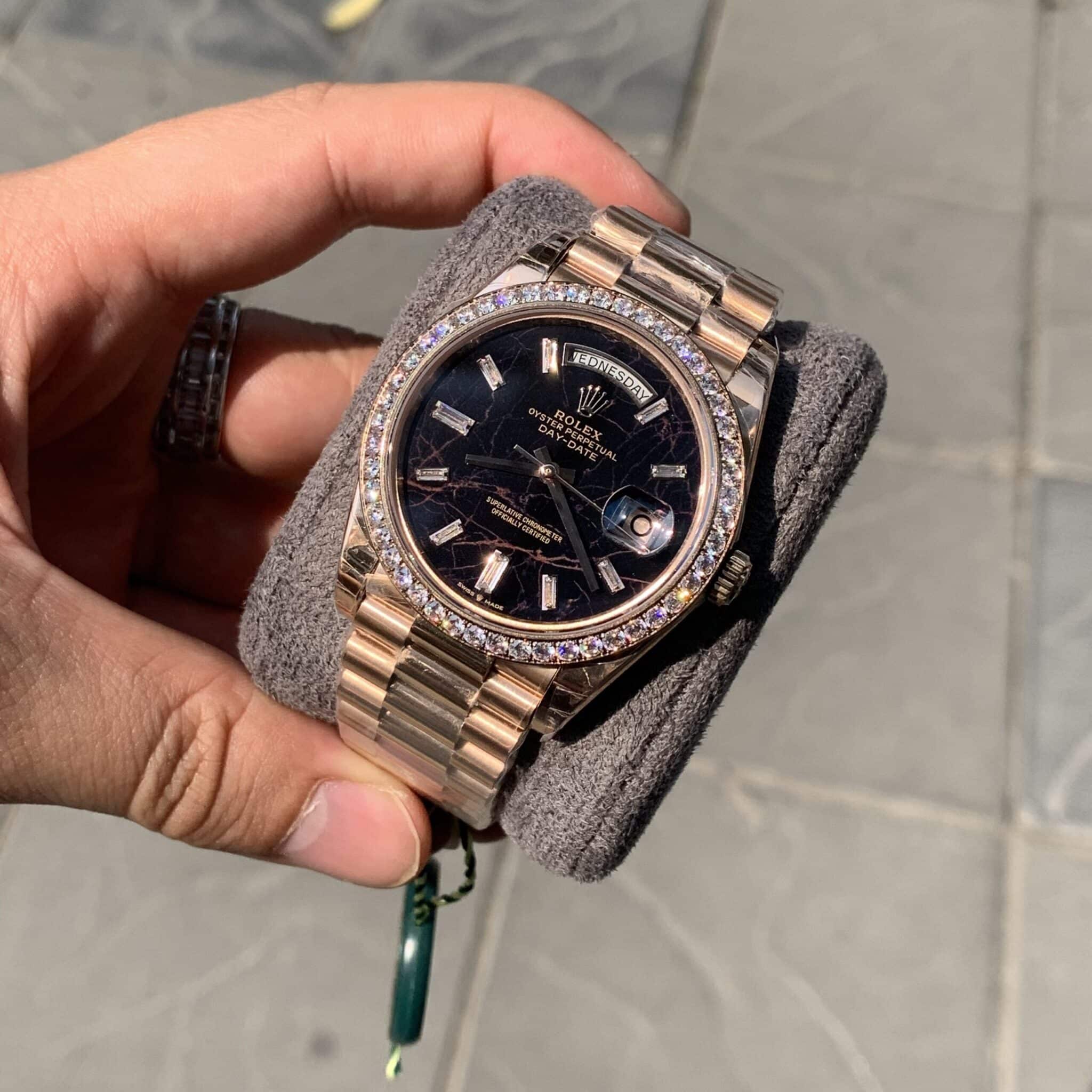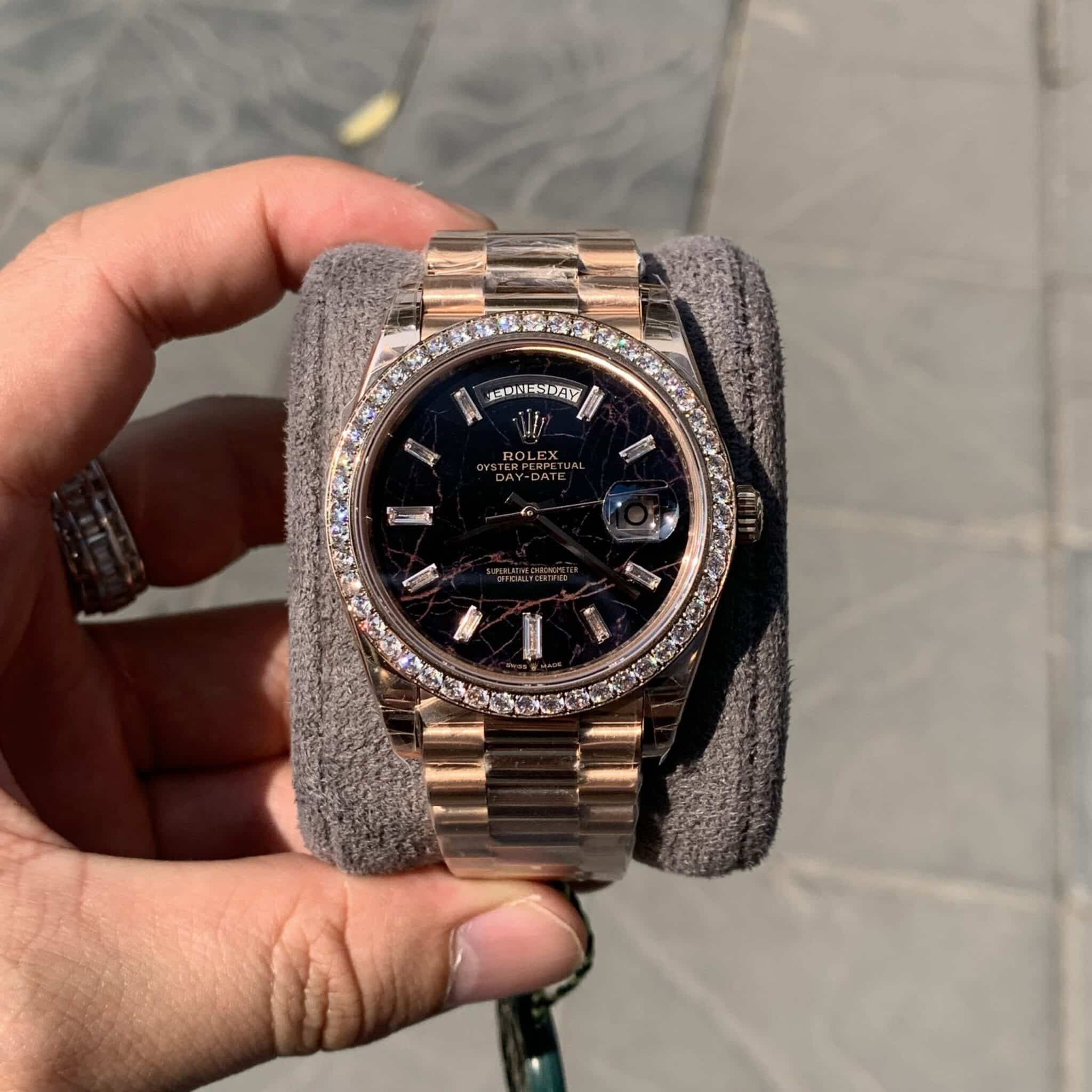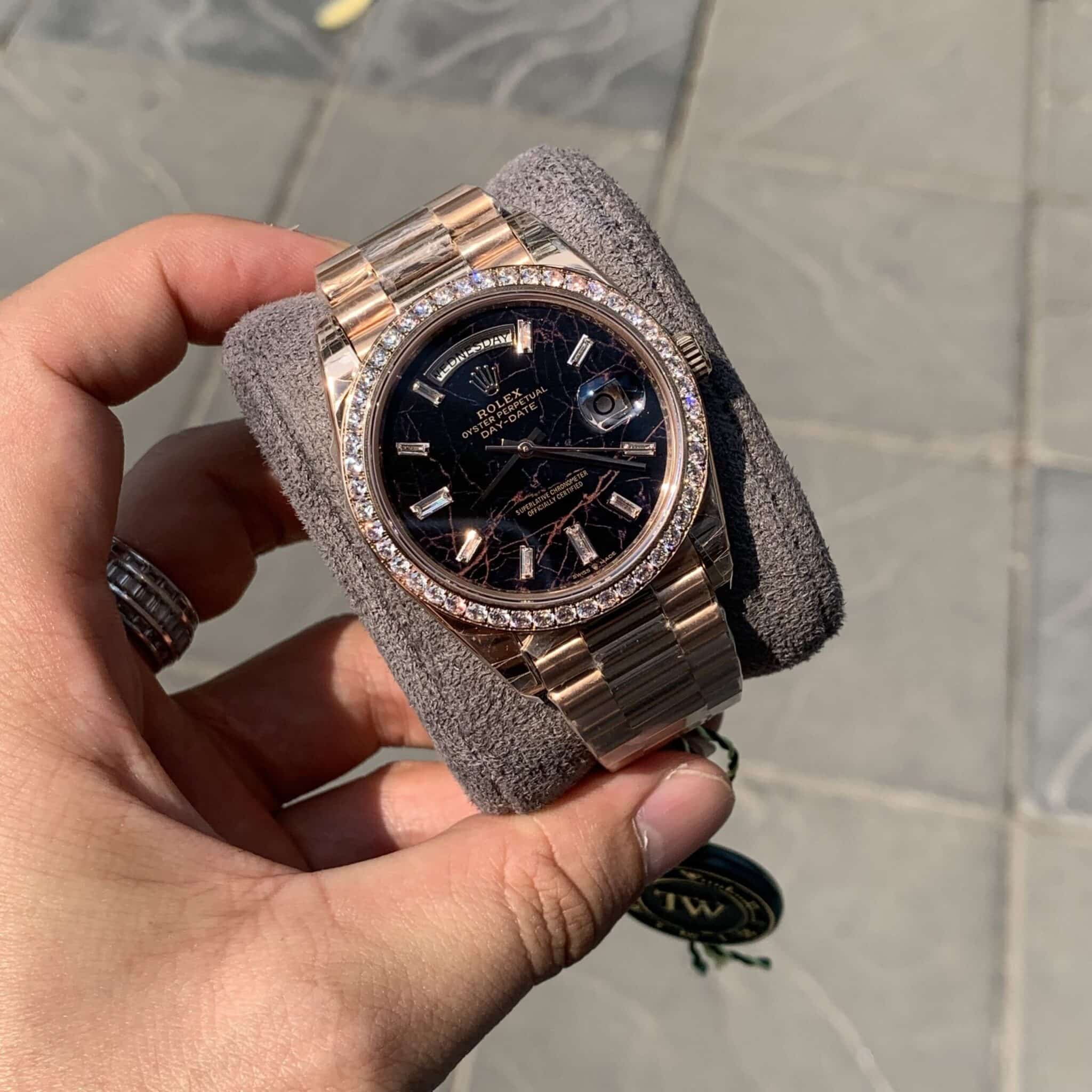 ĐỒNG HỒ ROLEX MẶT NHAM THẠCH DAY-DATE REPLICA 1:1 ROSEGOLD 40MM