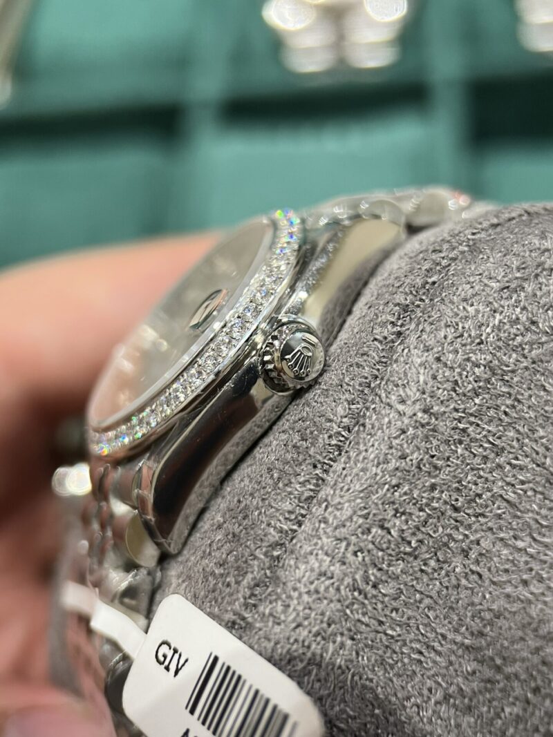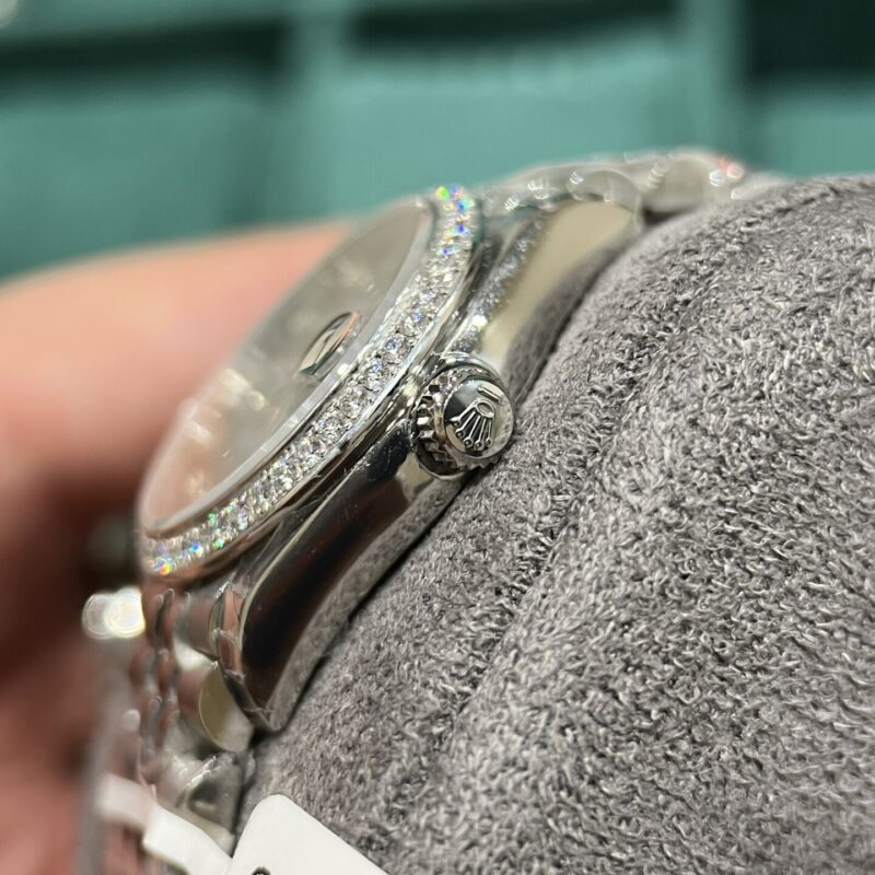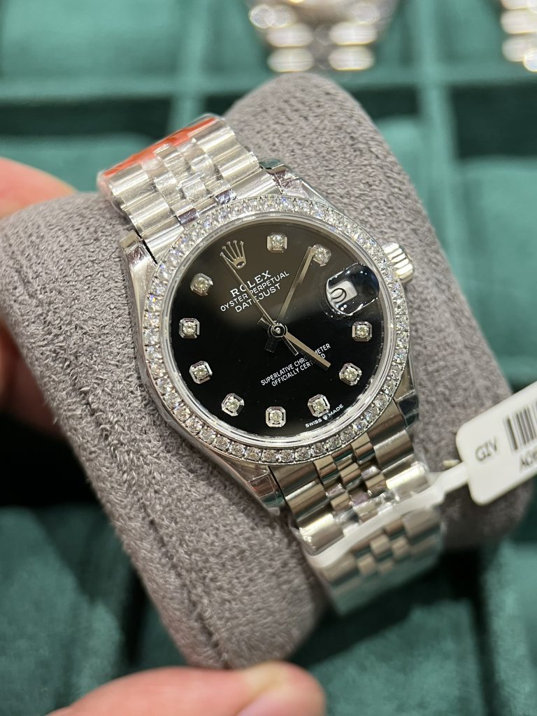 ĐỒNG HỒ ROLEX DATEJUST NỮ NIỀNG KIM CƯƠNG MOISSANITE MẶT ĐEN 31MM