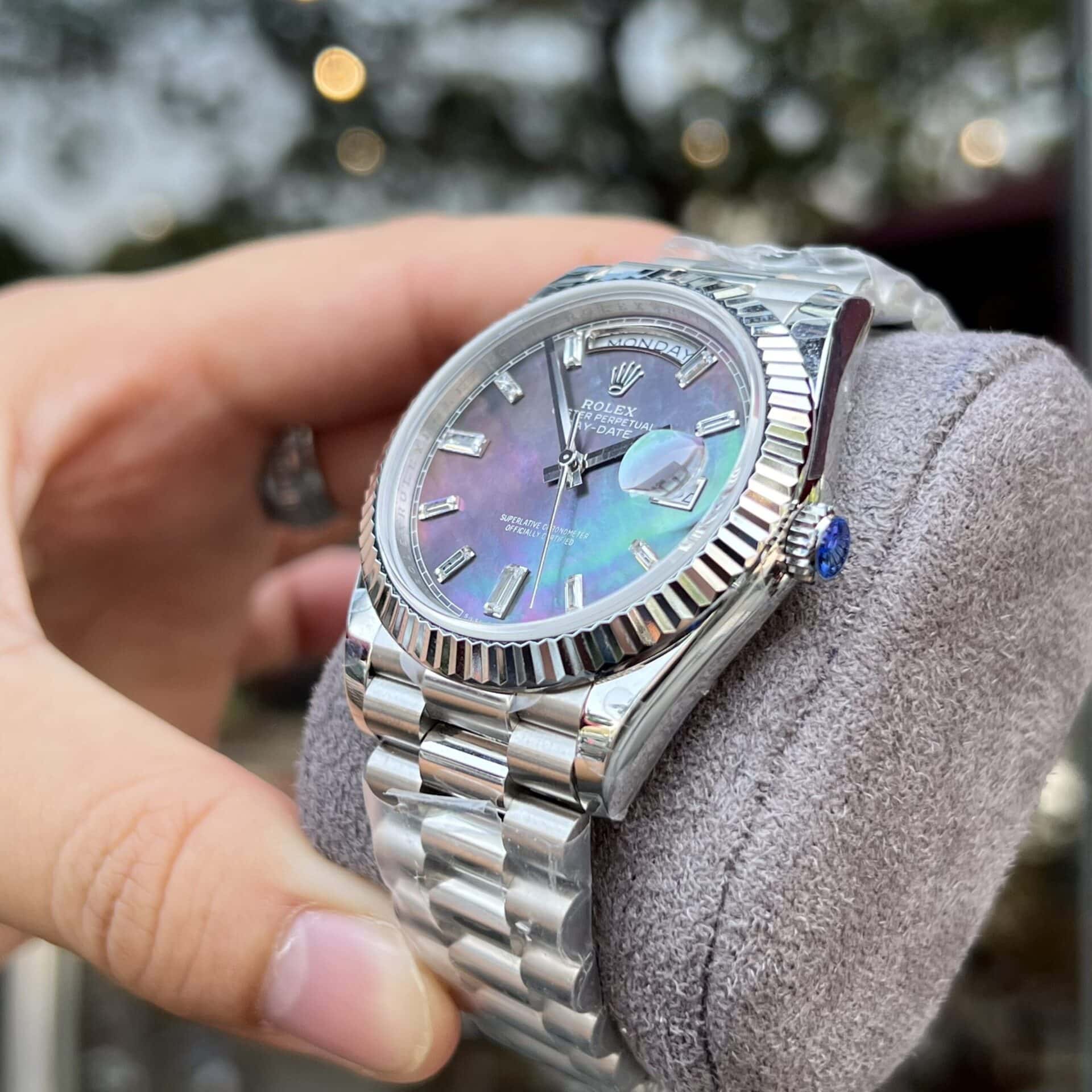 ĐỒNG HỒ ROLEX REPLICA 1:1 DAY-DATE MẶT XÀ CỪ ĐỔI MÀU 40MM