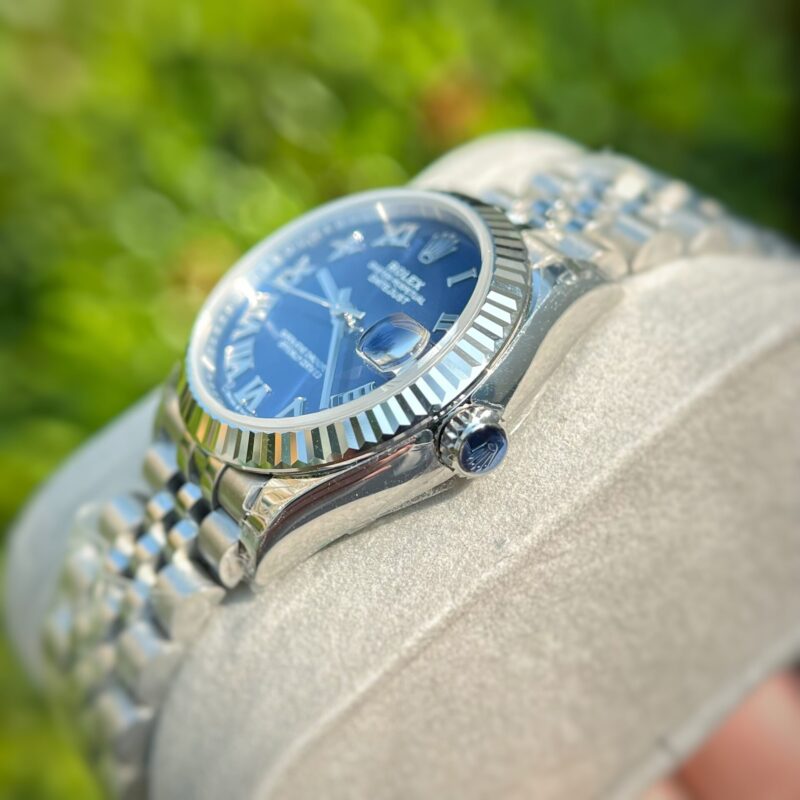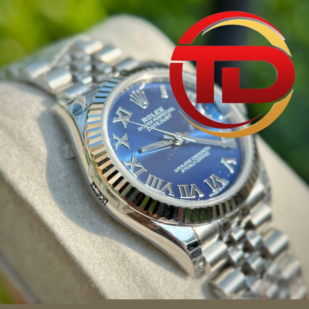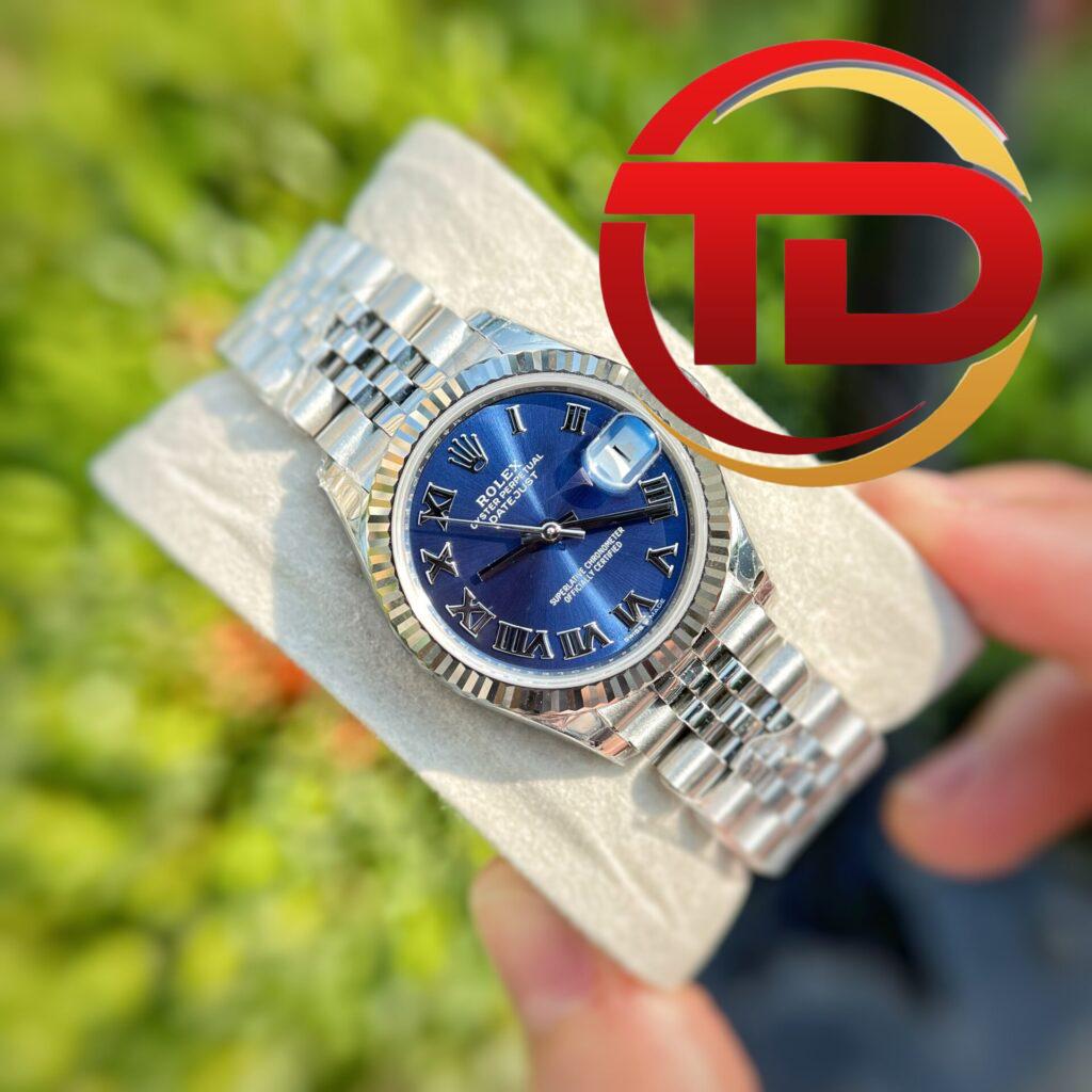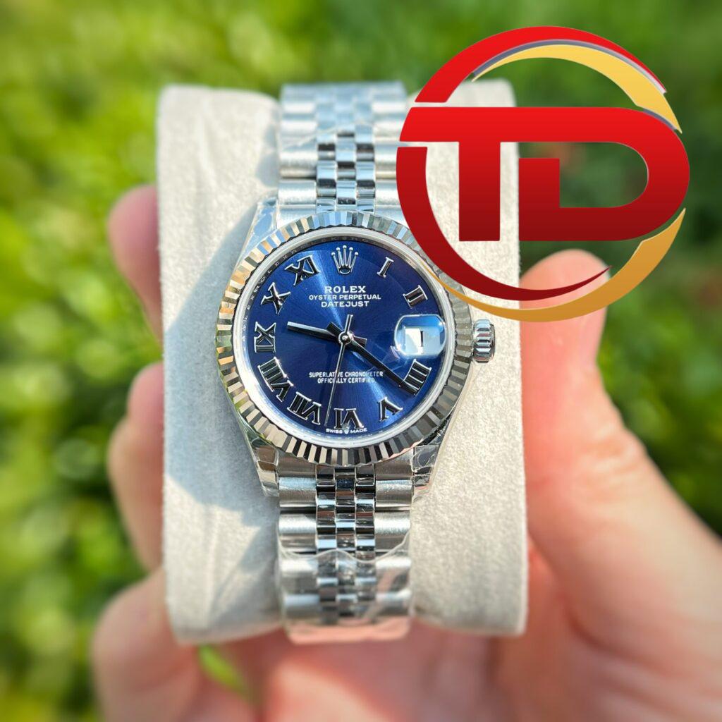 PyGlow hân hạnh giới thiệu phiên bản đồng hồ nữ Rolex Datejust mặt xanh sáng cọc số la mã replica 1:1 size 31mm lên tay cực xinh dành cho những quý cô.