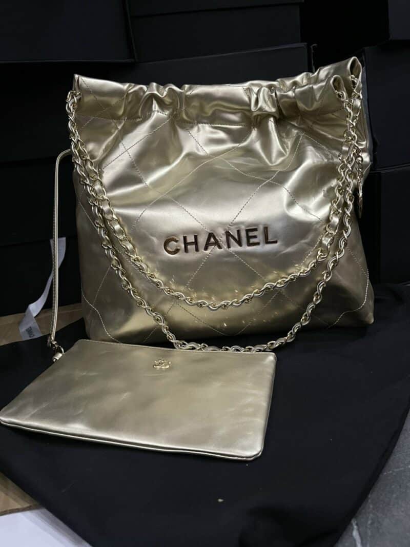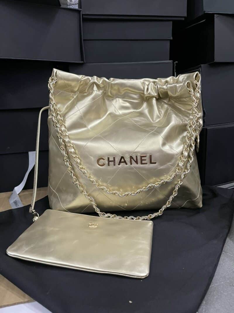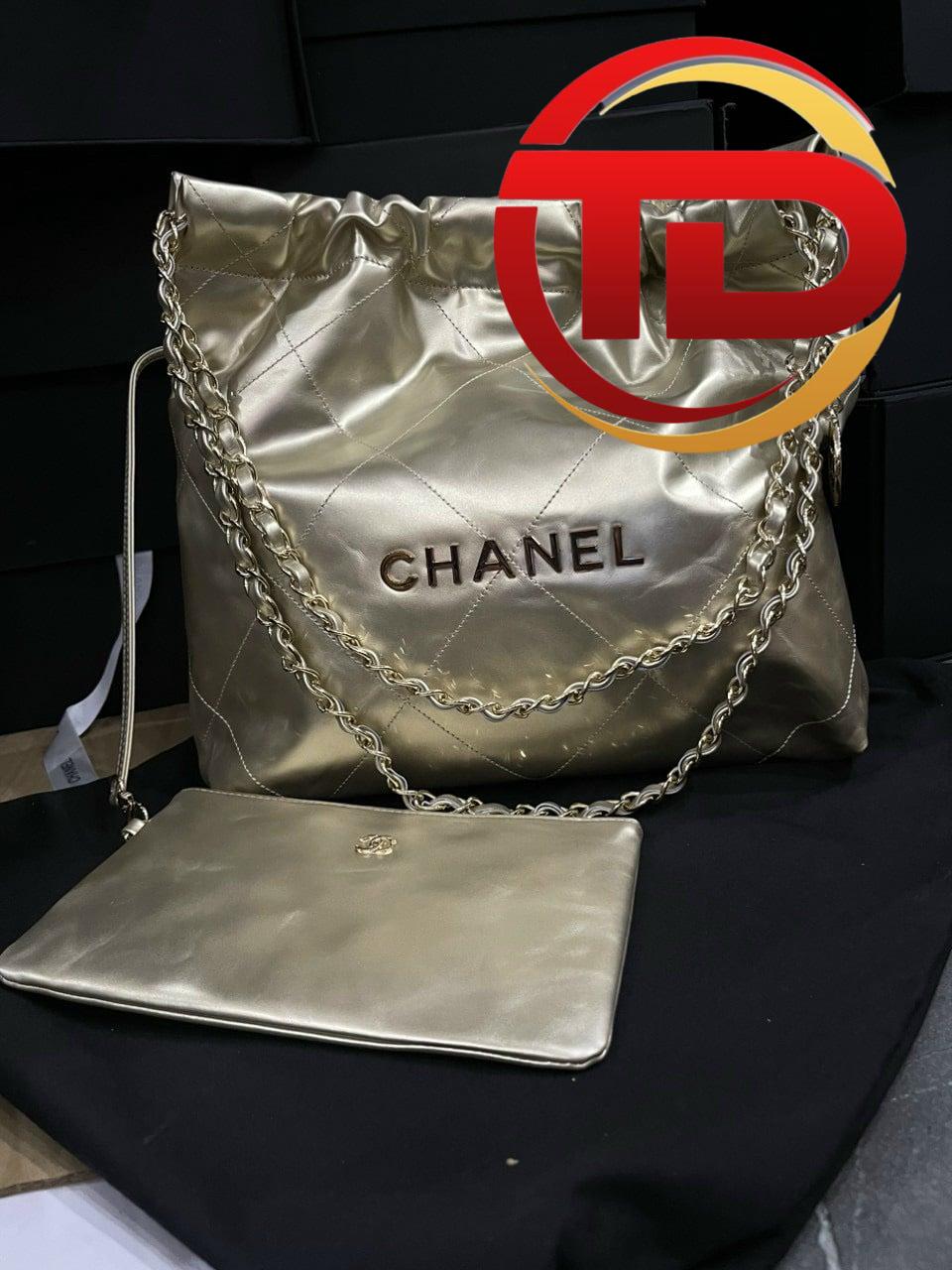 TÚI CHANEL 22 SHOPPING SIÊU CẤP DA DÊ LOGO VÀNG MÀU VÀNG BÓNG FULLBOX là chiếc túi xách cao cấp đến từ thương hiệu Chanel nổi tiếng. Chiêc túi có thiết kế đẹp mắt cùng chất liệu cao cấp nên được săn đón ngay khi ra mắt.
