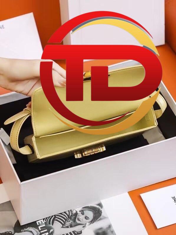 TÚI ĐEO CHÉO CELINE TRIOMPHE SHOULER BAG SIÊU CẤP MÀU BEIGE là chiếc túi dáng hộp nhỏ xinh với nắp khoá cộp mác Celine đặc trưng của thương hiệu được các ngôi sao ưu thích.