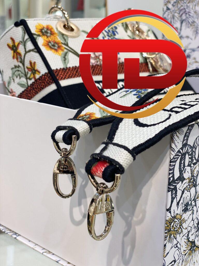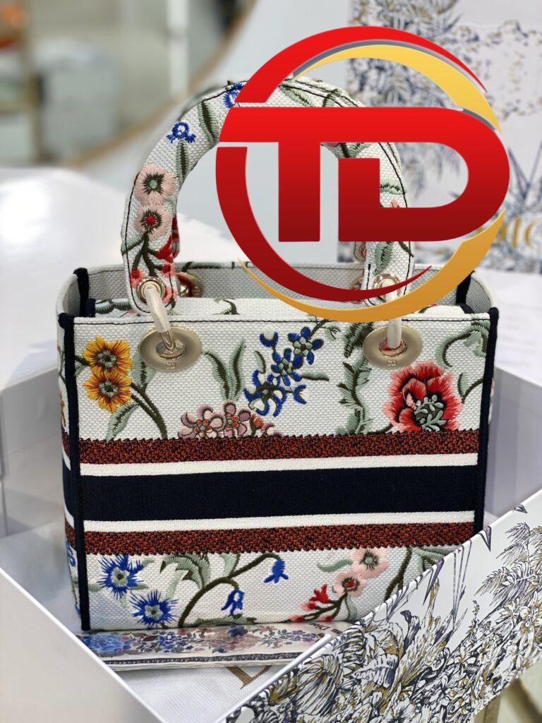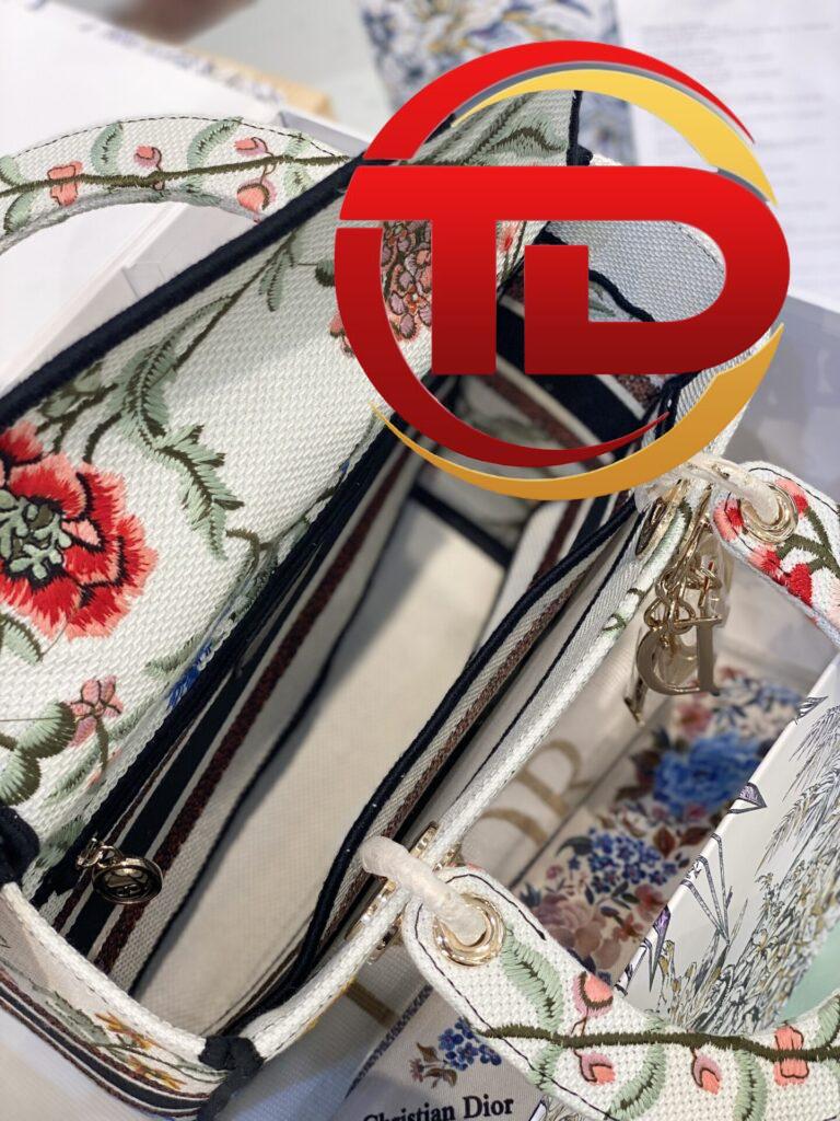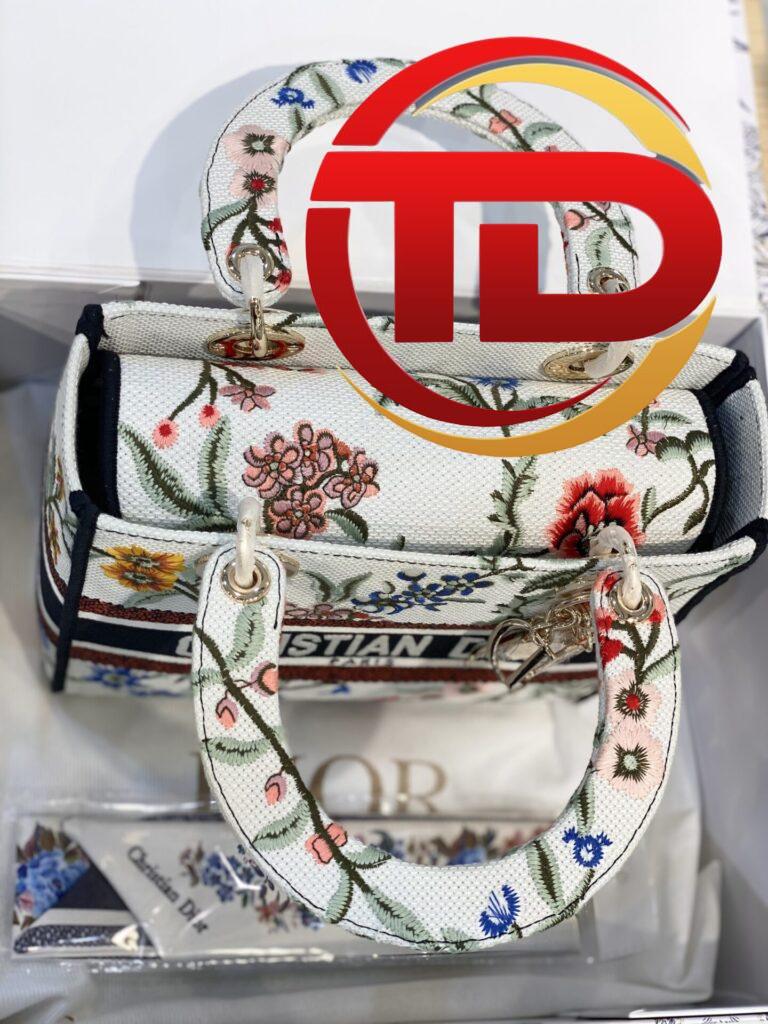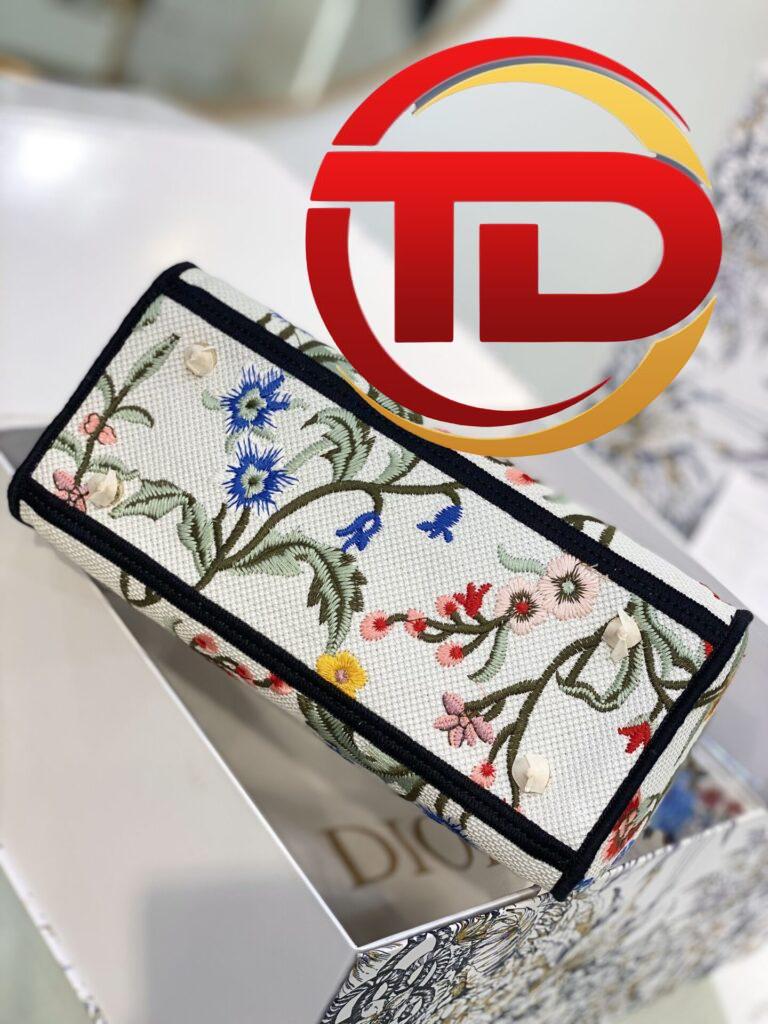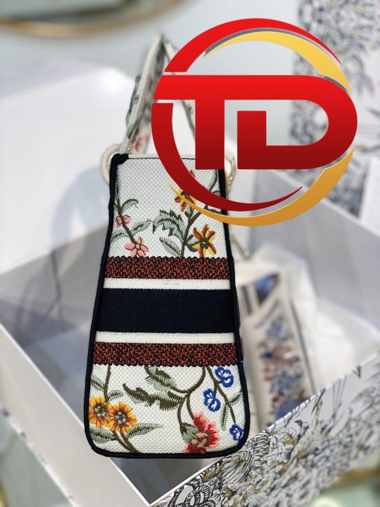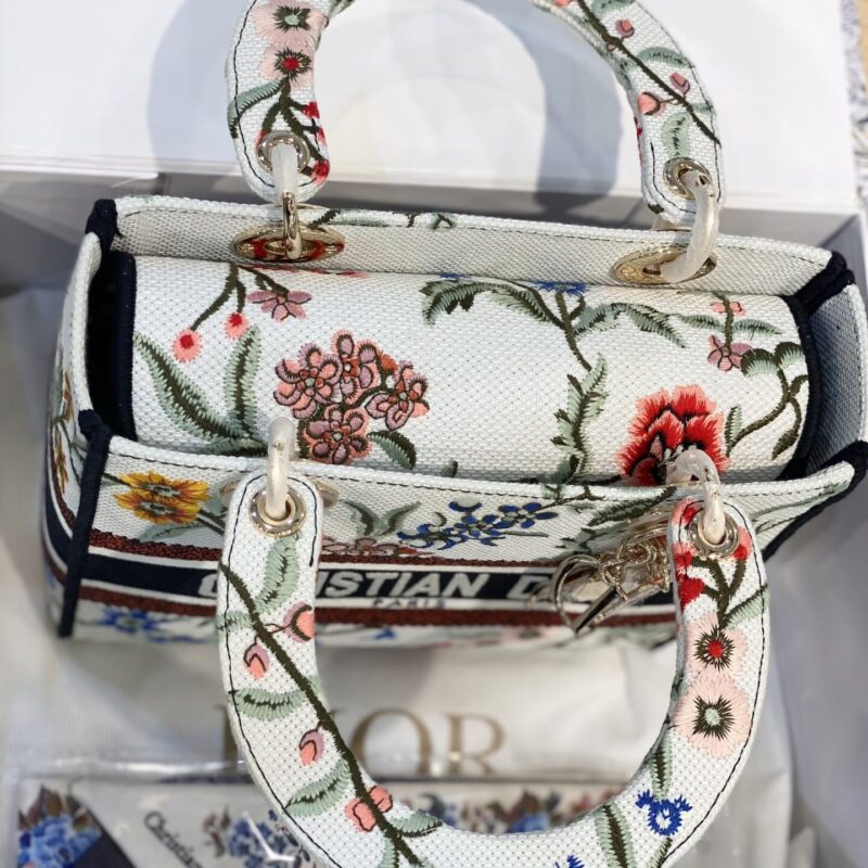 TÚI LADY DIOR MEDIUM SIZE D-LITE BAG WHITE MULTICOLOR PETITES FLEURS EMBROIDERY