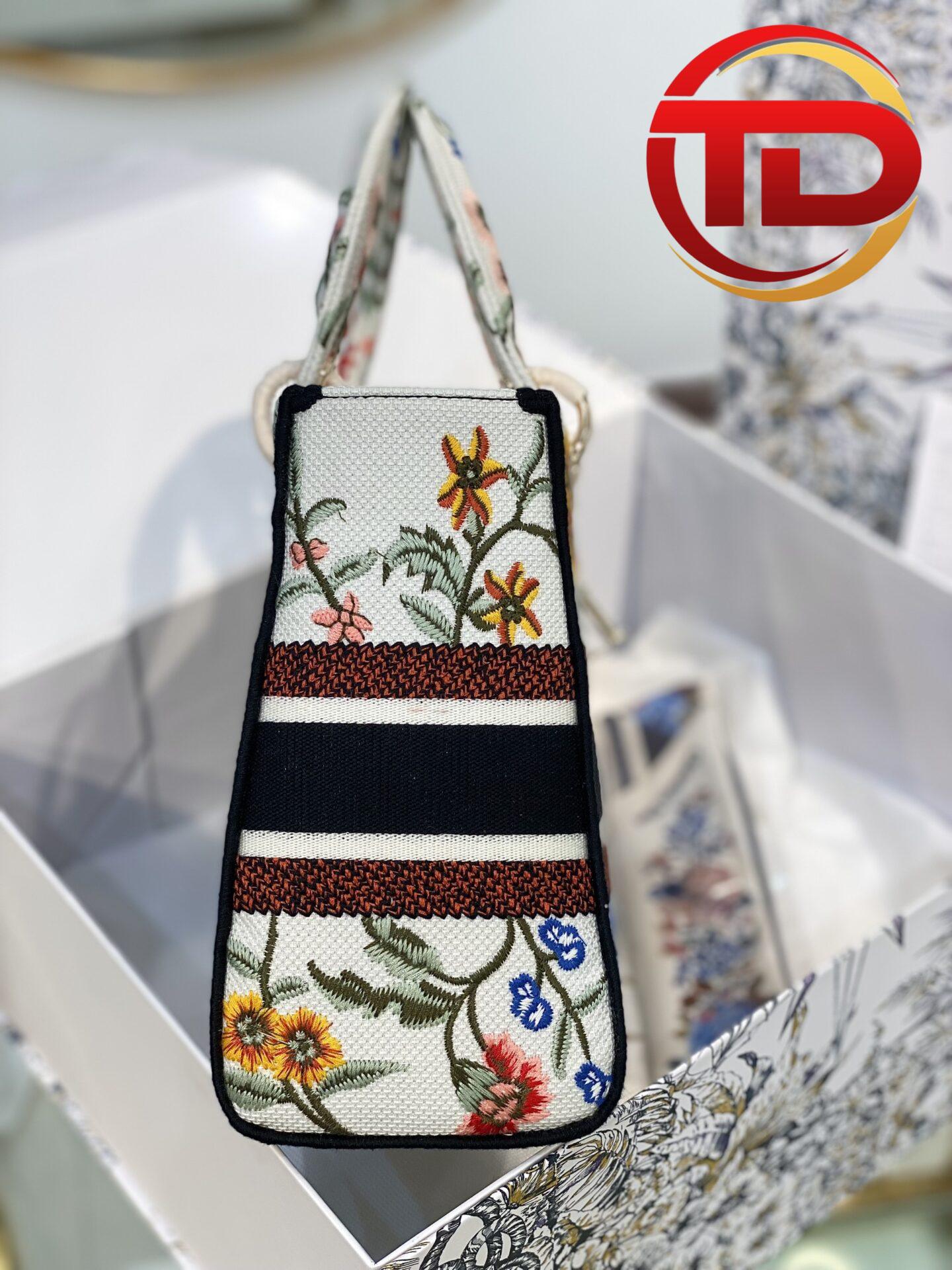 TÚI LADY DIOR MEDIUM SIZE D-LITE BAG WHITE MULTICOLOR PETITES FLEURS EMBROIDERY