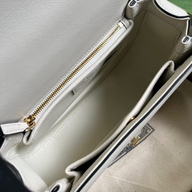 Chất liệu da mềm mại được lựa chọn kỹ càng để tạo nên mẫu túi Gucci Blondie đình đám, thu hút mọi ánh nhìn của chị em. Túi sở hữu kiểu dáng hình chữ A đặc trưng nhưng không hề góc cạnh mà toát lên vẻ đẹp mềm mại, nhẹ nhàng nhờ thiết kế bo tròn tại các góc cực kỳ ấn tượng. Gucci khéo léo trang trí logo double G lồng vào nhau ở vị trí trung tâm, tạo nên một vòng tròn tuyệt đẹp và toát lên nét đẳng cấp của thương hiệu thời trang đỉnh cao.