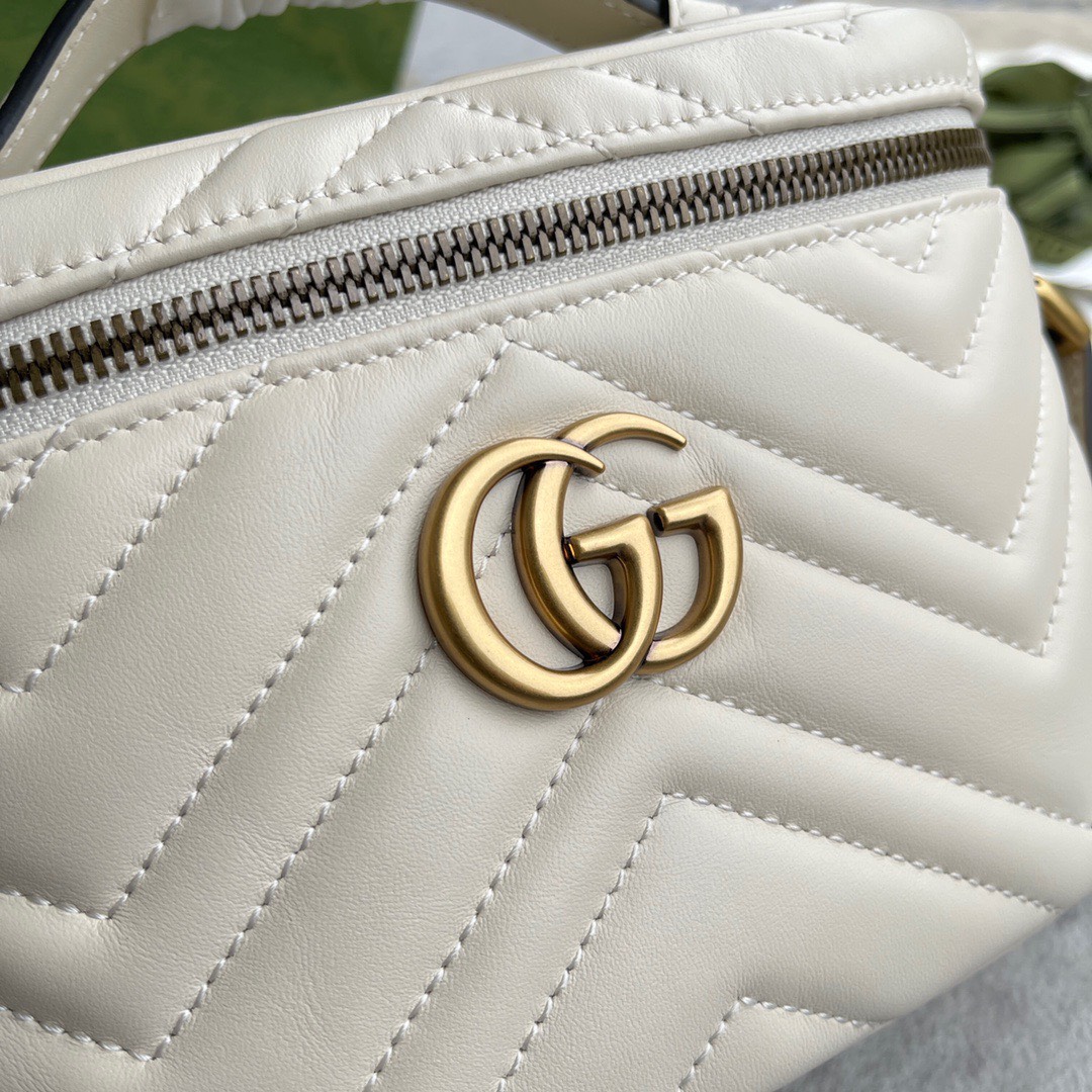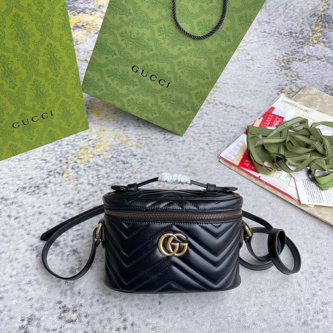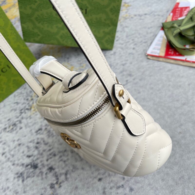 GUCCI MARMONT MINI TOP HANDLE BAG một túi nhỏ có zip xung quanh với tay cầm trên cùng được giới thiệu trong bộ sưu tập GG Marmont. Được chế tác từ da chevron matelassé đặc trưng của dòng với màu đen. Hình dạng tròn được làm phong phú với chi tiết Double G. Với dây đeo xích có thể tháo rời, phụ kiện có thể được tạo kiểu theo nhiều cách khác nhau.