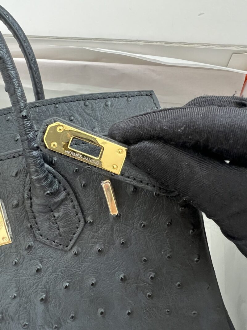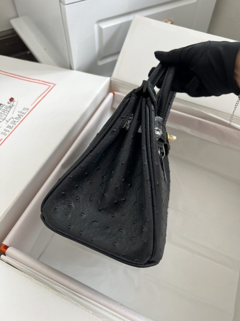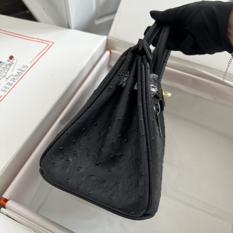 Vẻ đẹp khó đụng hàng: Túi Hermes nổi tiếng với vẻ đẹp sang trọng và đẳng cấp. Và khi được khoác lên mình chất da đà điểu, những chiếc túi xách này càng trở nên sang chảnh hơn bao giờ hết. Lỗ chân lông to và tròn phân bố tự nhiên trên bề mặt cũng tạo nên vẻ đẹp độc đáo cho thiết kế. Có thể nói, màu sắc đa dạng và vẻ đẹp khó đụng hàng của túi xách HM da đà điểu đã chinh phục hàng triệu con tim