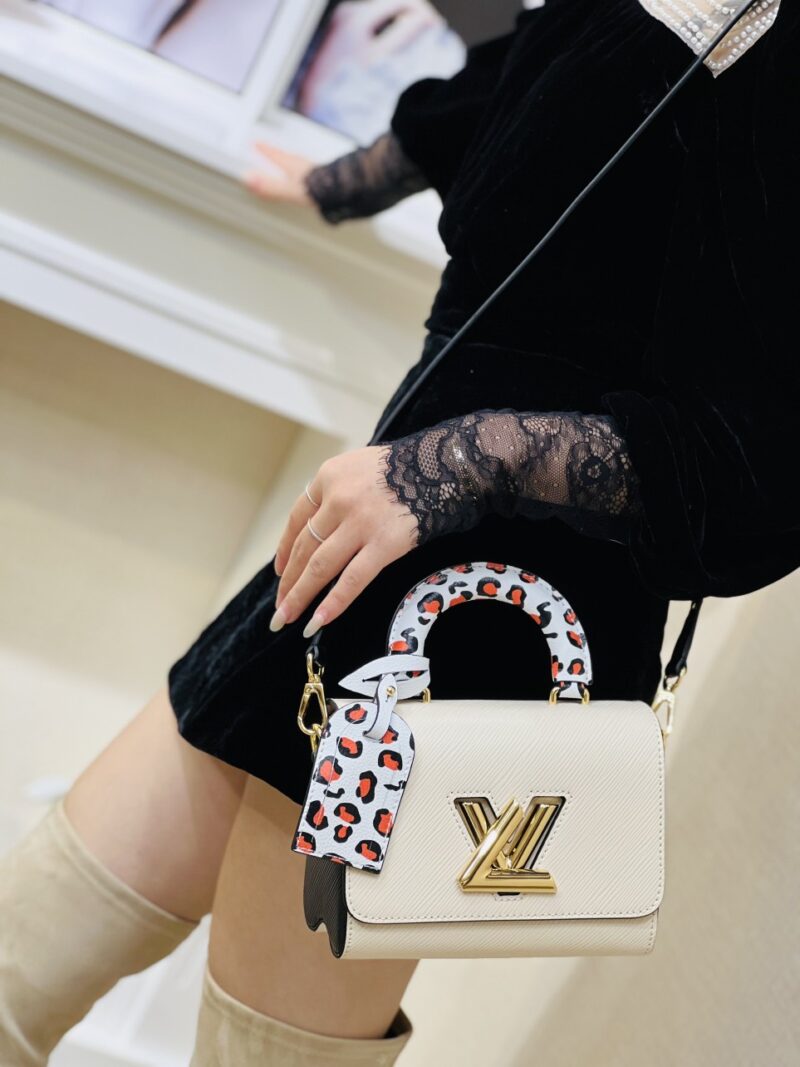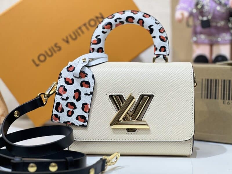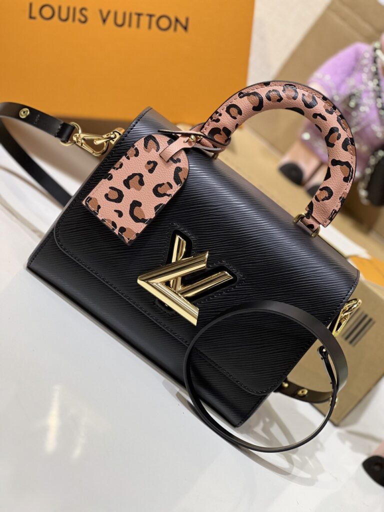 Túi LV Twist MM được trang bị tay cầm chắc chắn và một dây đeo bằng vải có dòng chữ Louis Vuitton vô cùng nổi bật. Nó mang đến sự linh hoạt và phong cách thời trang tuyệt đẹp.