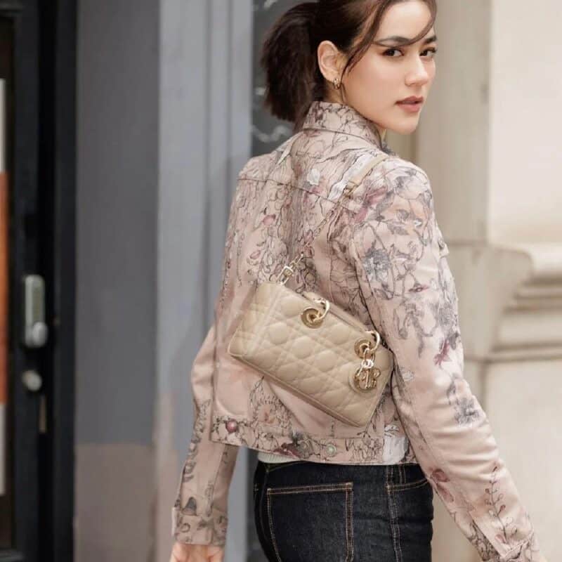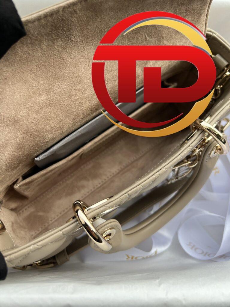 TÚI XÁCH NỮ SIÊU CẤP LADY DIOR D-JOY BAG NATURAL DA CỪU MÀU NÂU FULLBOX