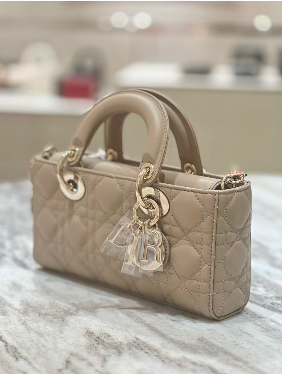 TÚI XÁCH NỮ SIÊU CẤP LADY DIOR D-JOY BAG NATURAL DA CỪU MÀU NÂU FULLBOX