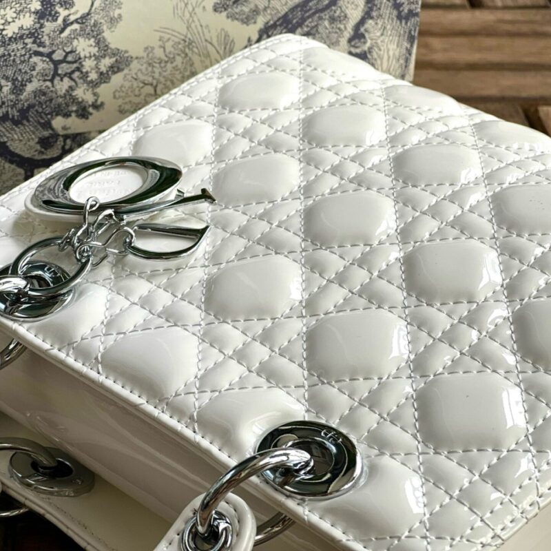 TÚI XÁCH DIOR LADY NGUYÊN BẢN MEDIUM SIZE 24 DA BÓNG TAG BẠC