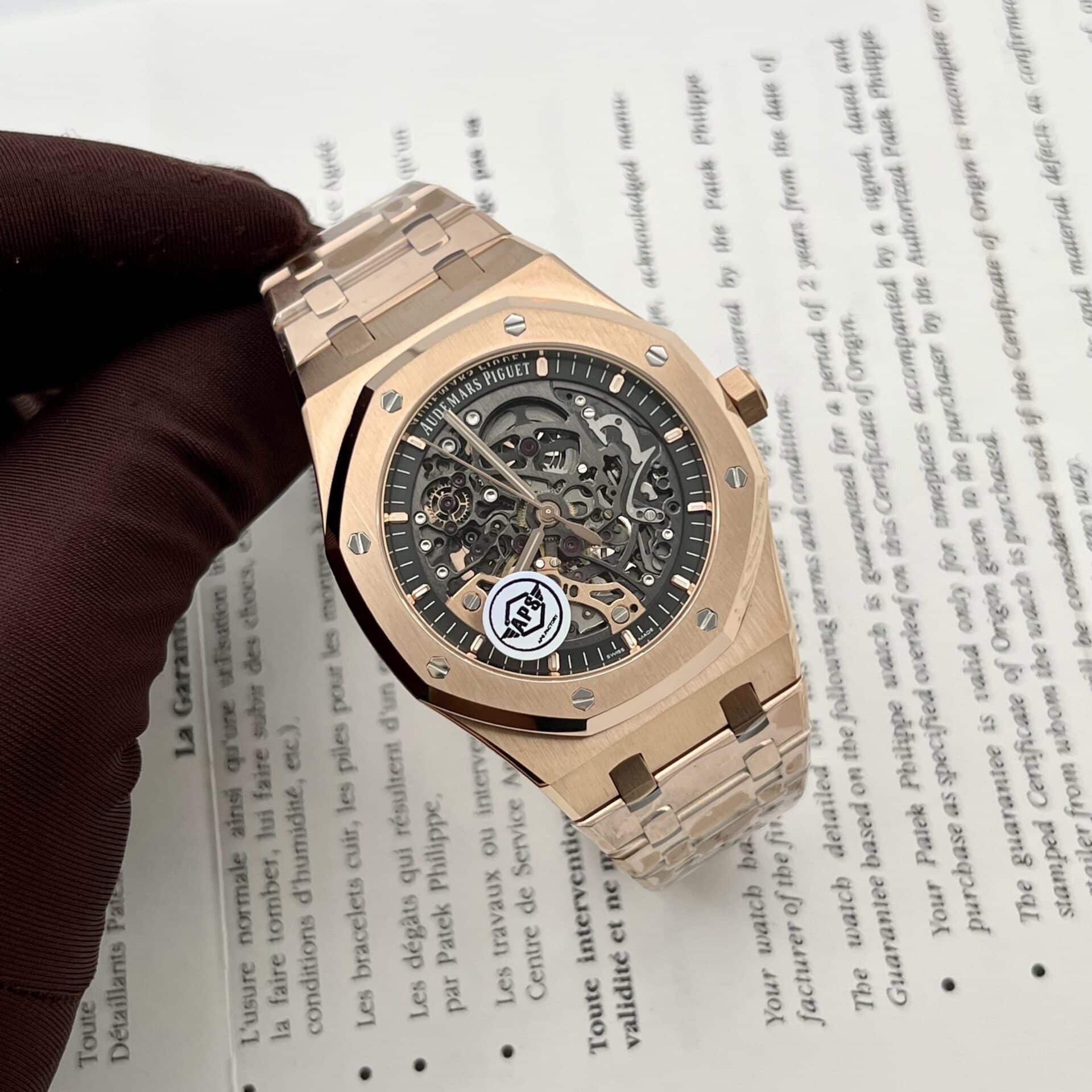 AUDEMARS PIGUET ROYAL OAK 15407OR ROSE GOLD OPENWORKED BEST REPLICA 41MM