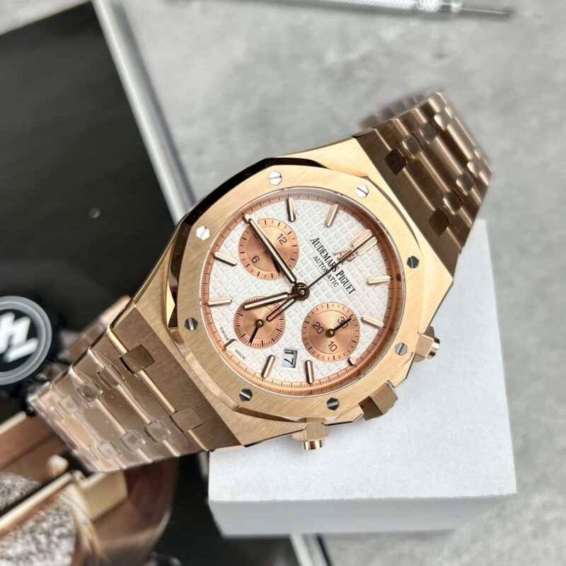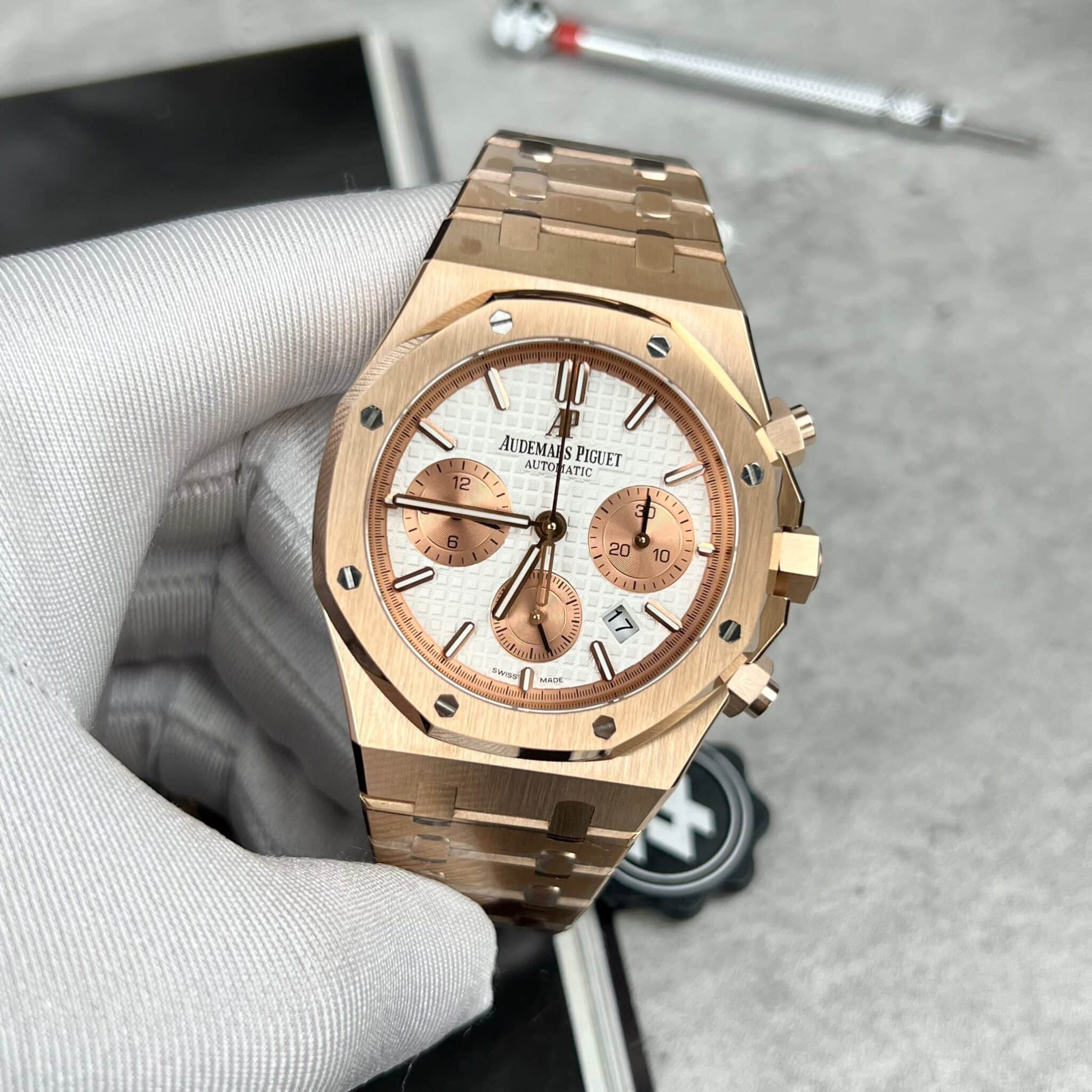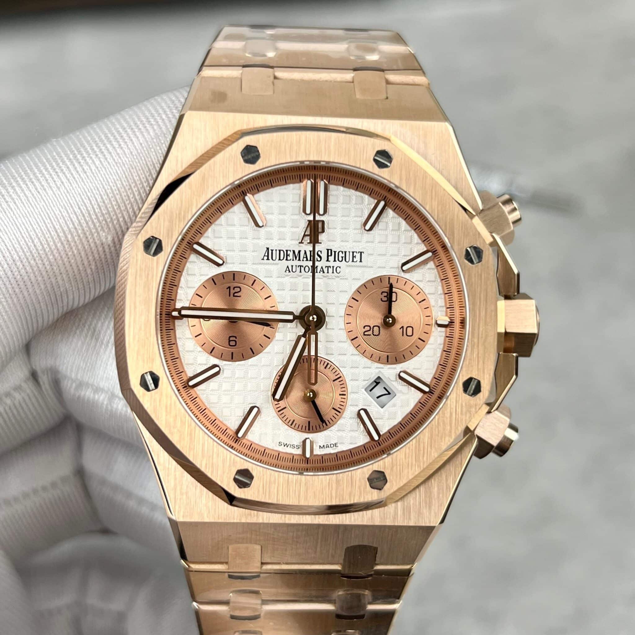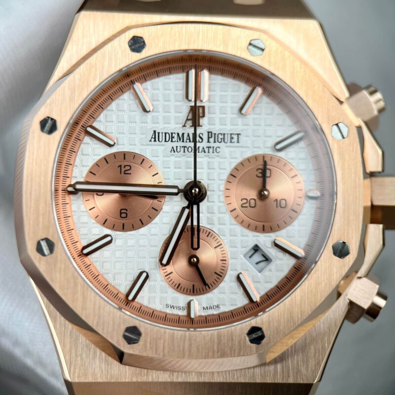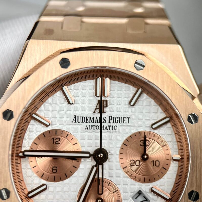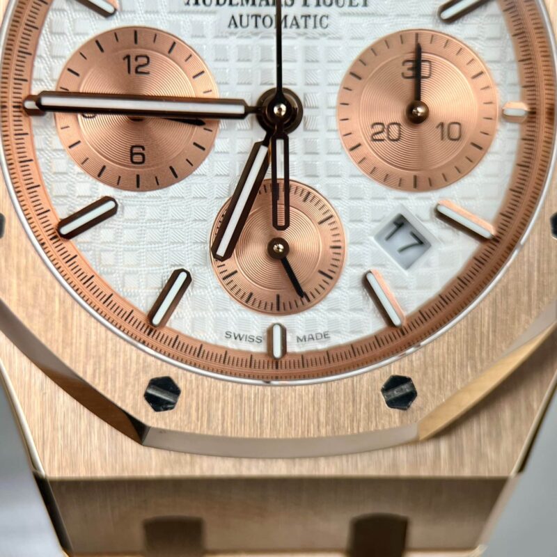 Beautiful Watch World is pleased to introduce the Audemars Piguet Royal Oak 26331OR chronograph rose gold replica watch, featuring a white dial.