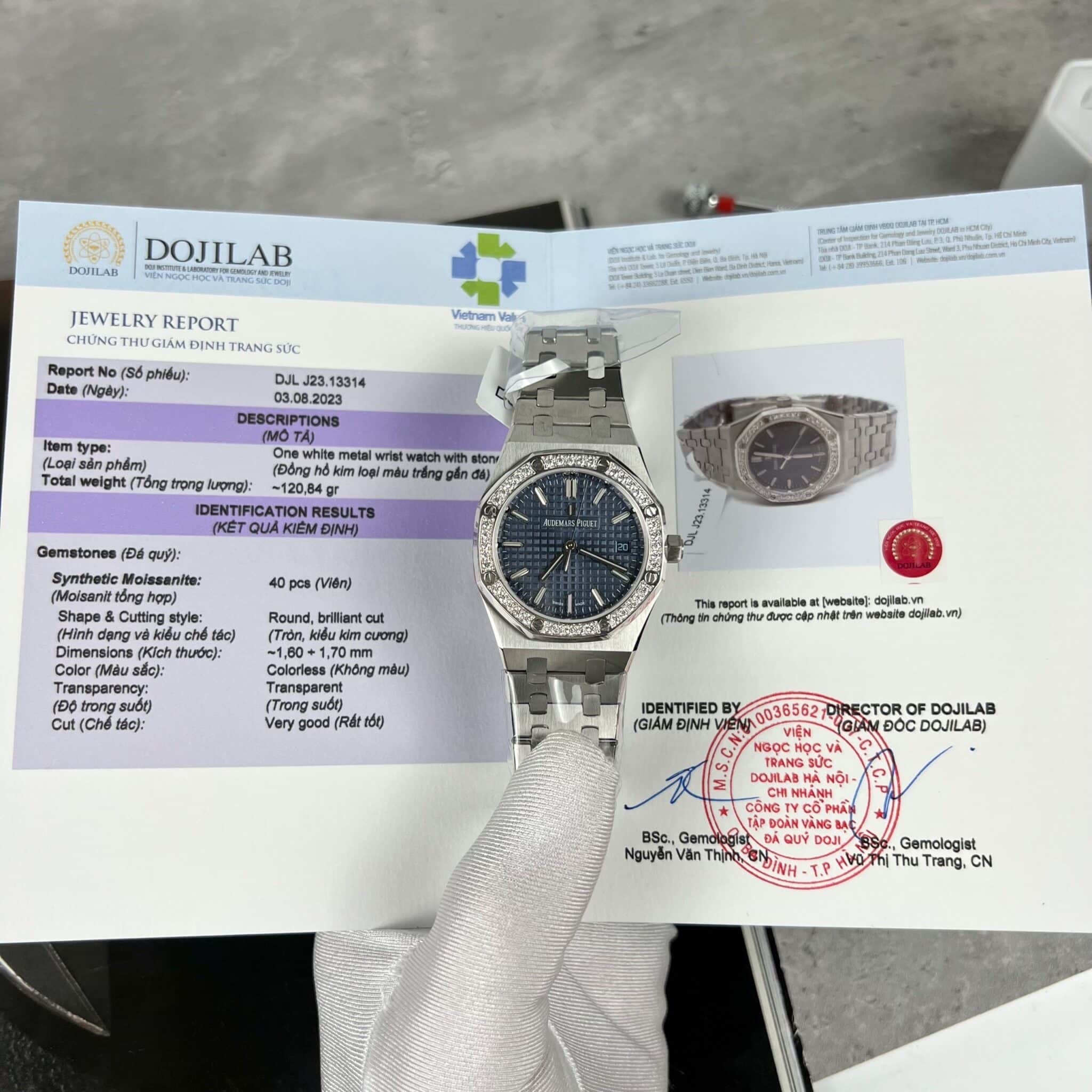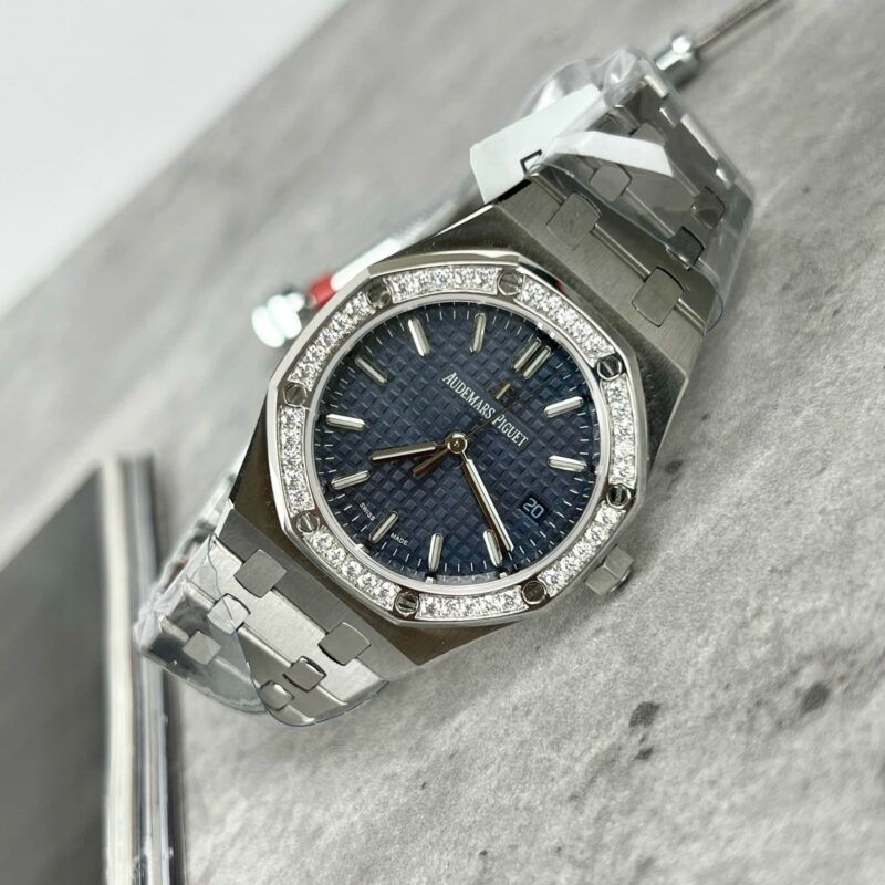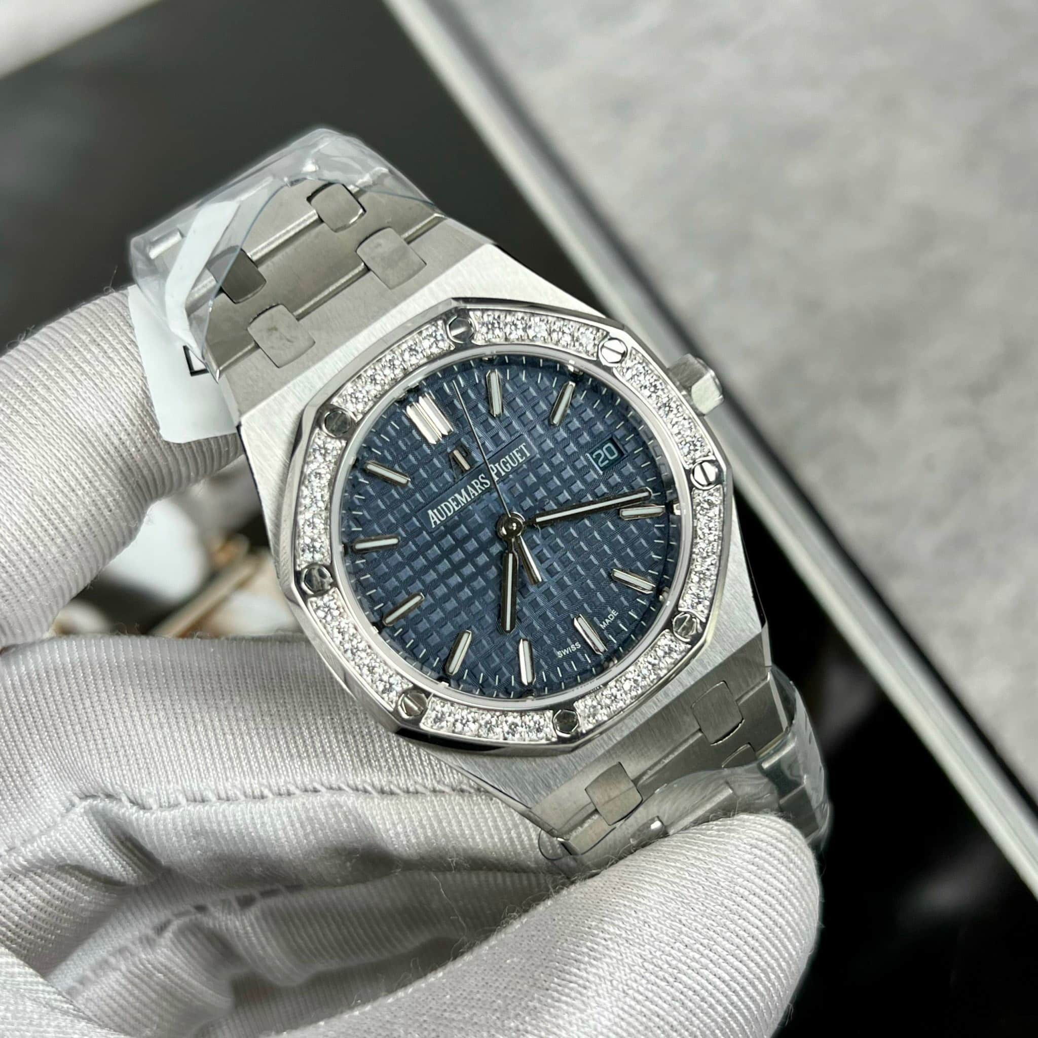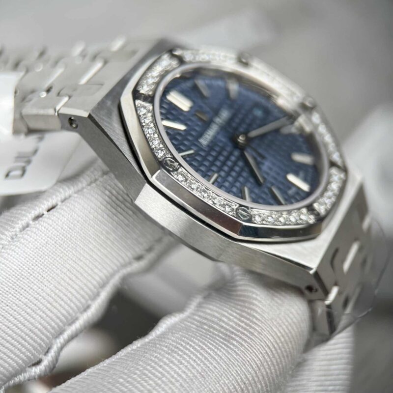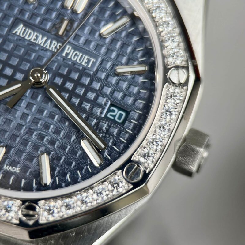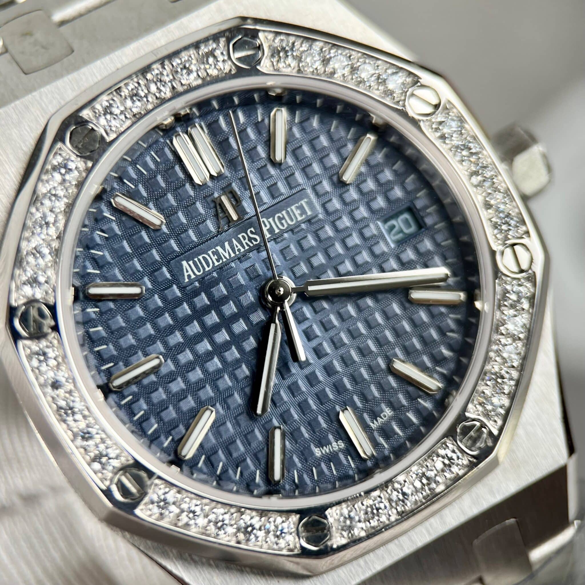 AUDEMARS PIGUET ROYAL OAK 77351ST BLUE DIAL CUSTOM MOISSANITE BEZEL BEST REPLICA 34MM