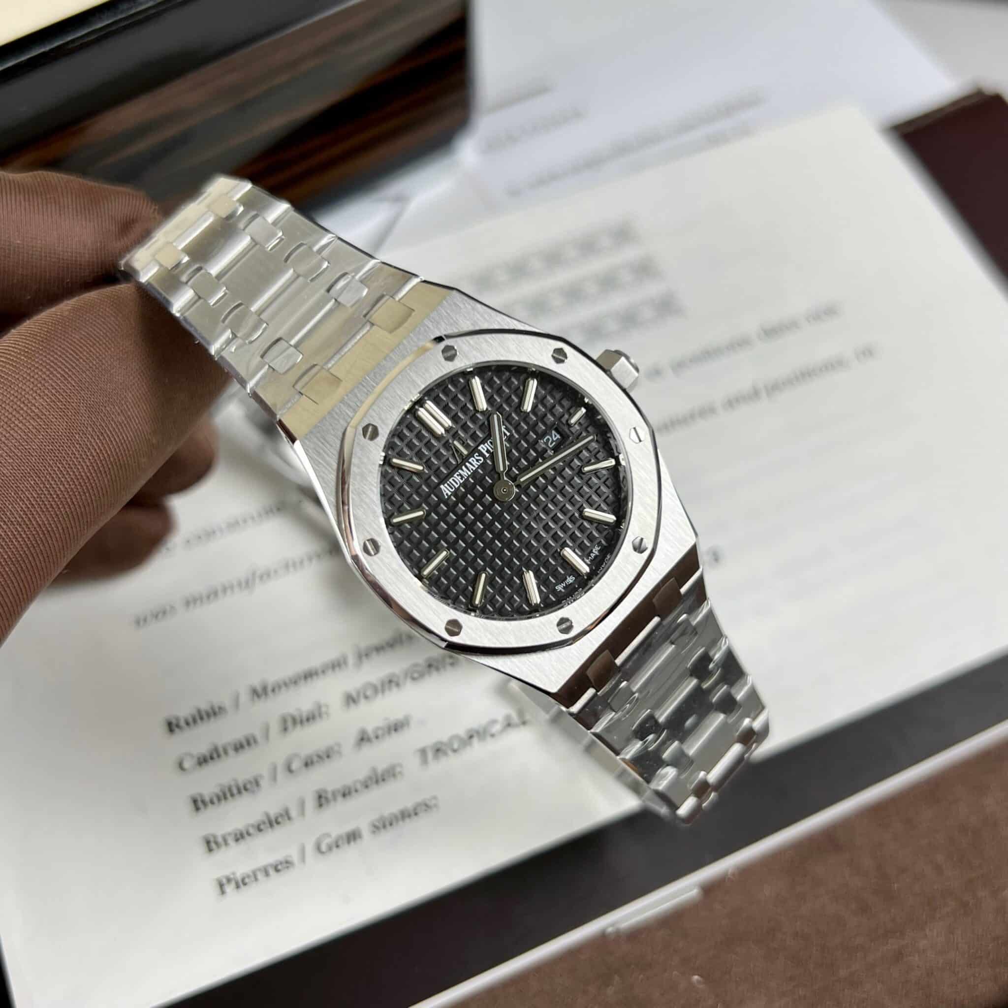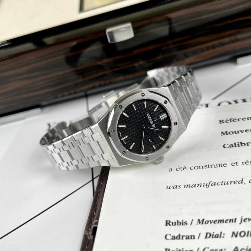 AUDEMARS PIGUET ROYAL OAK LADY BLACK DIAL SWISS QUARTZ REPLICA 33MM