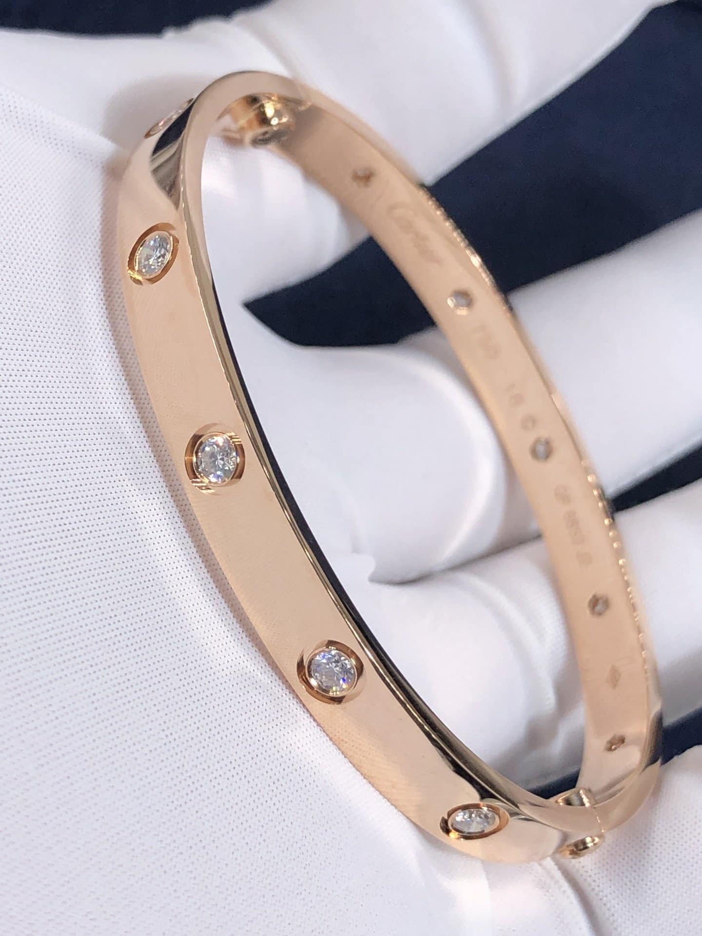 Cartier Love Bracelet 10 Diamonds Custom Made 18K Rose Gold