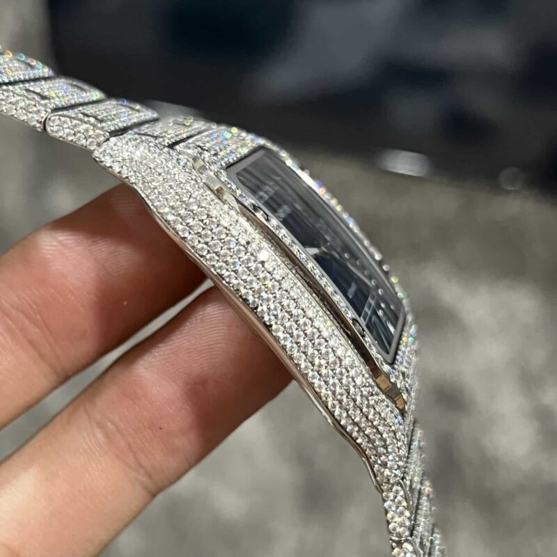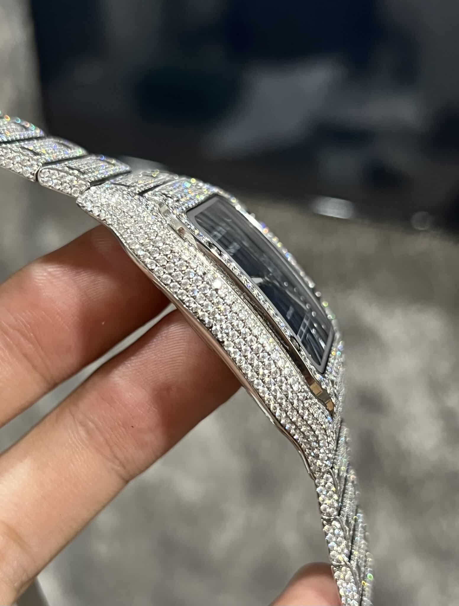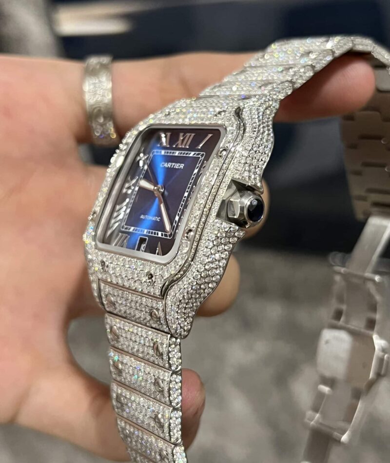 CARTIER SANTOS BLUE DIAL CUSTOM FULL MOISSANITE BEST REPLICA 39.8MM