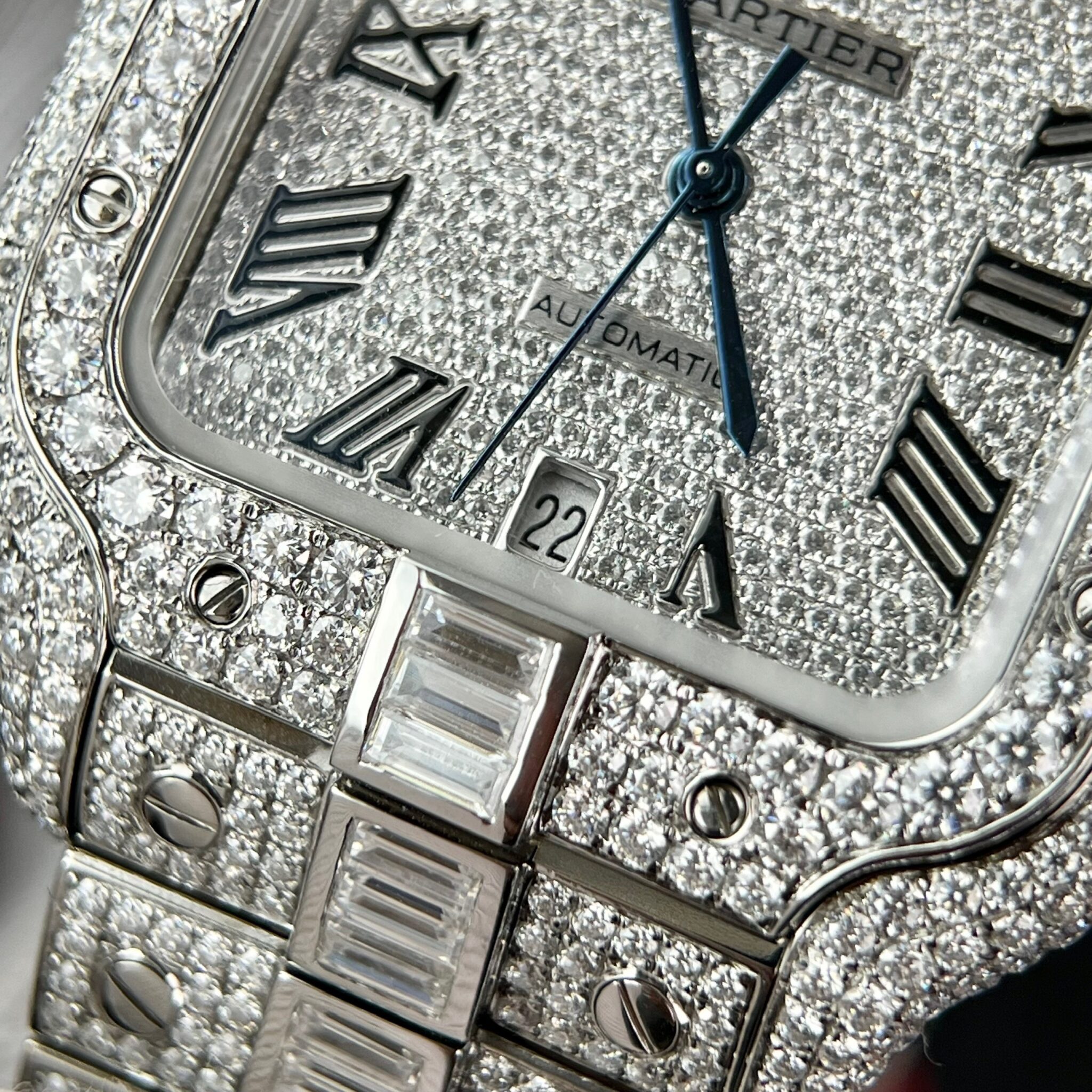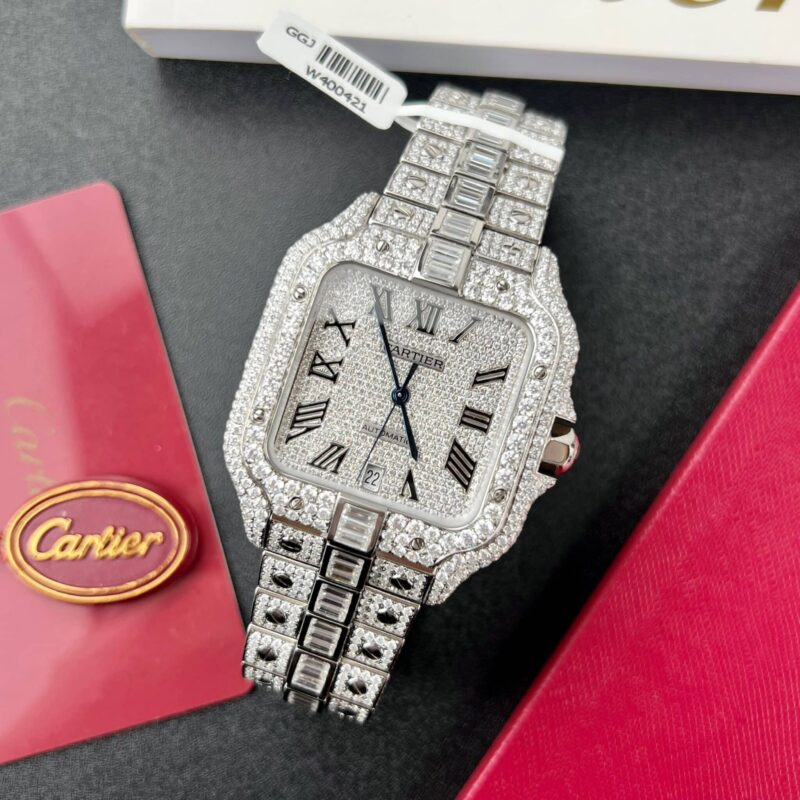 CARTIER SANTOS CUSTOM FULL MOISSANITE DIAMONDS 39.8MM