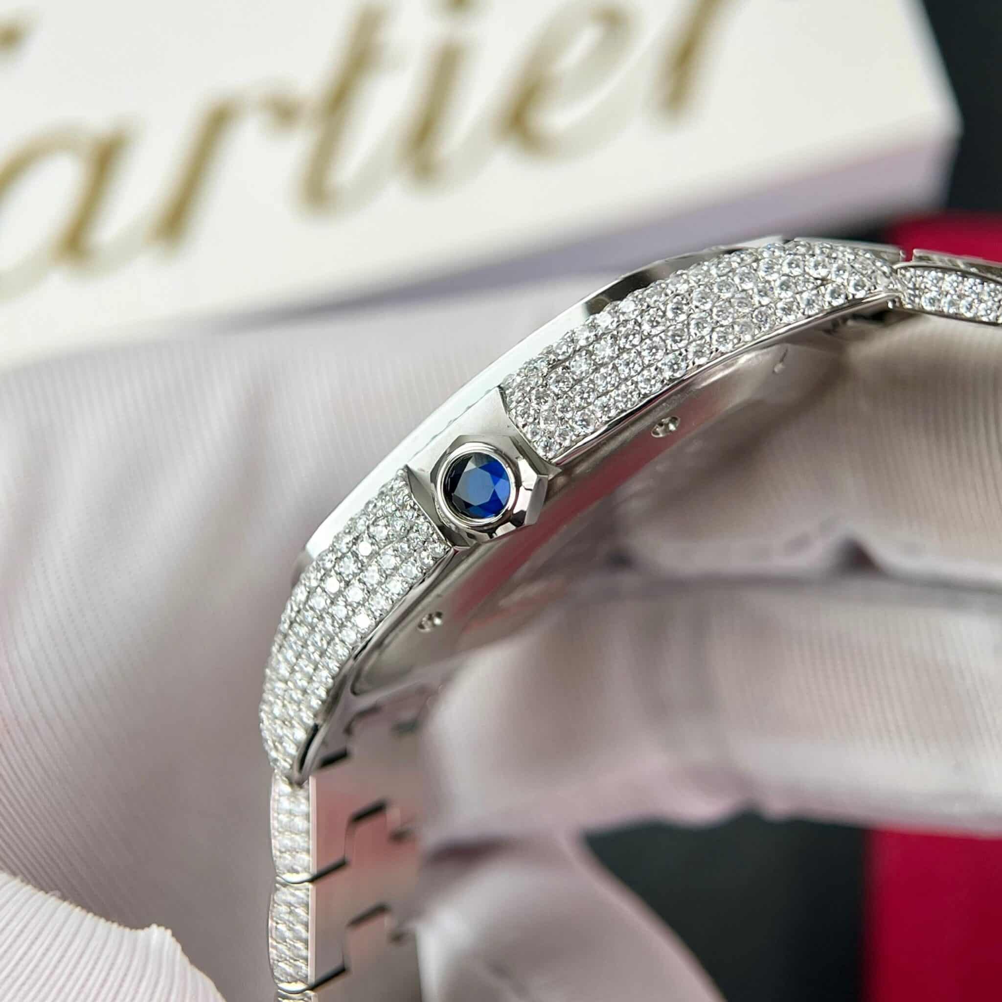 Introducing the Cartier Santos de Cartier Custom Full Moissanite 39.8mm, this is the best high-end replica Cartier Santos watch available in the market.