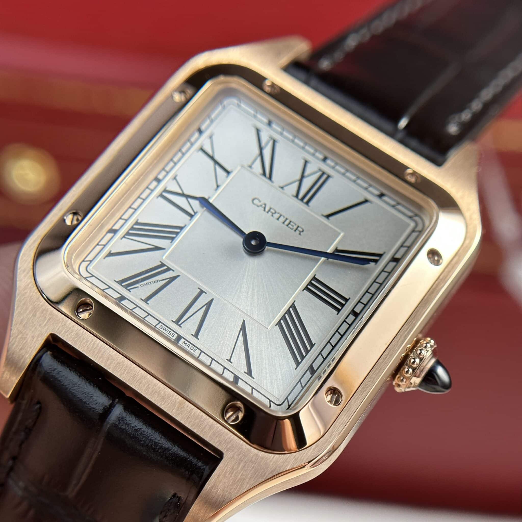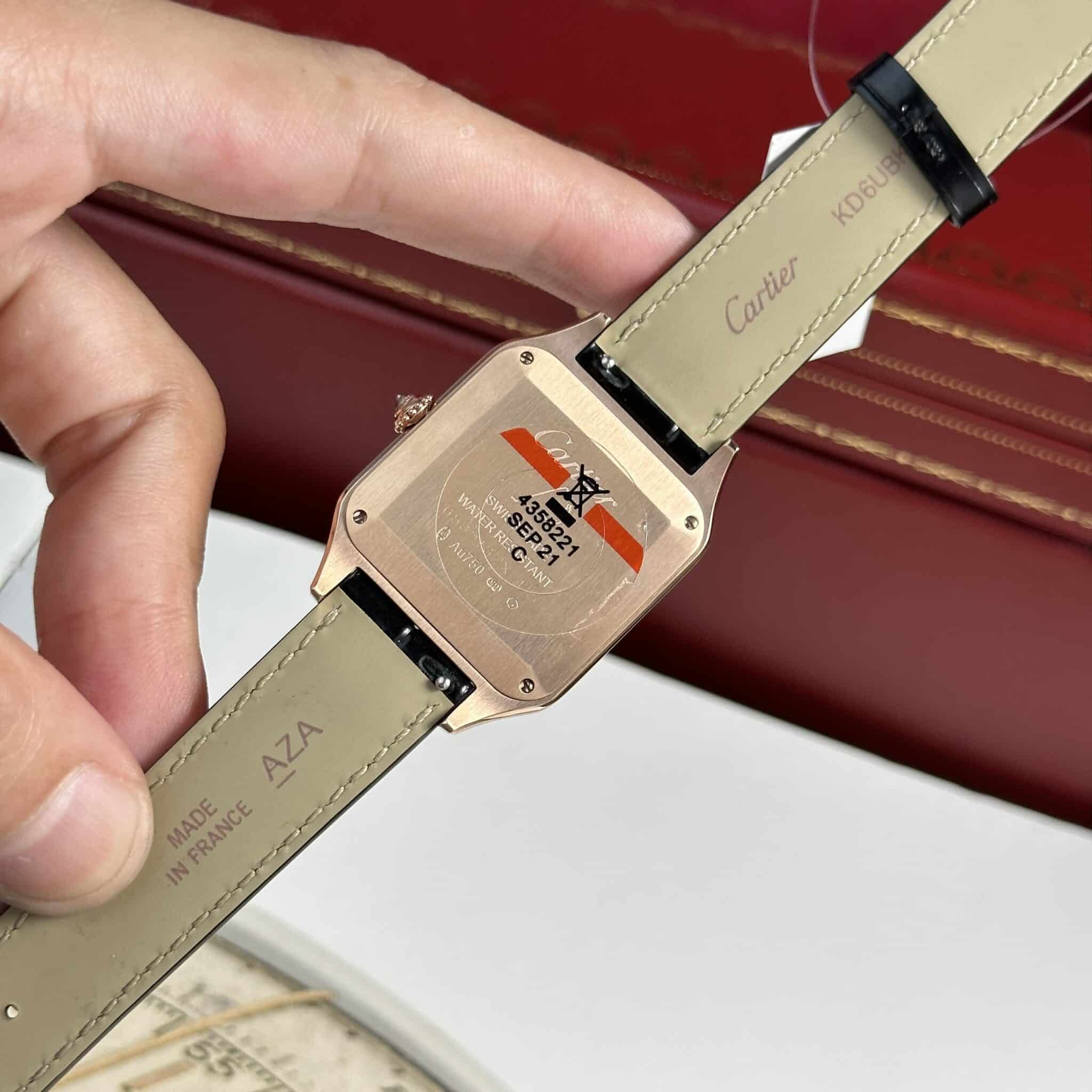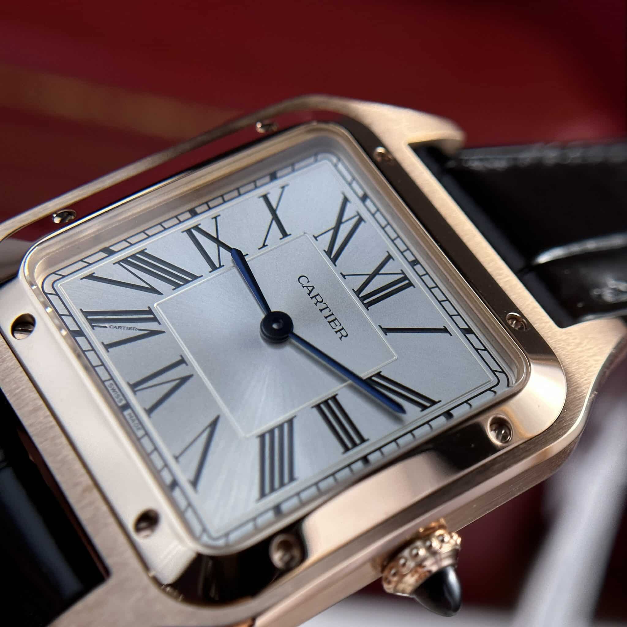 DETAILS OF THE CARTIER SANTOS DUMONT WGSA0021 ROSE GOLD SILVER DIAL LARGE MODEL REPLICA 43.5 x 31.4MM