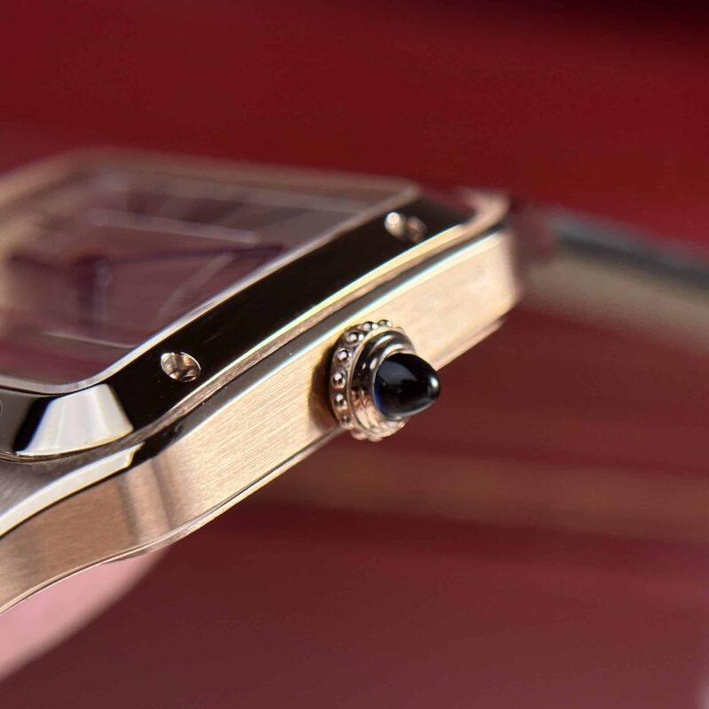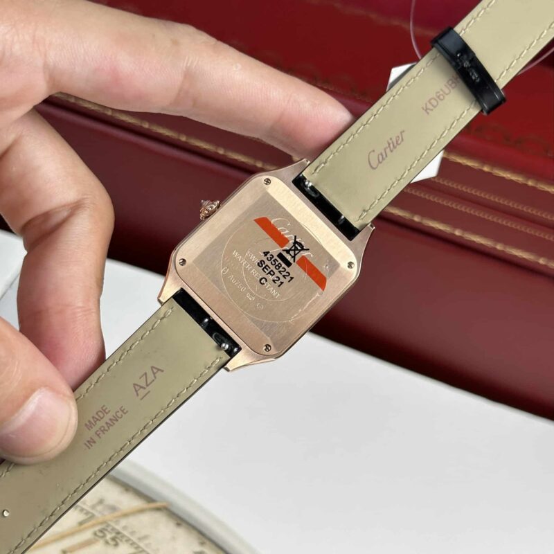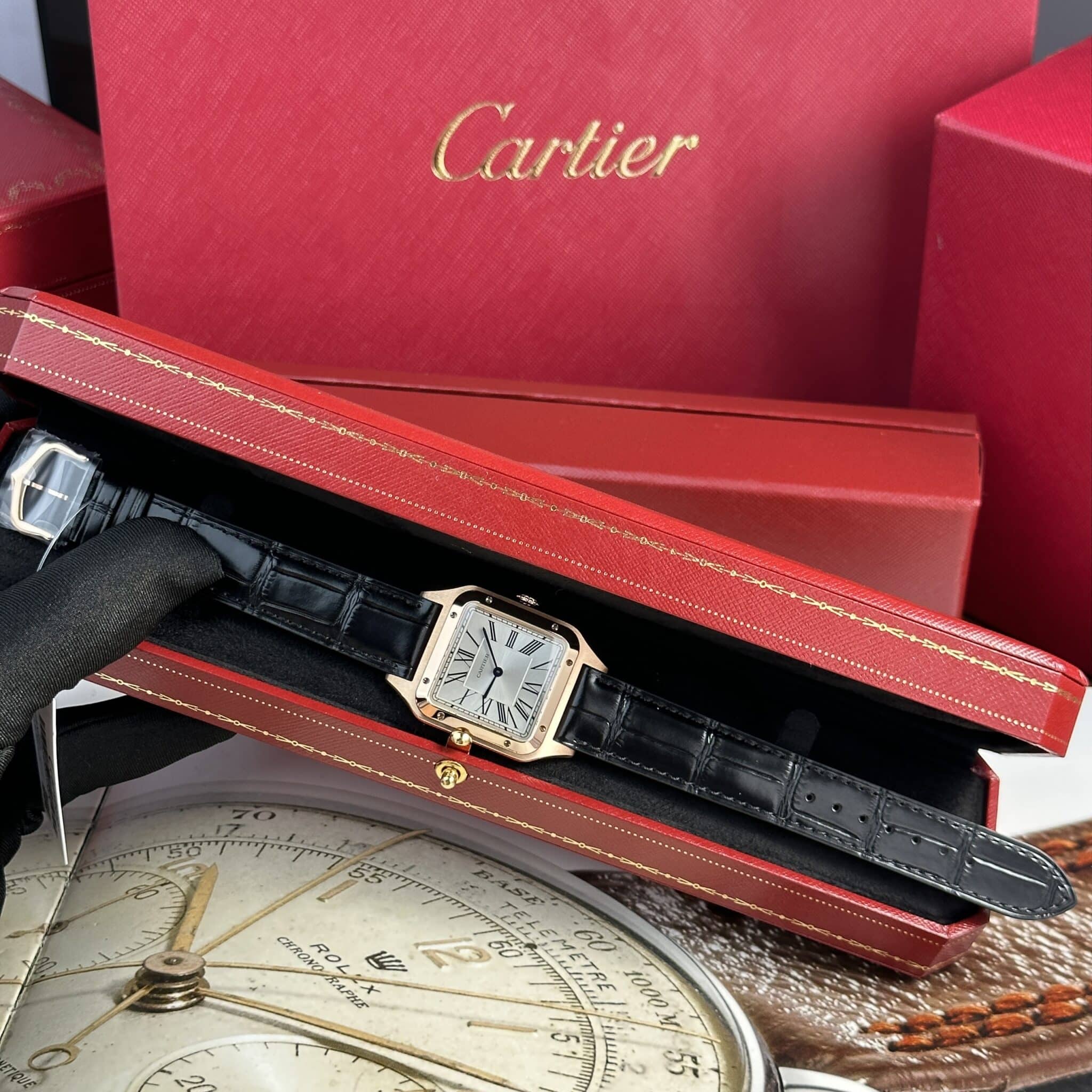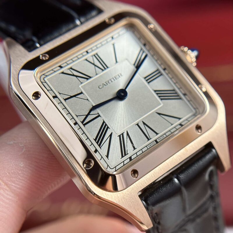 DETAILS OF THE CARTIER SANTOS DUMONT WGSA0021 ROSE GOLD SILVER DIAL LARGE MODEL REPLICA 43.5 x 31.4MM