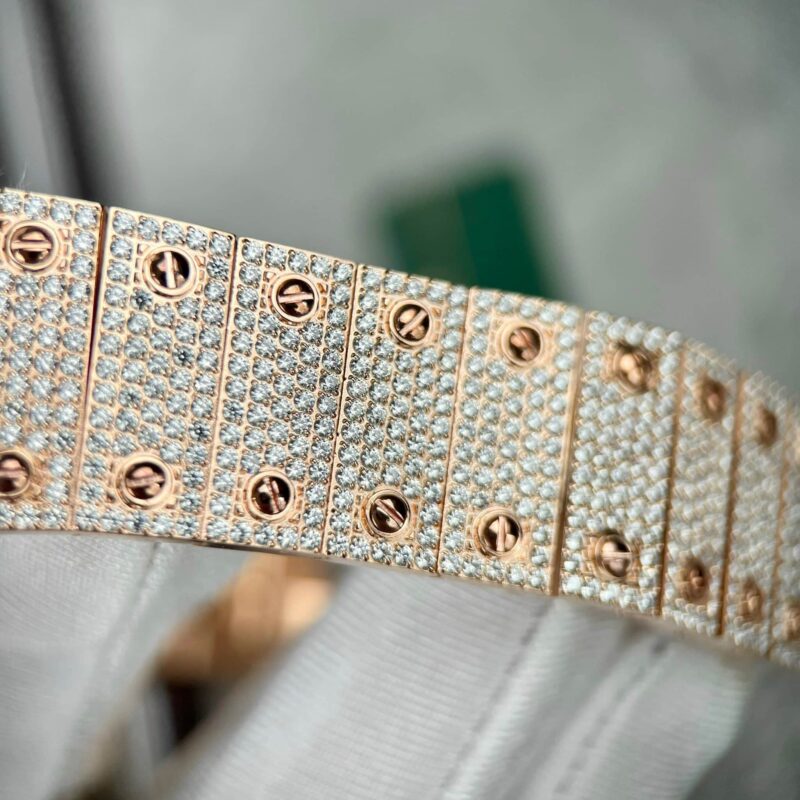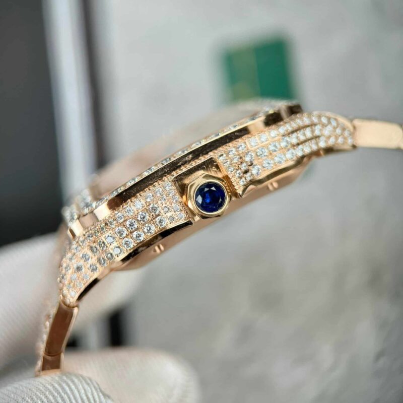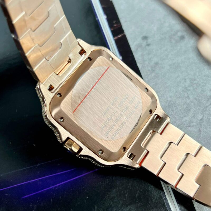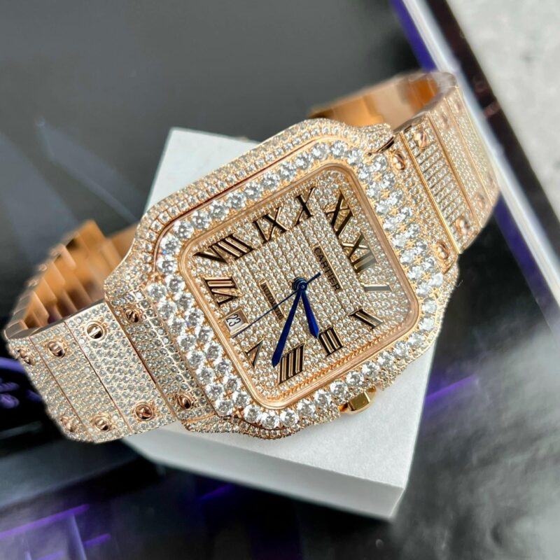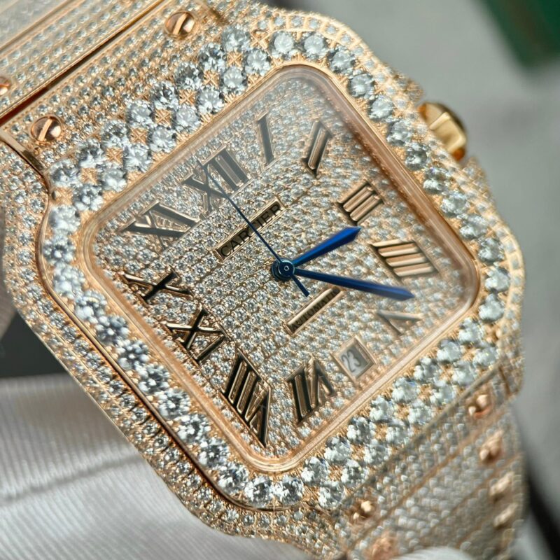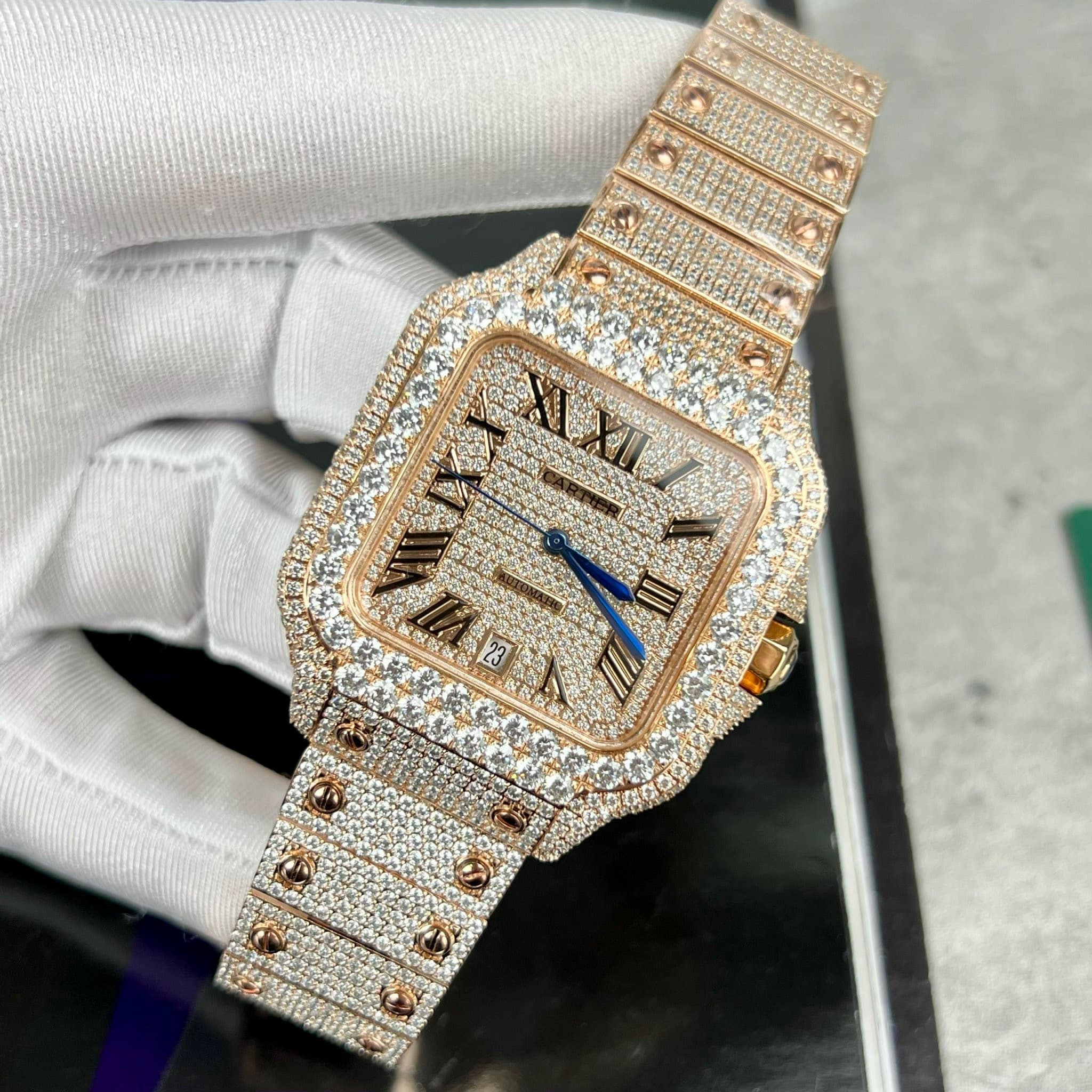 CARTIER SANTOS ROSE GOLD CUSTOM FULL STONE REPLICA 39.8MM