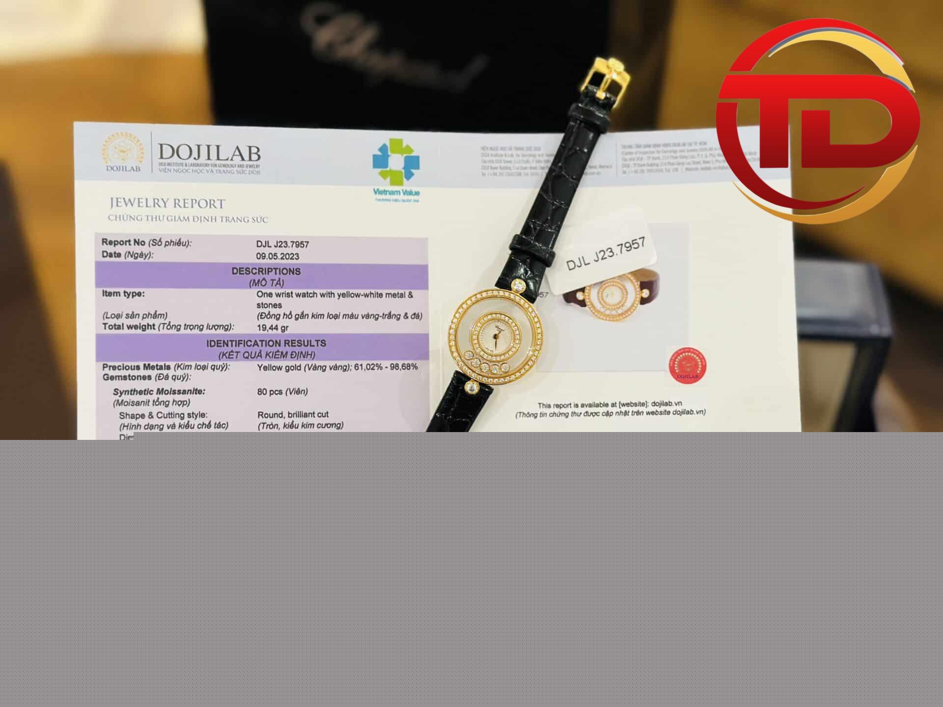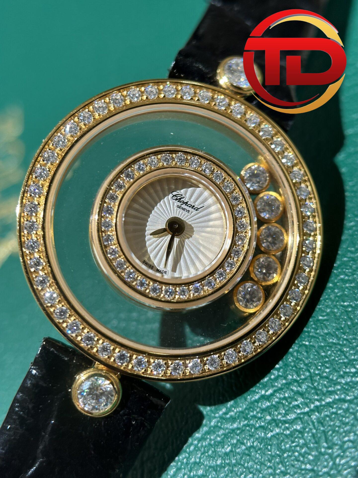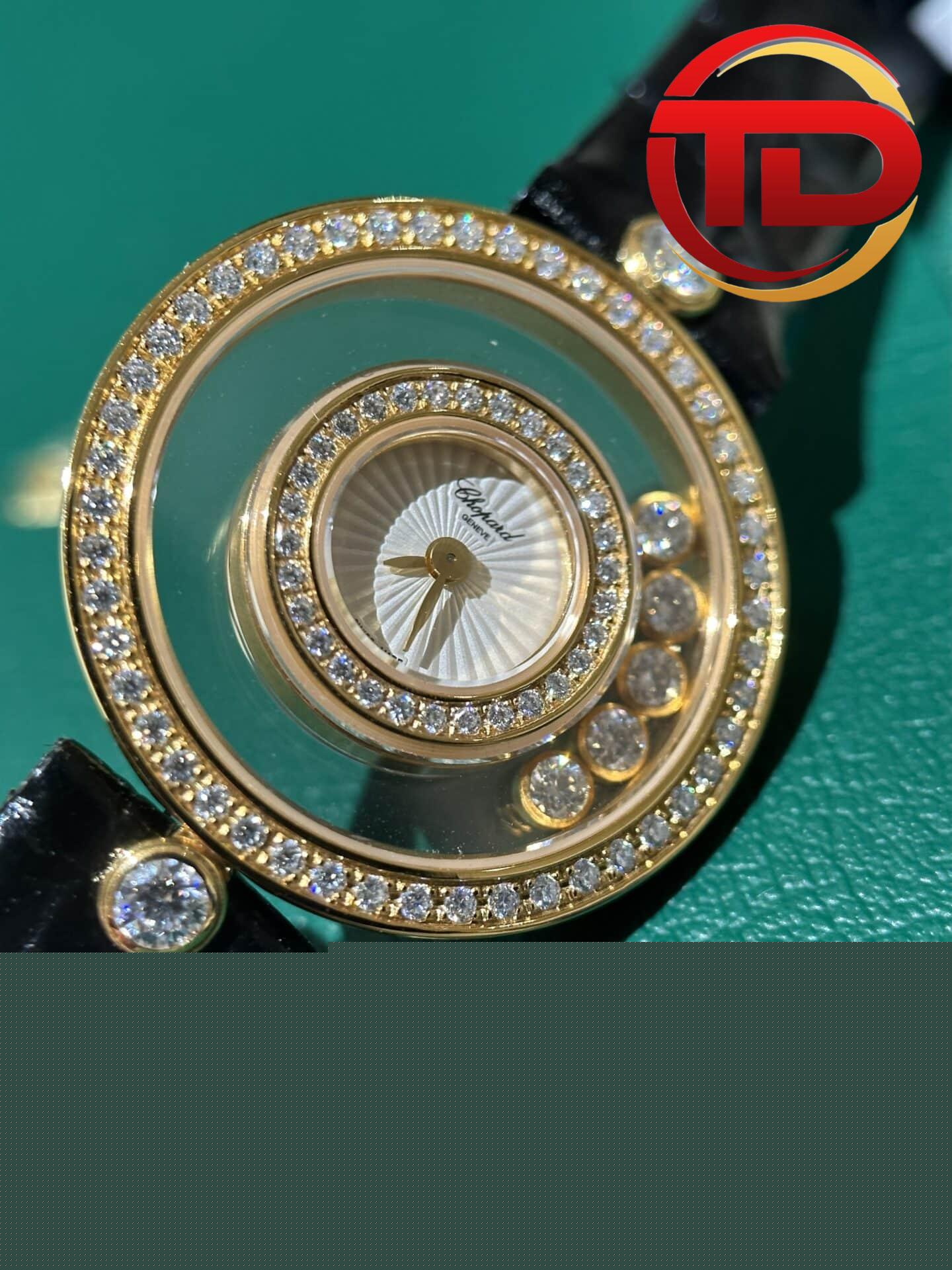 ĐỒNG HỒ CHOPARD HAPPY DIAMONDS BỌC VÀNG KIM CƯƠNG MOISSANITE 33MM