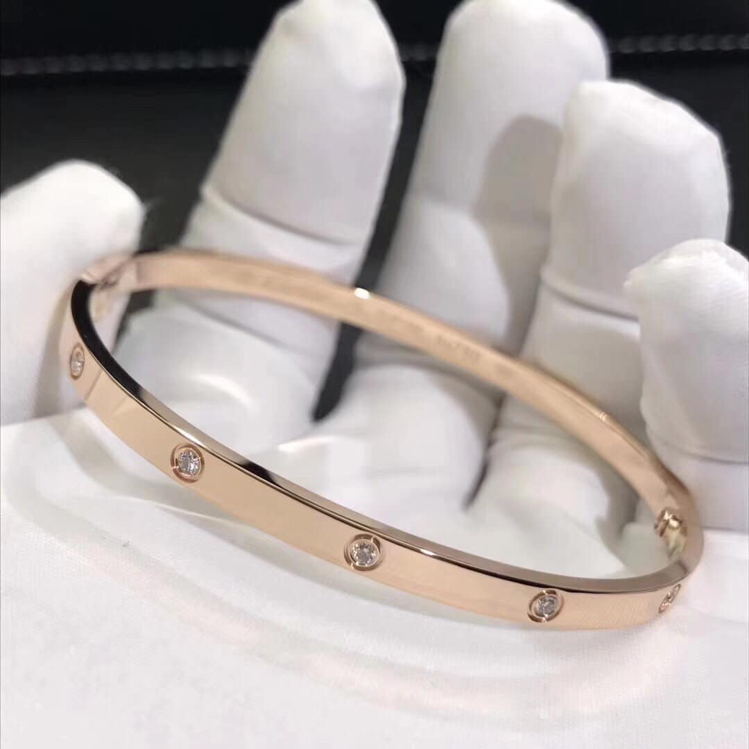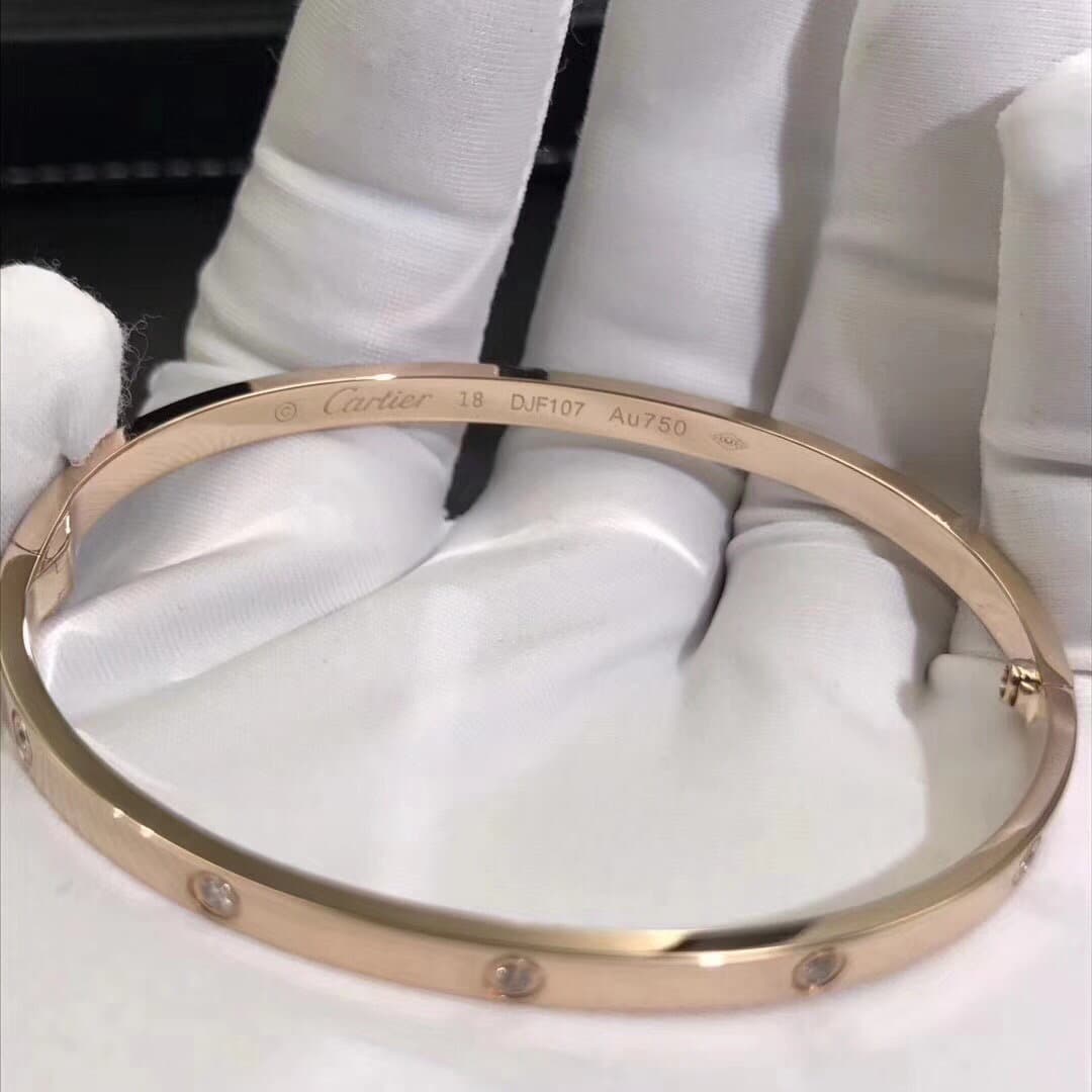 Custom Made Cartier Love Bracelet 18K Rose Gold 10 Diamonds Small Model