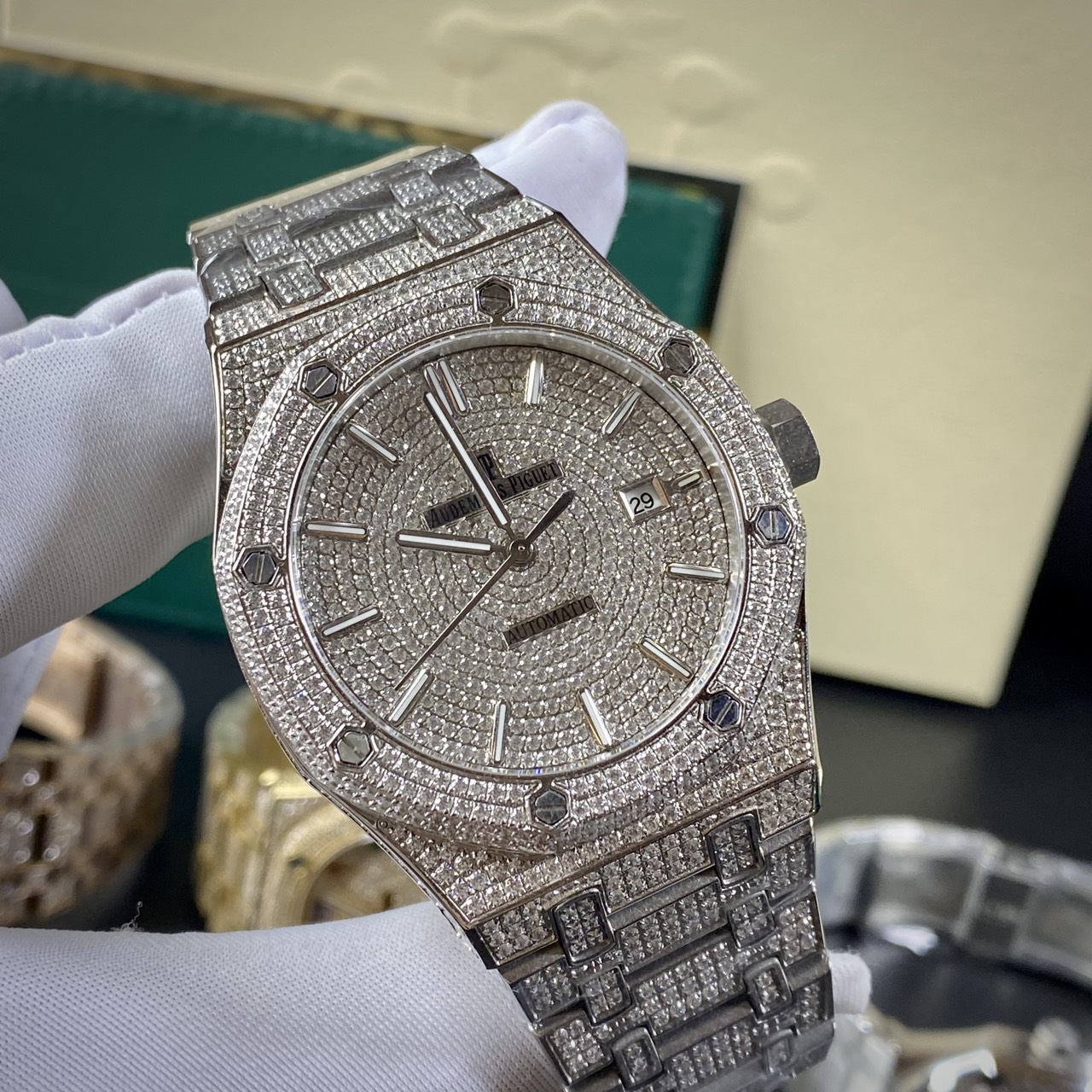 CHI TIẾT ĐỒNG HỒ AUDEMARS PIGUET REPLICA 11 THỤY SỸ ĐÍNH FULL ĐÁ NAM 41MM TẠI THẾ GIỚI ĐỒNG HỒ ĐẸP