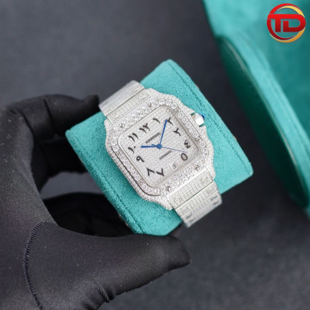 ĐỒNG HỒ CARTIER REP 11 SANTOS ĐÍNH FULL ĐÁ MÁY THỤY SỸ 40MM
