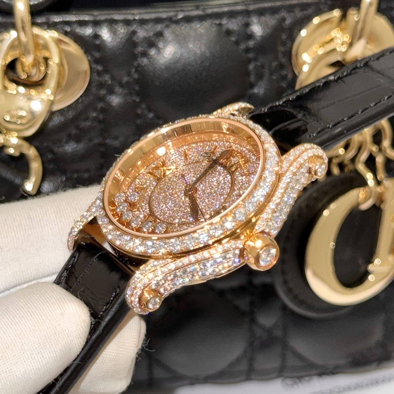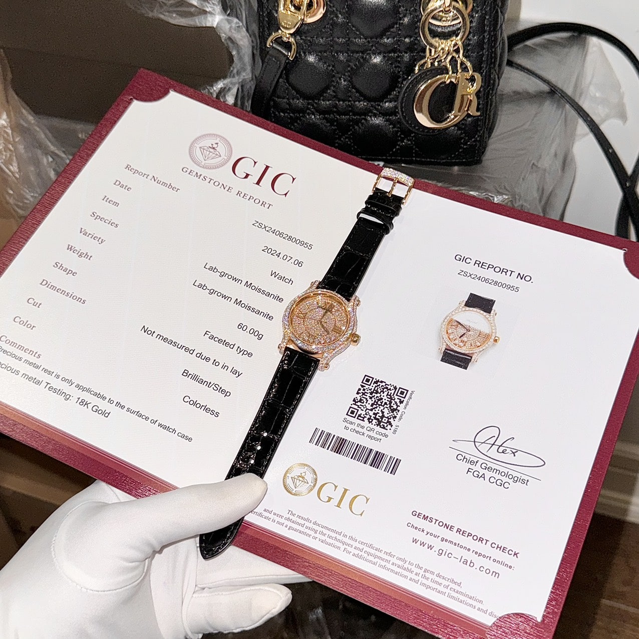 PyGlow giới thiệu chiếc đồng hồ Chopard Happy Sport 274891-5001 bọc vàng 18k độ full moissanite cực kỳ sang trọng và lộng lẫy cho các quý cô.