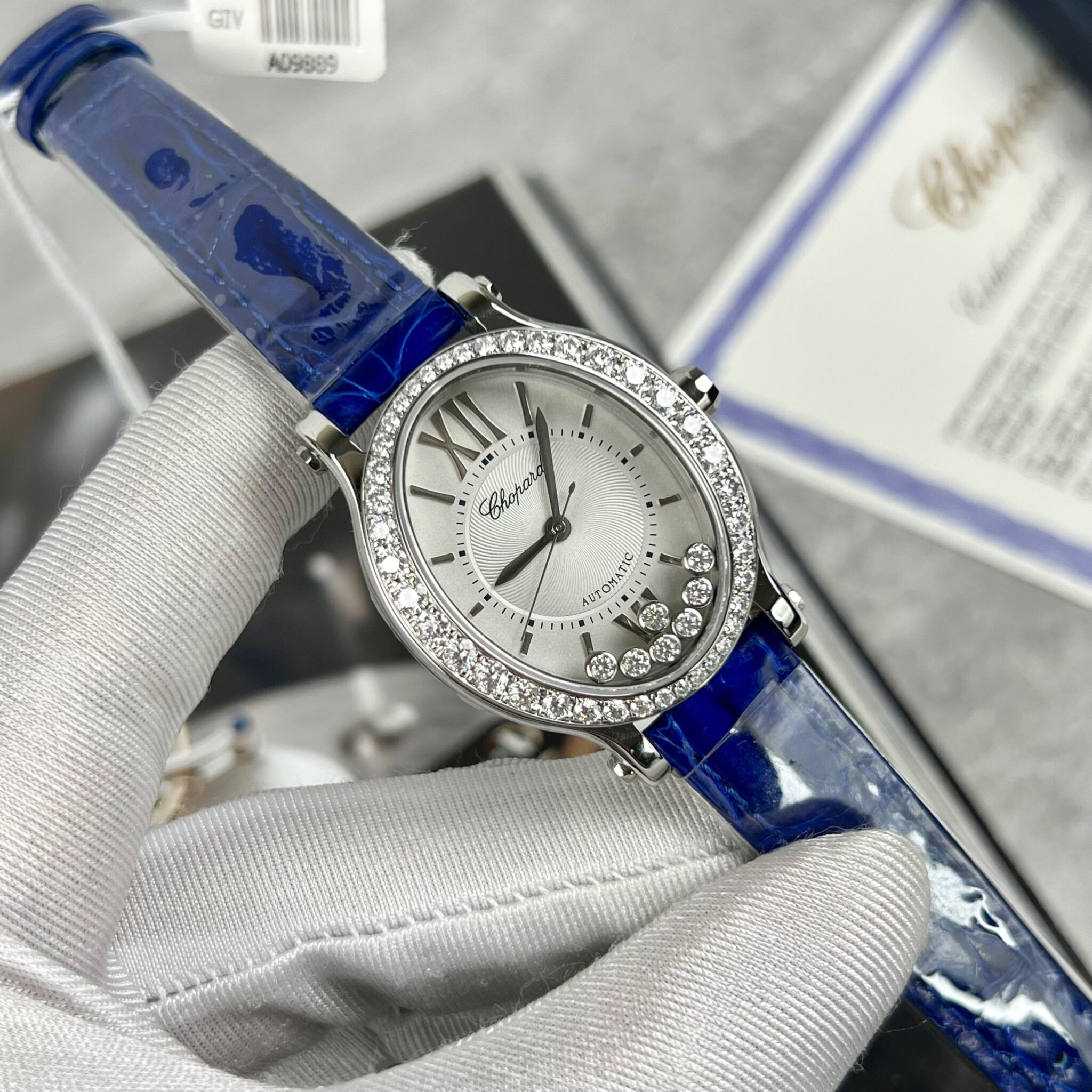 CHI TIẾT ĐỒNG HỒ CHOPARD HAPPY SPORT OVAL ĐÍNH ĐÁ MOISSANITE 29 x 31MM