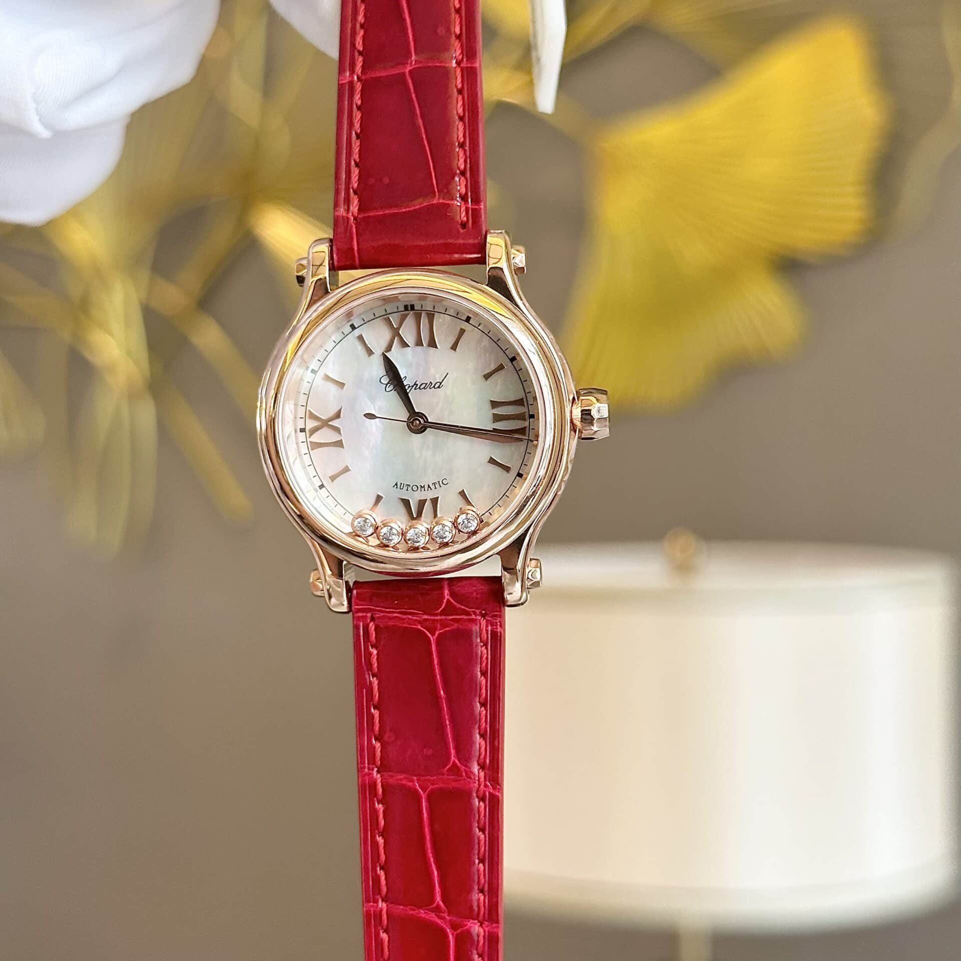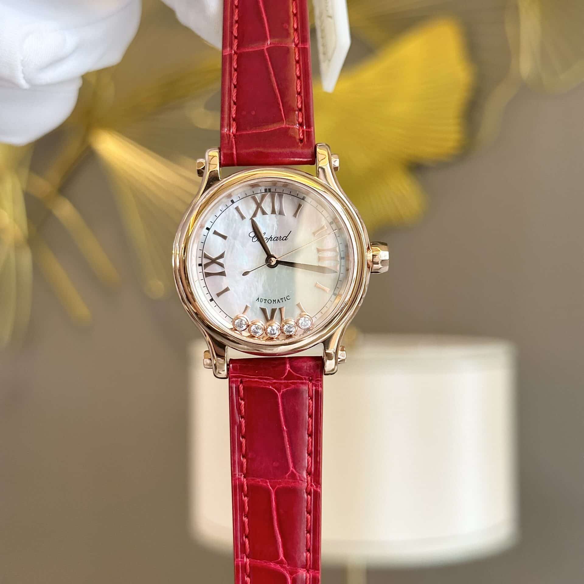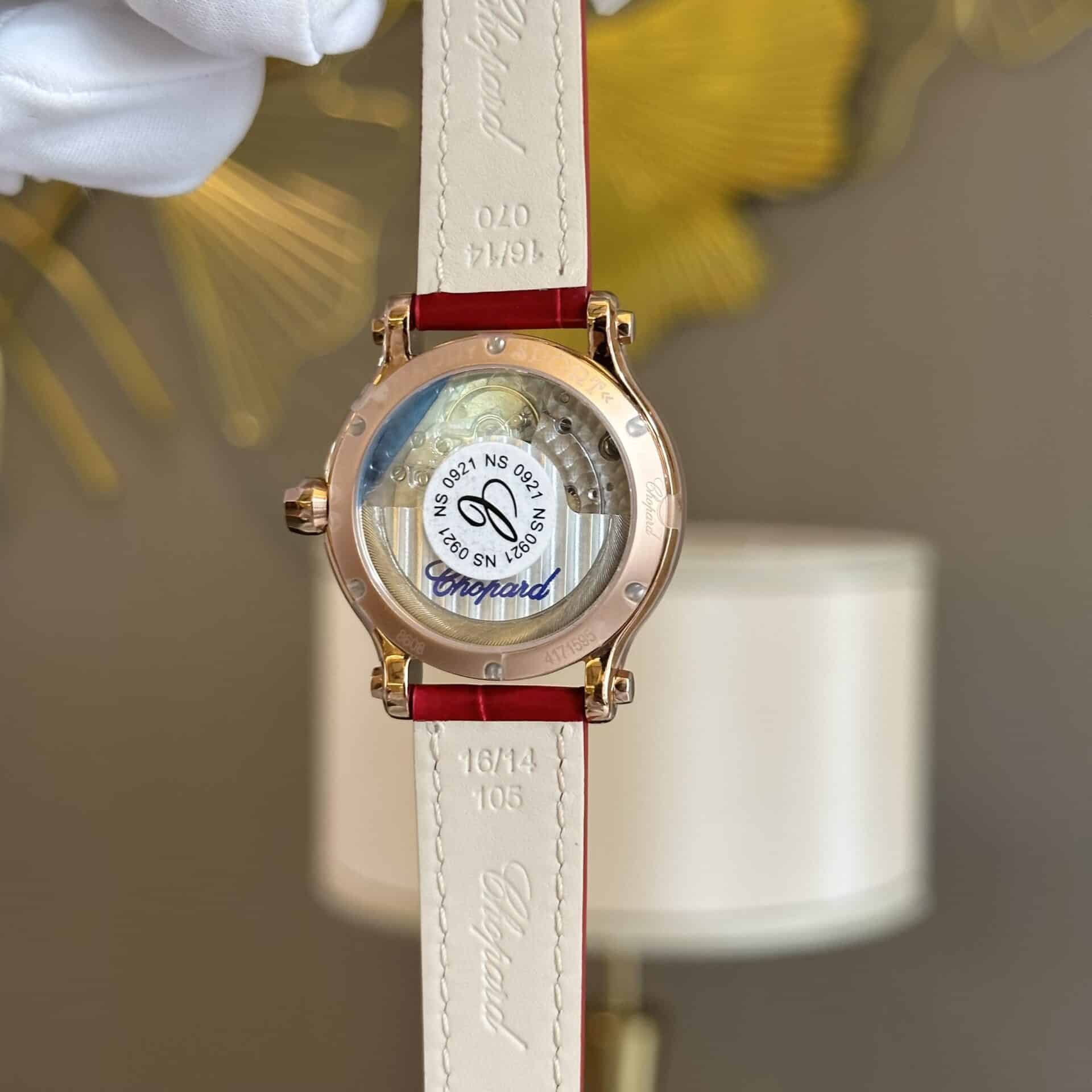 ĐỒNG HỒ CHOPARD HAPPY SPORT VÀNG HỒNG DÂY DA ĐỎ REPLICA 33MM
