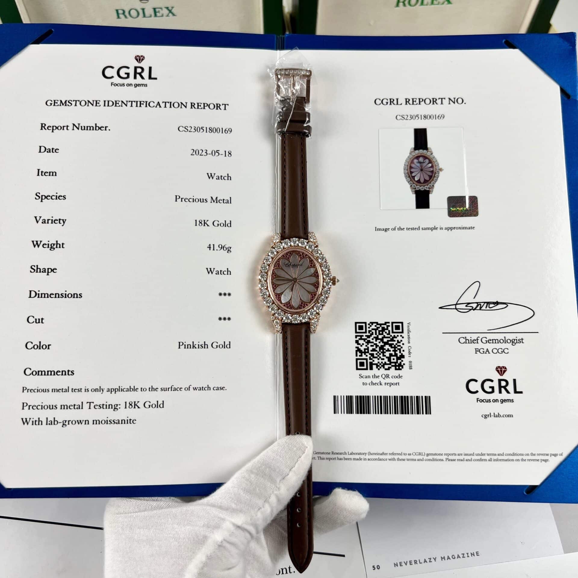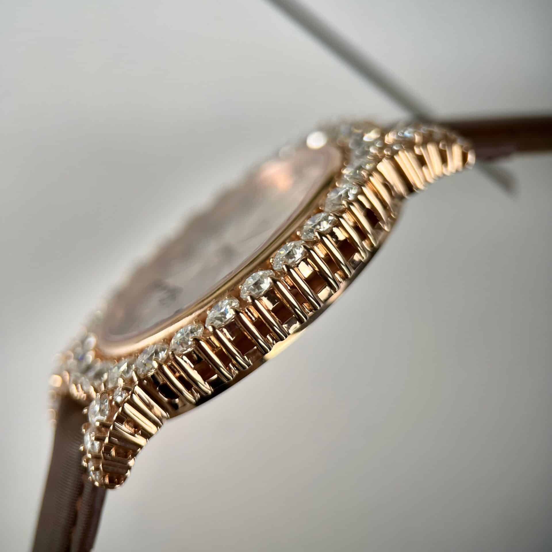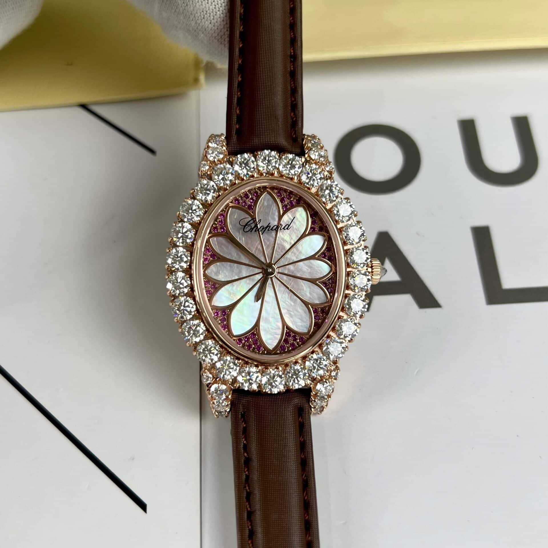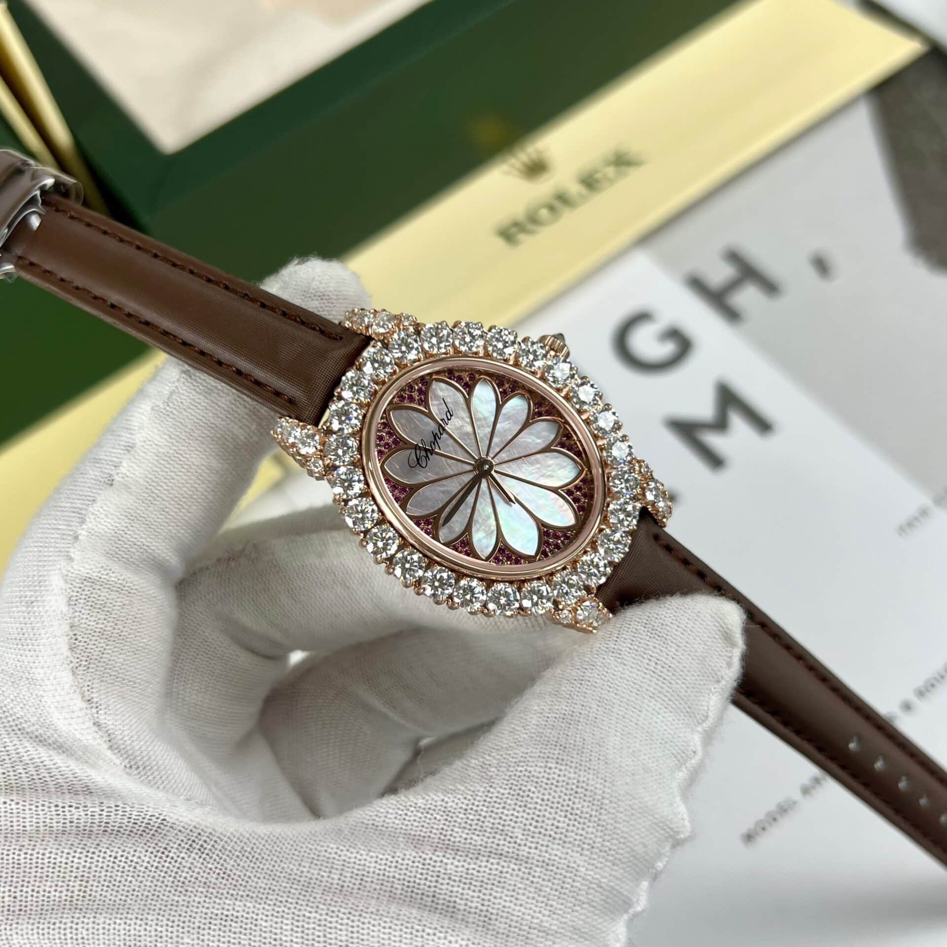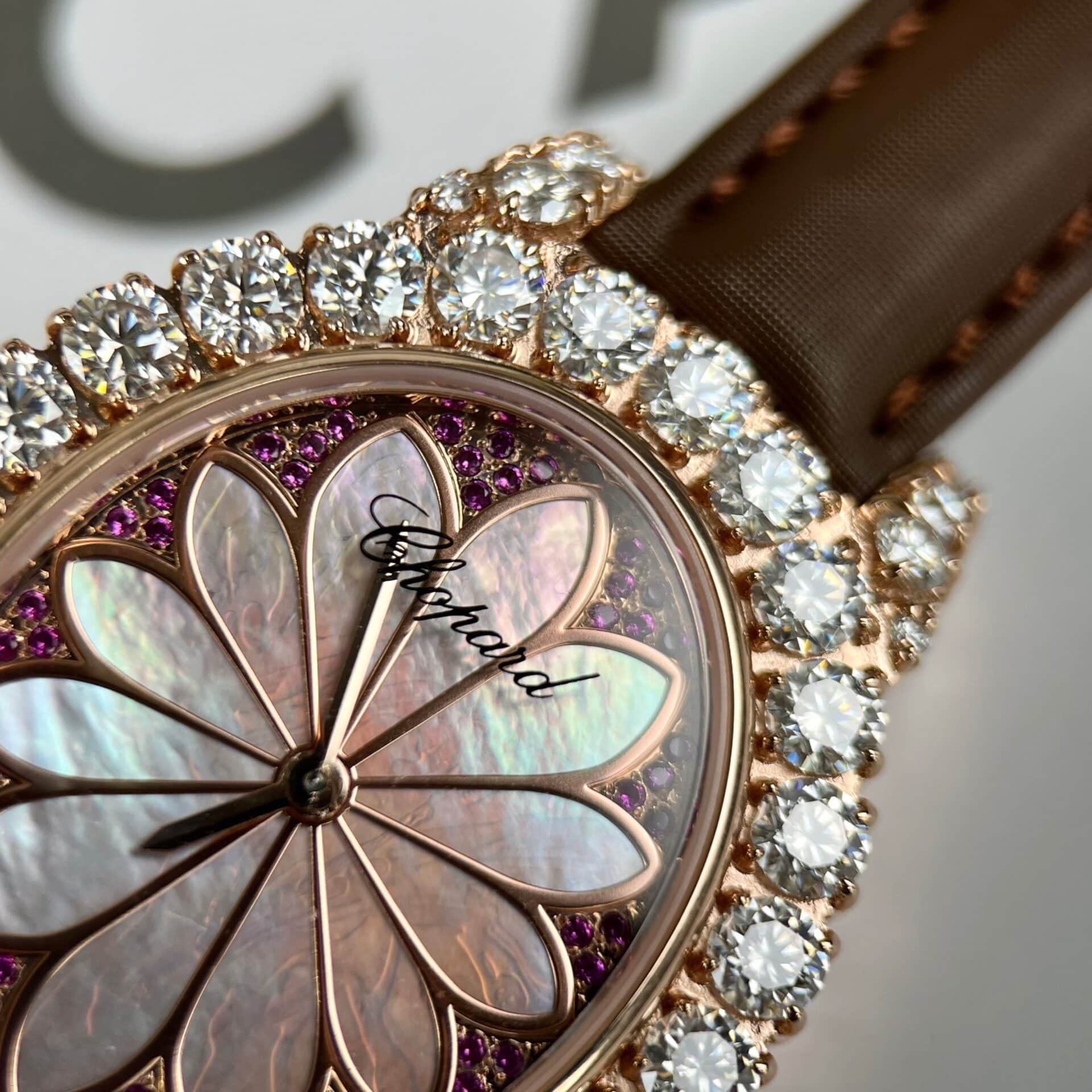 ĐỒNG HỒ CHOPARD L’HEURE 139383 BỌC VÀNG HỒNG ĐÍNH KIM CƯƠNG MOISSANITE 34MM