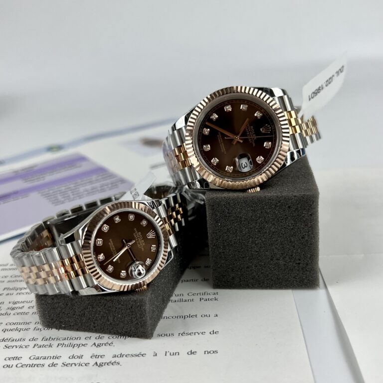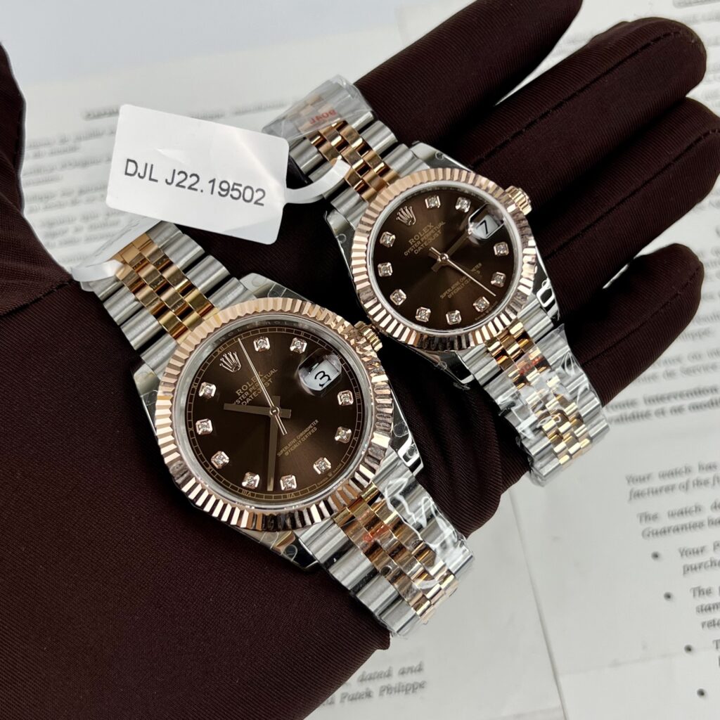 ĐỒNG HỒ ĐÔI ROLEX DATEJUST BỌC VÀNG 18K MẶT SỐ SOCOLA 31-41MM