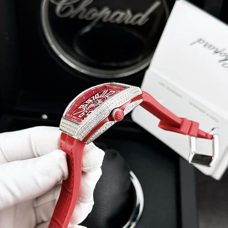 ĐỒNG HỒ FRANCK MULLER V32 NỮ MÀU ĐỎ SUPER FAKE 11 MÁY NHẬT 36MM