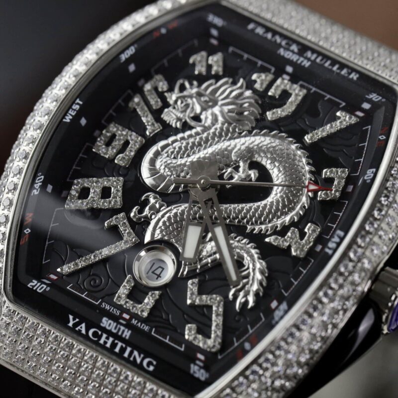 ĐỒNG HỒ FRANCK MULLER V45 DRAGON MẶT ĐEN VỎ ĐÍNH ĐÁ REP 1:1 ABF 45MM