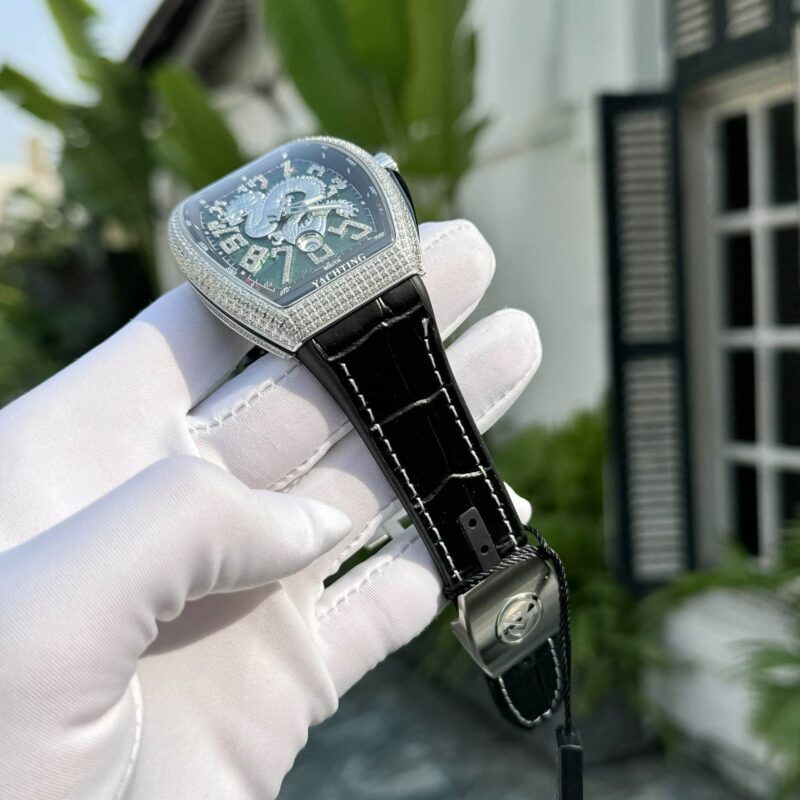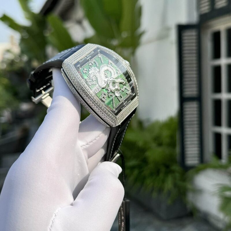 ĐỒNG HỒ FRANCK MULLER V45 DRAGON MẶT XANH LÁ VỎ ĐÍNH ĐÁ REPLICA 45MM