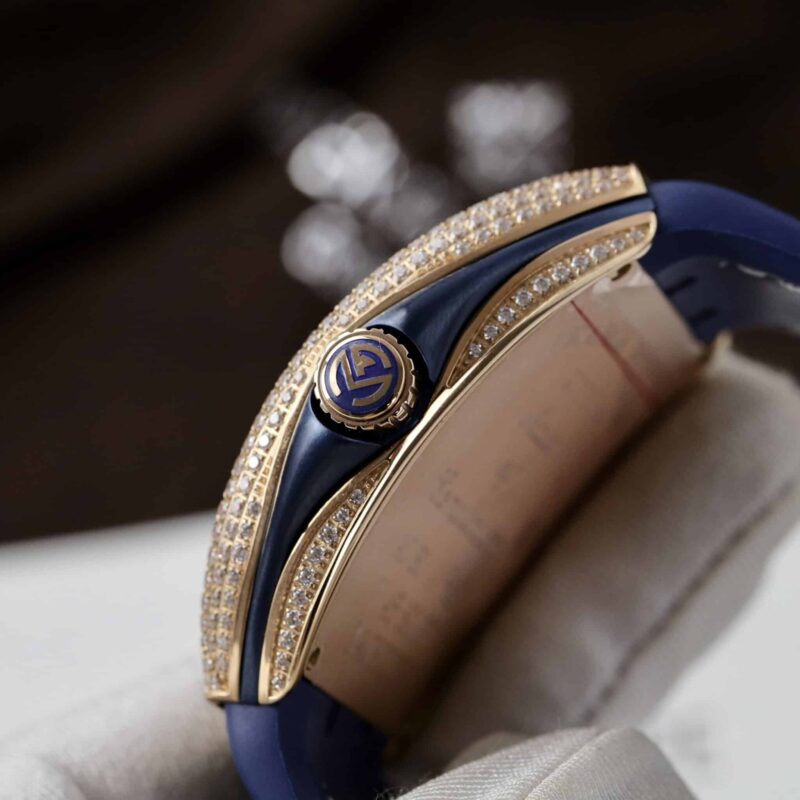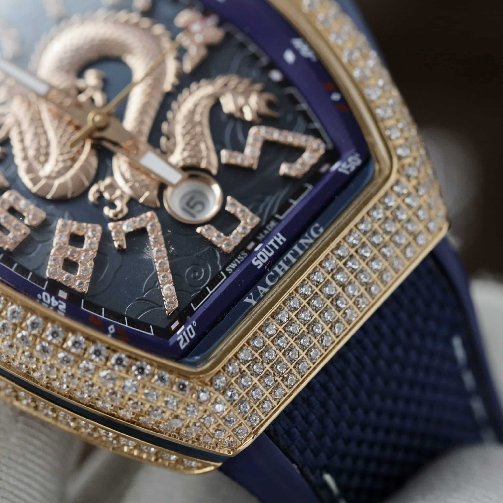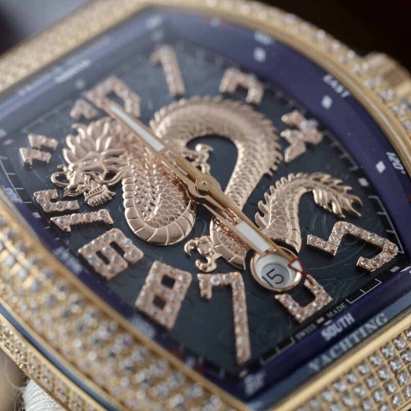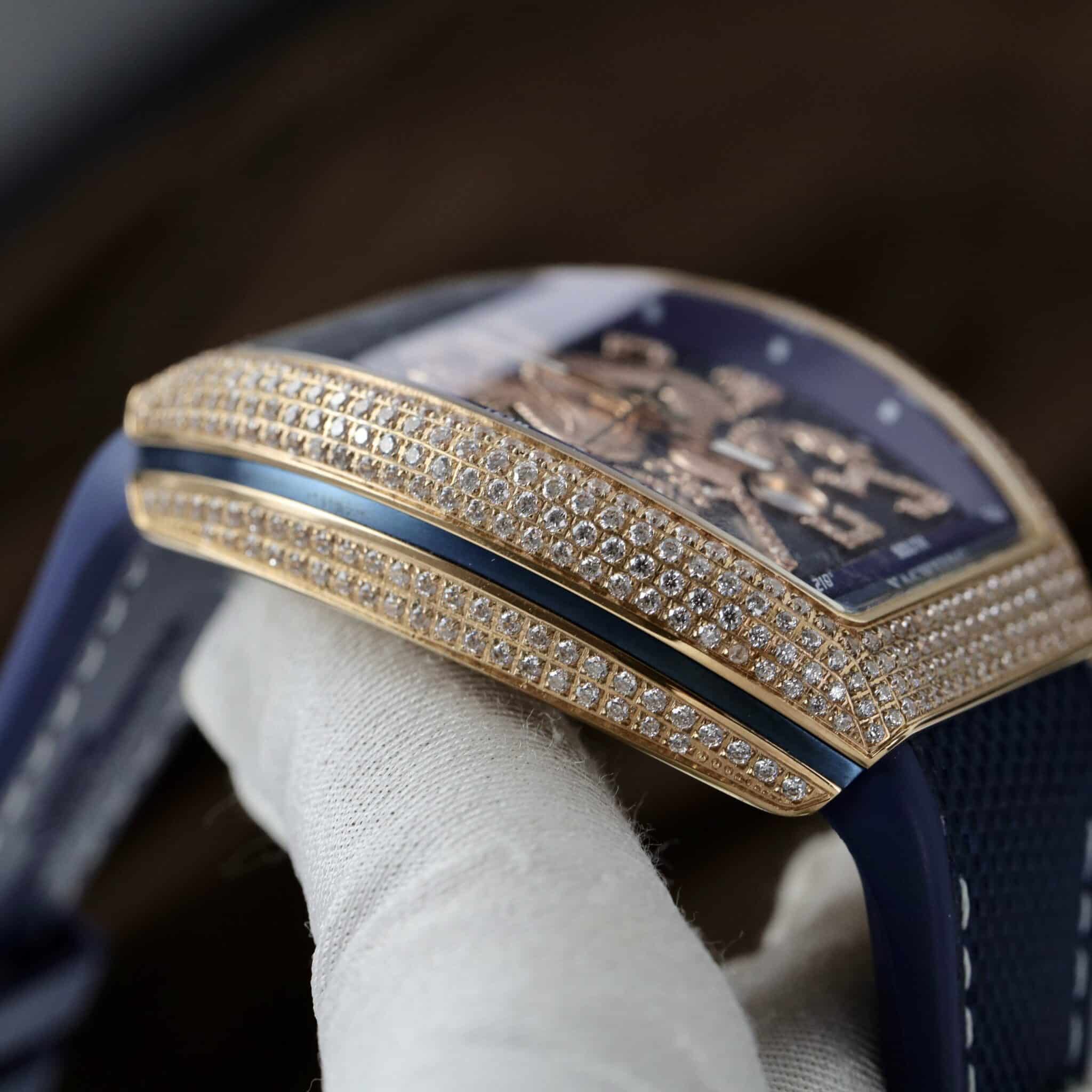 ĐỒNG HỒ FRANCK MULLER V45 DRAGON VÀNG HỒNG MẶT XANH BLUE VỎ ĐÍNH FULL ĐÁ REP 1:1 ABF 45MM