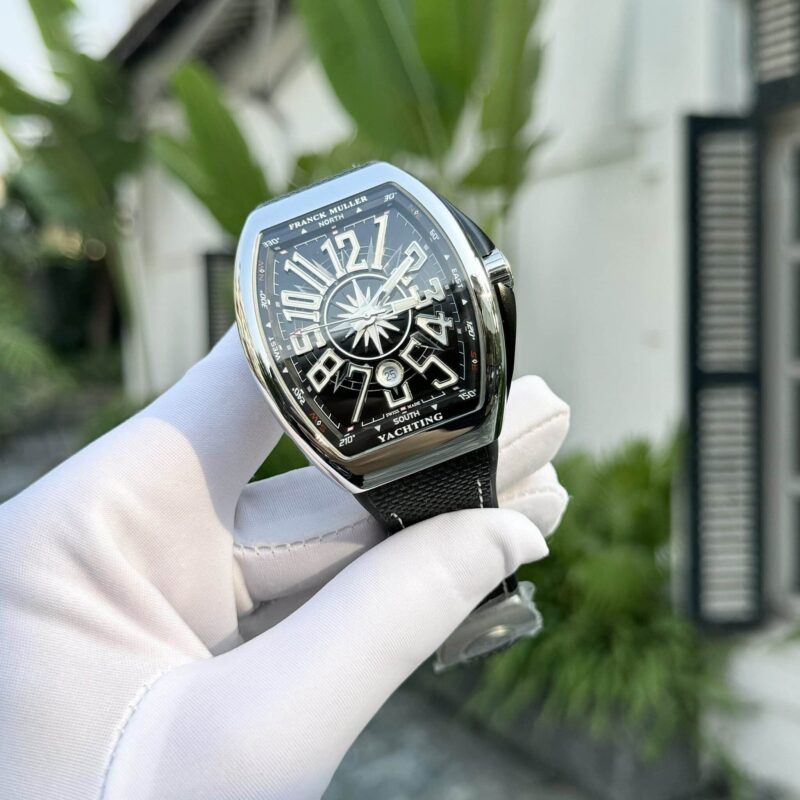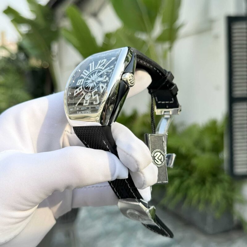 ĐỒNG HỒ FRANCK MULLER VANGUARD YACHTING V45 MẶT ĐEN CỌC SỐ HỌC TRÒ TRẮNG REP 1:1 ABF 45MM