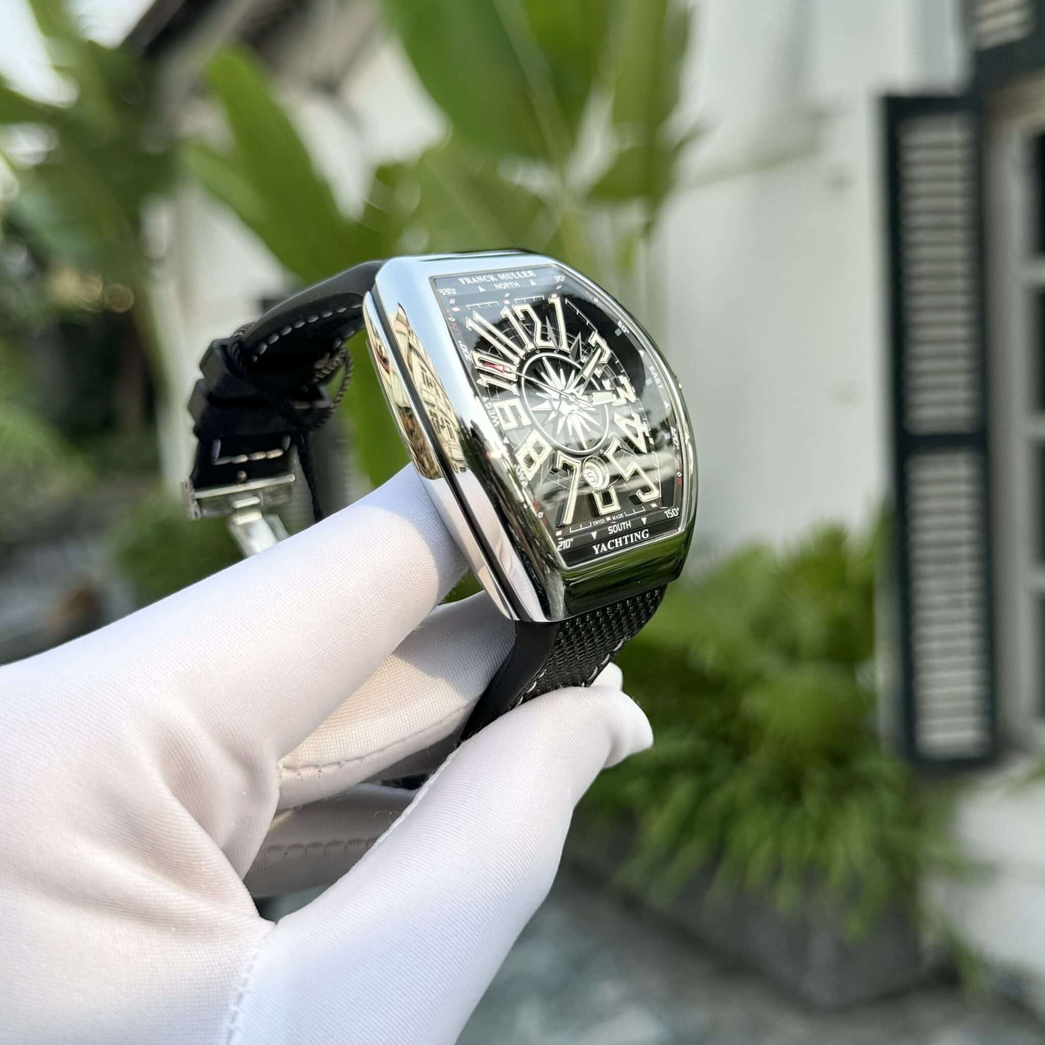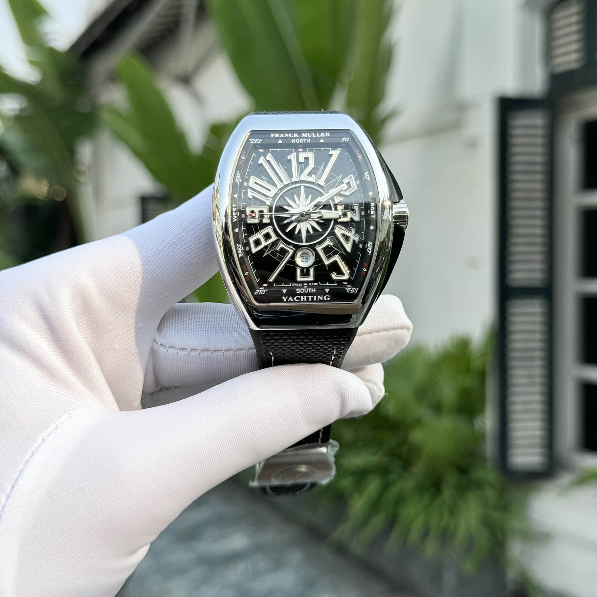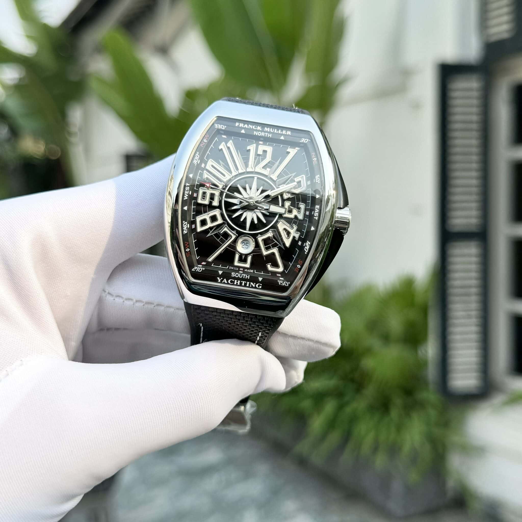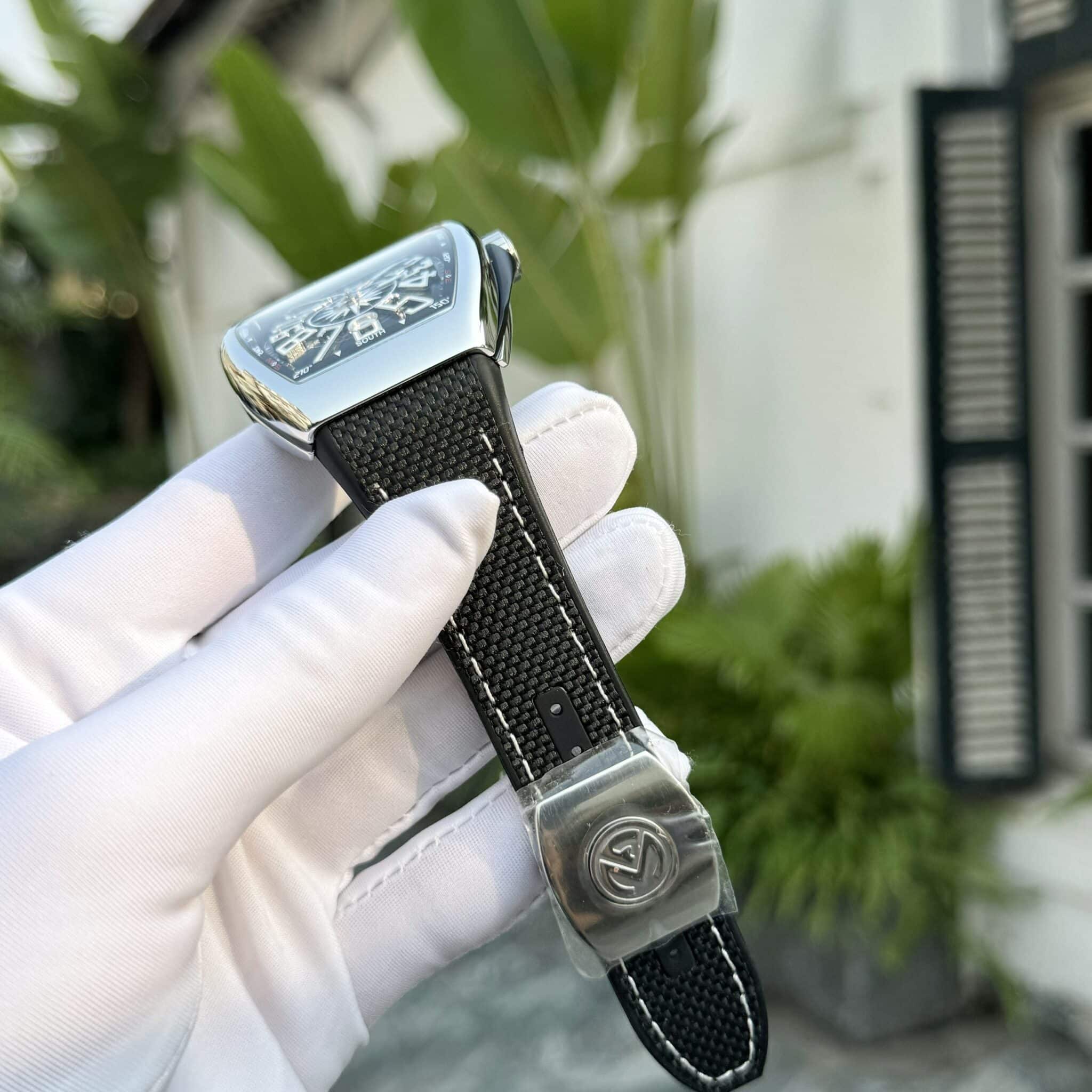 ĐỒNG HỒ FRANCK MULLER VANGUARD YACHTING V45 MẶT ĐEN CỌC SỐ HỌC TRÒ TRẮNG REP 1:1 ABF 45MM