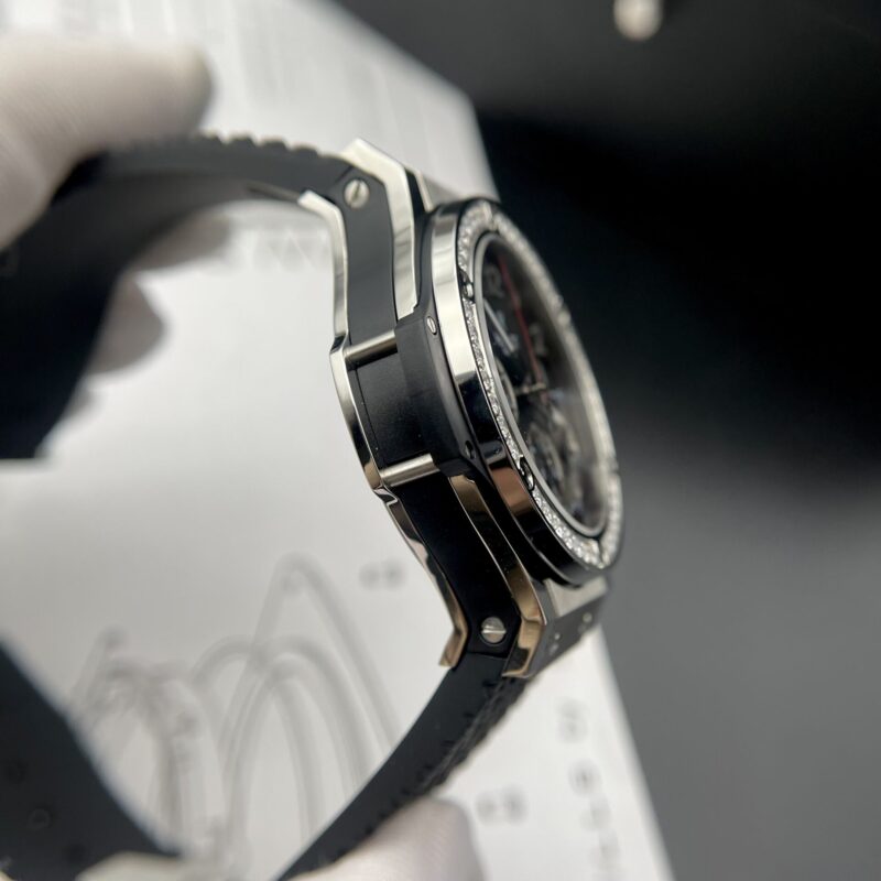 Hôm nay, PyGlow giới thiệu chiếc đồng hồ Hublot Big Bang màu đen viền đá replica 1:1 của nhà máy HB Factory.