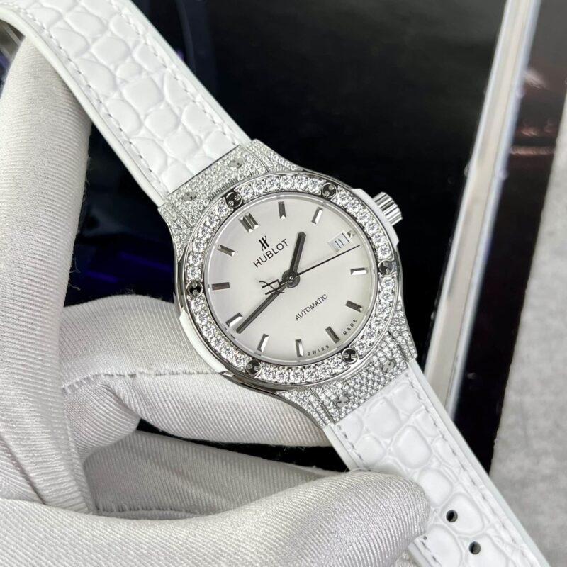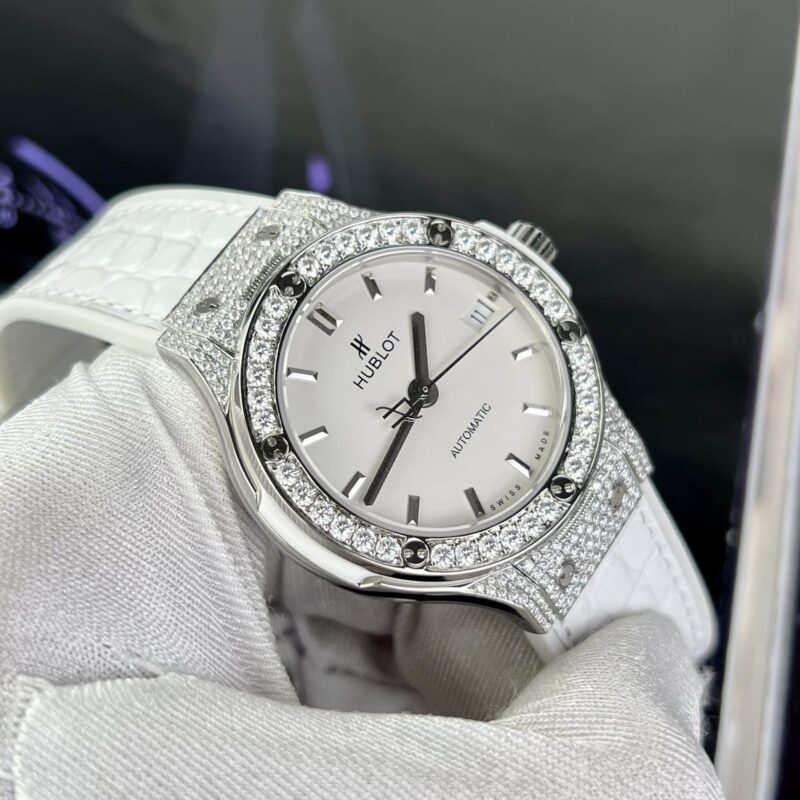 CHI TIẾT ĐỒNG HỒ HUBLOT CLASSIC FUSION MÀU TRẮNG ĐÍNH MOISSANITE 38MM TẠI THẾ GIỚI ĐỒNG HỒ ĐẸP
